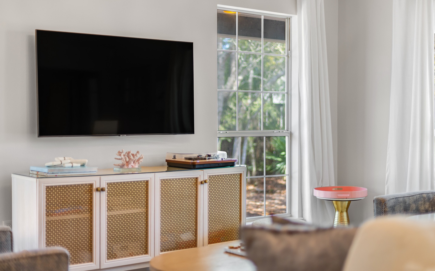 - Pullout sleeper sofa in living room
