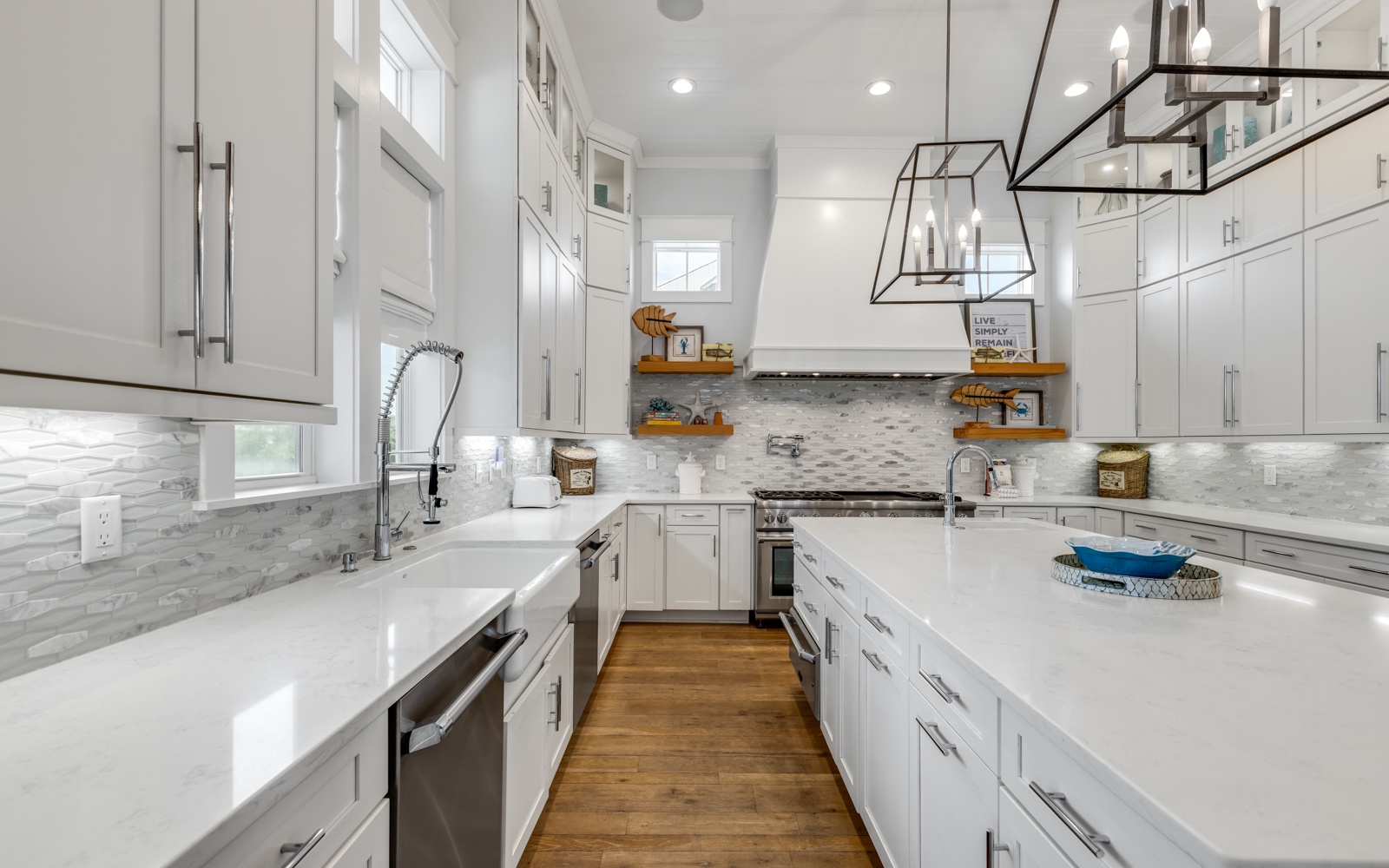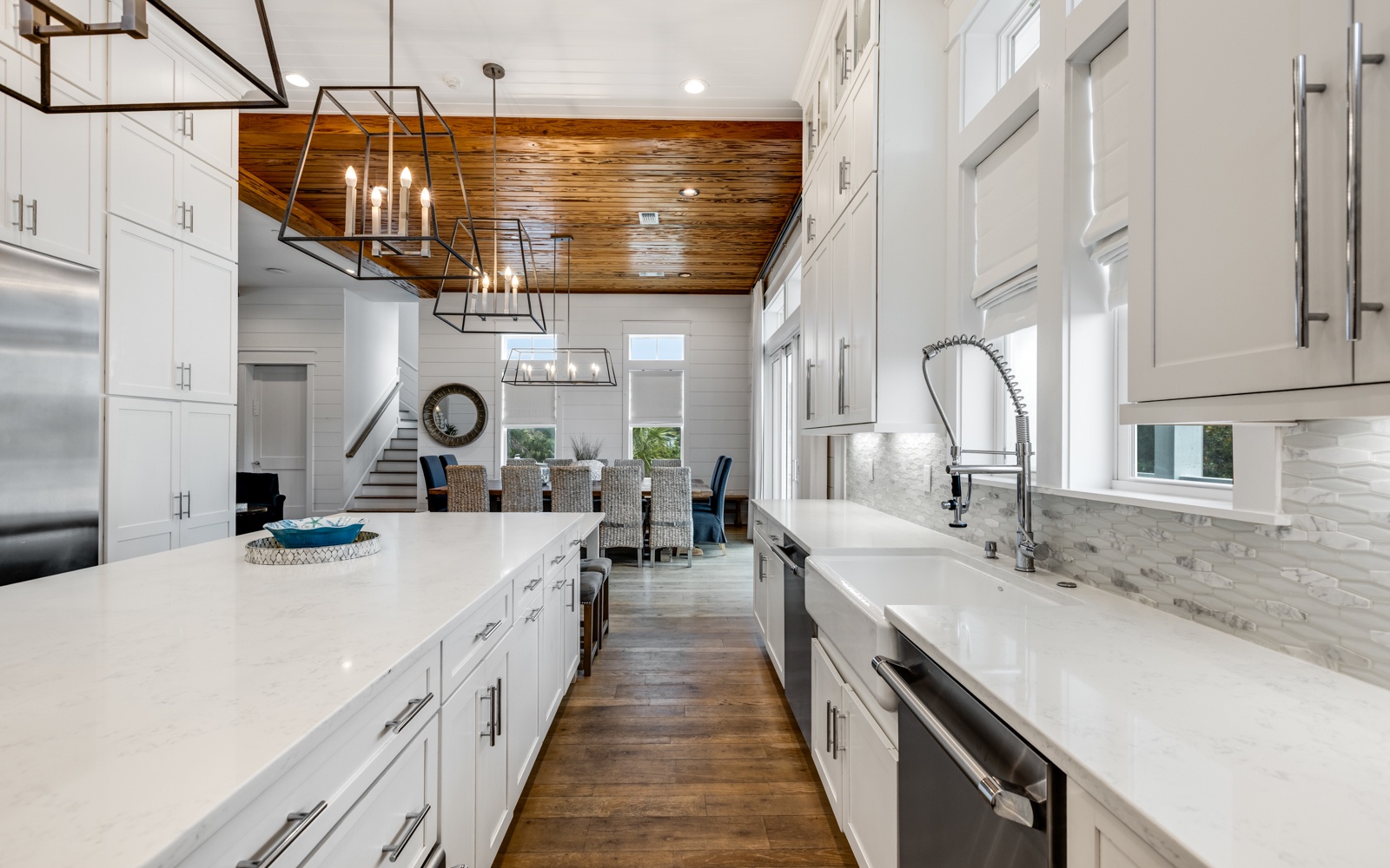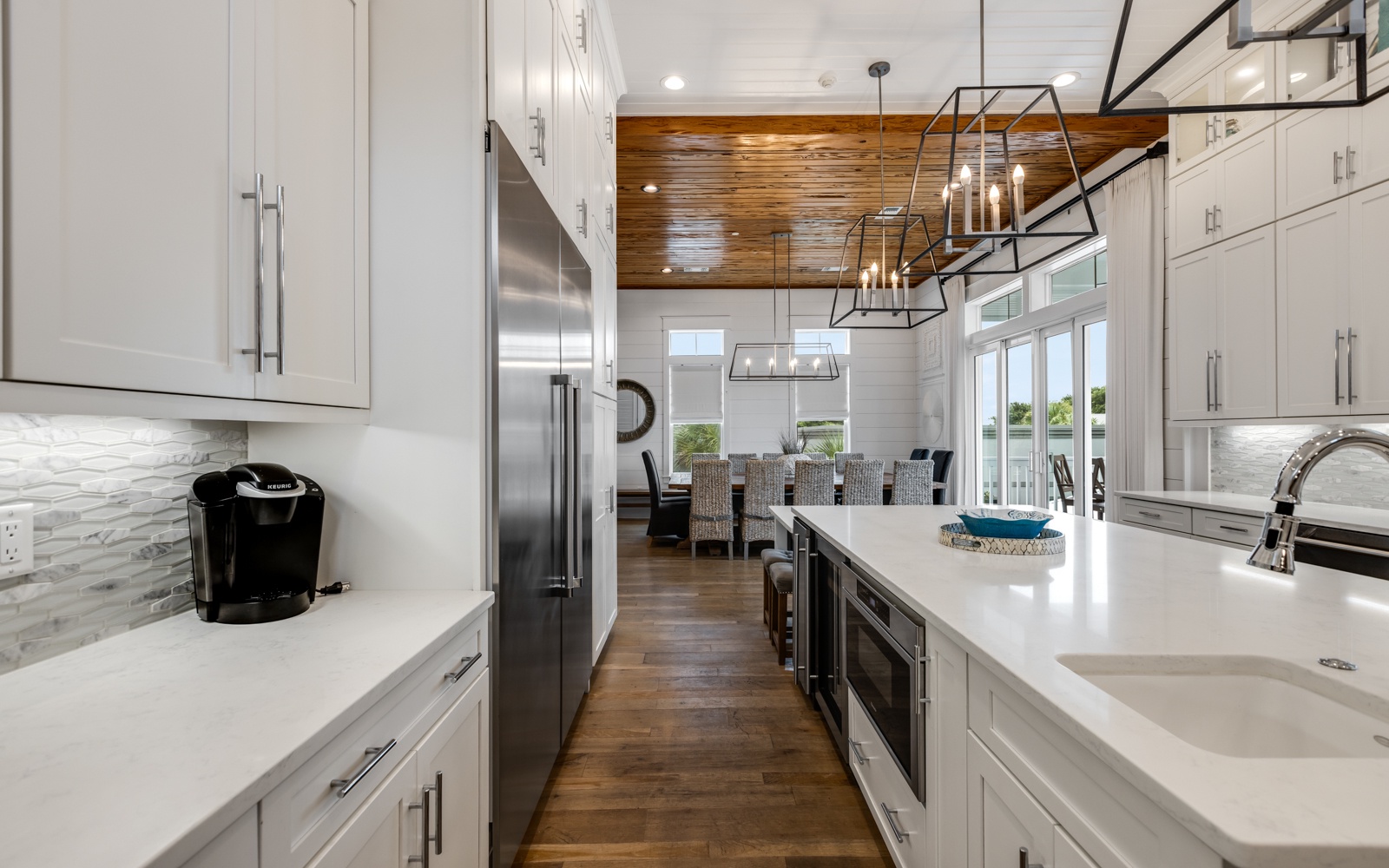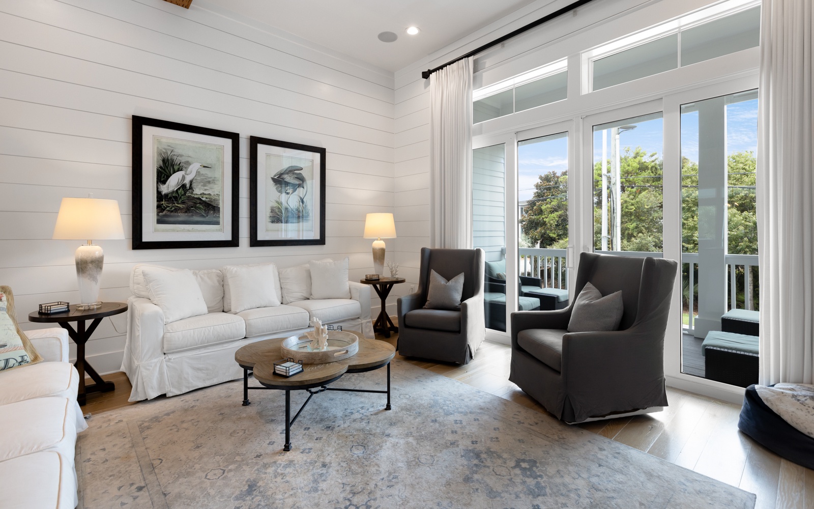 This magnificent Blue Mountain Beach home is opulent living on 30A. Four floors of stunning beauty, including a sun deck with an outdoor kitchen, dining, and ocean views. In addition to the outdoor spaces, Our 30A Sandcastle has three indoor living/entertainment rooms, a chef's kitchen and a dining table that can seat twenty (20). The living room is grand yet cozy with the gas burning fireplace and comfortable seating for all.