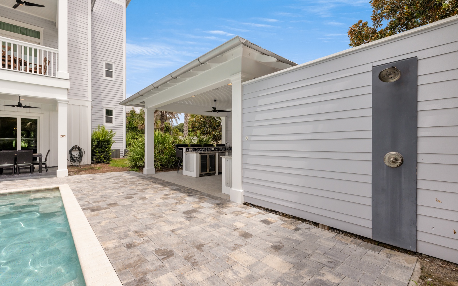 - Outdoor covered kitchen with ice machine, grill, refrigerator