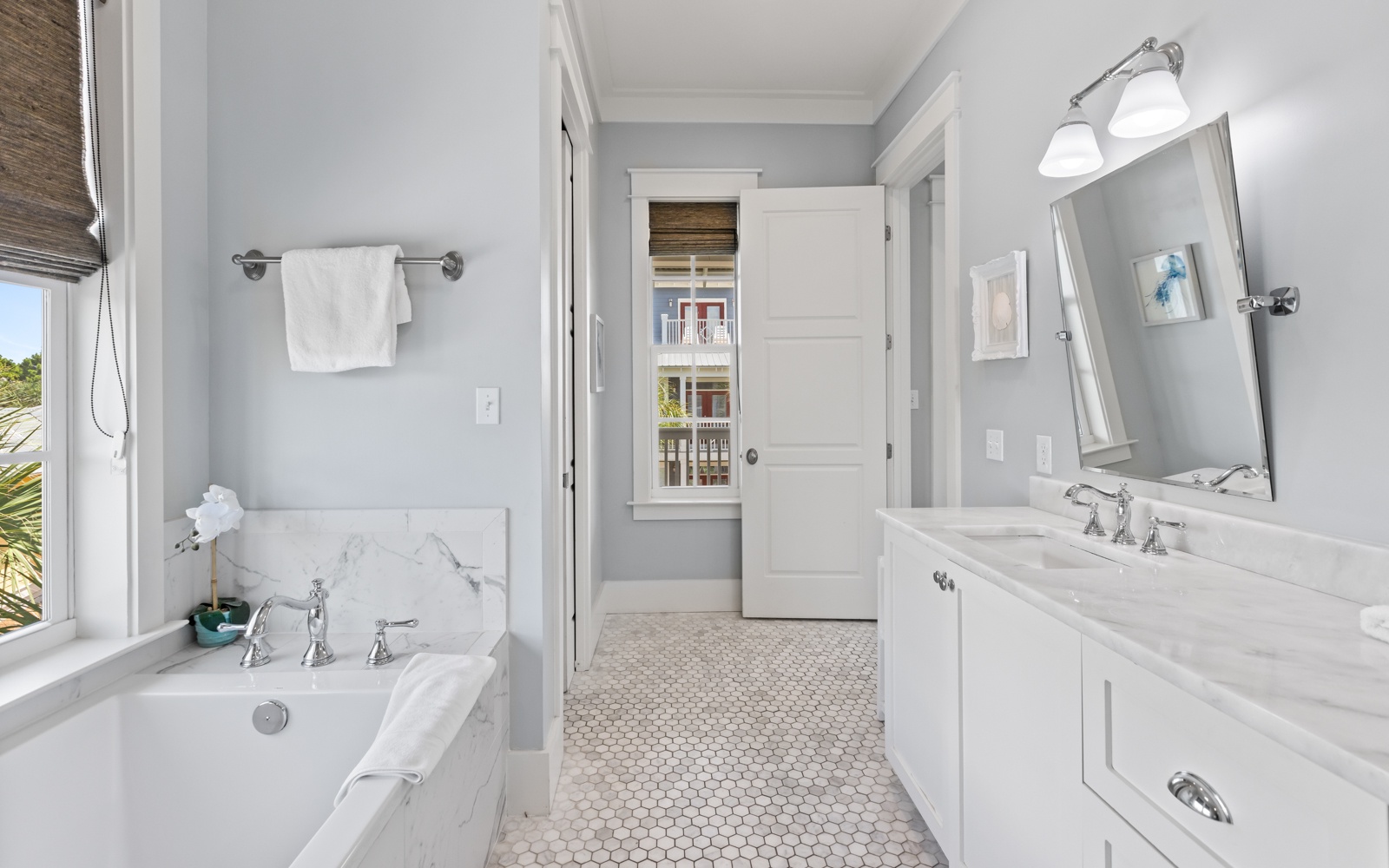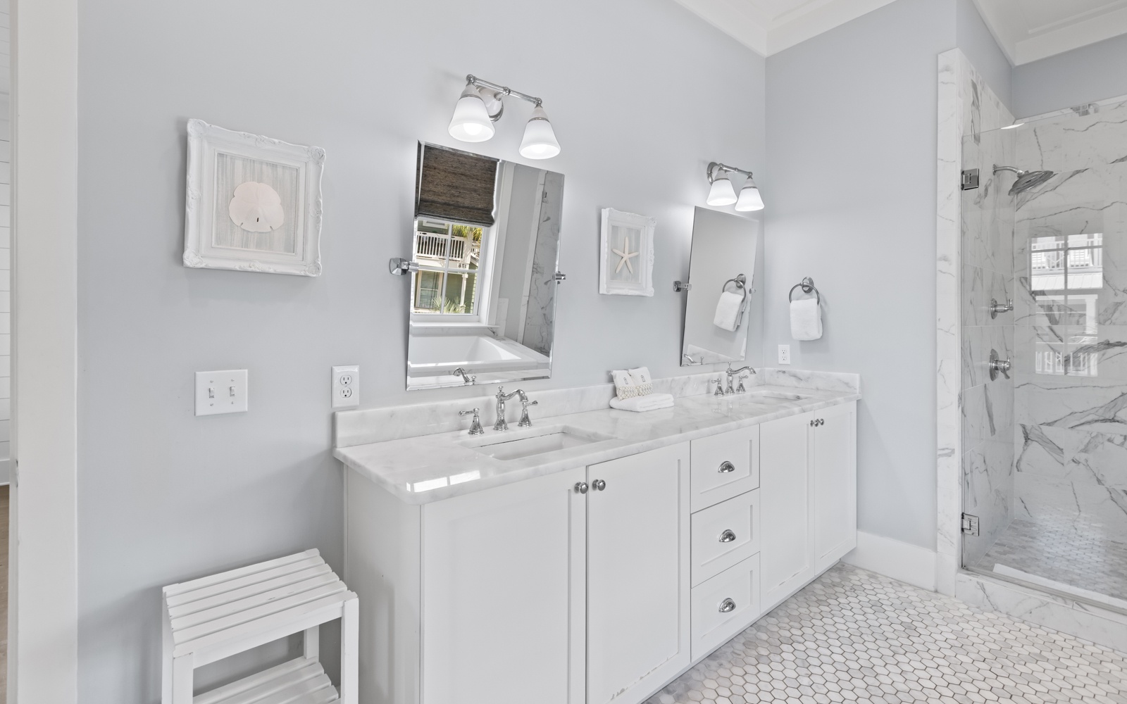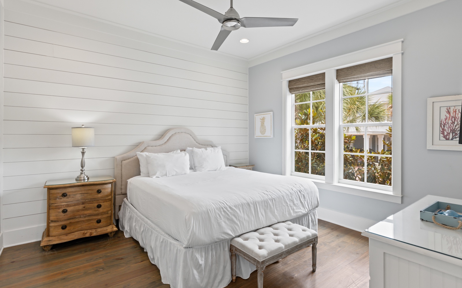 Resting on a spacious corner lot on the west side of the neighborhood, this home has plenty of parking and easy access to the community pool, with Rosemary Beach and Alys Beach just a short stroll away.
