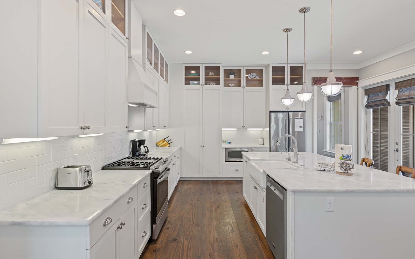 The open gourmet kitchen is a dream for cooking and entertaining.