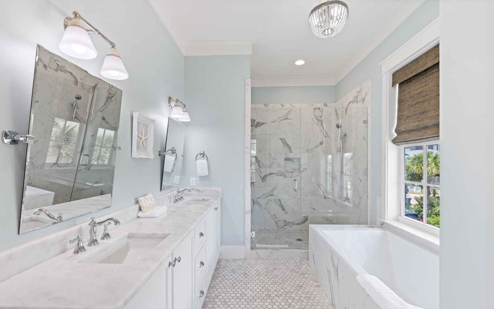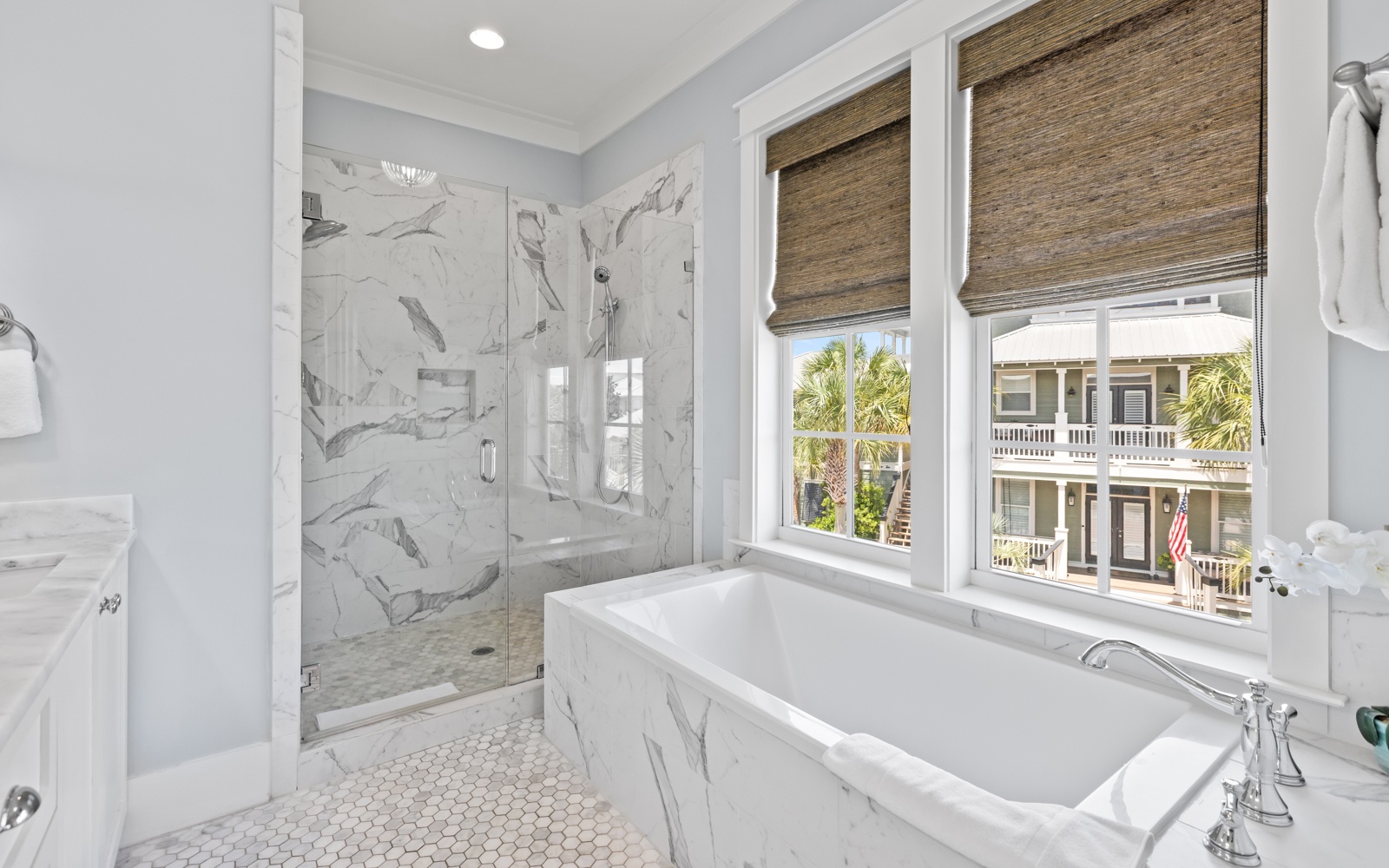 - Primary Bedroom, King Bed, Double Vanity, Walk-in Shower, Tub, Private Veranda