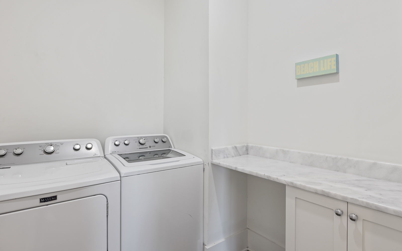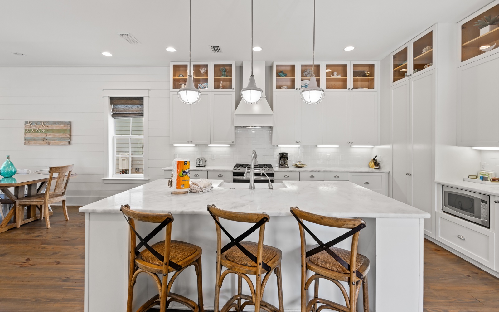 Inside, the living room is designed for unwinding, with a 75” 4K Ultra HD TV, DVR, and premium movie channels. The ultra-comfy sectional might make you want to skip the beach altogether! High-speed internet and a handy workspace in the living room ensure you can stay connected when needed.