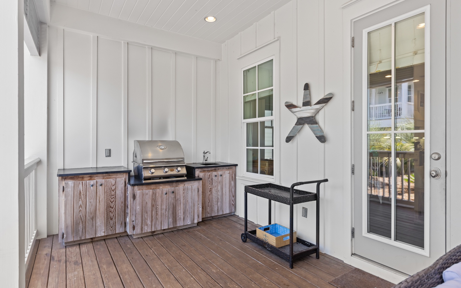 Step outside to a back deck made for lounging. The summer kitchen, gas grill, cozy seating, and a 58” 4K TV make this the perfect spot to gather, grill, and relax.