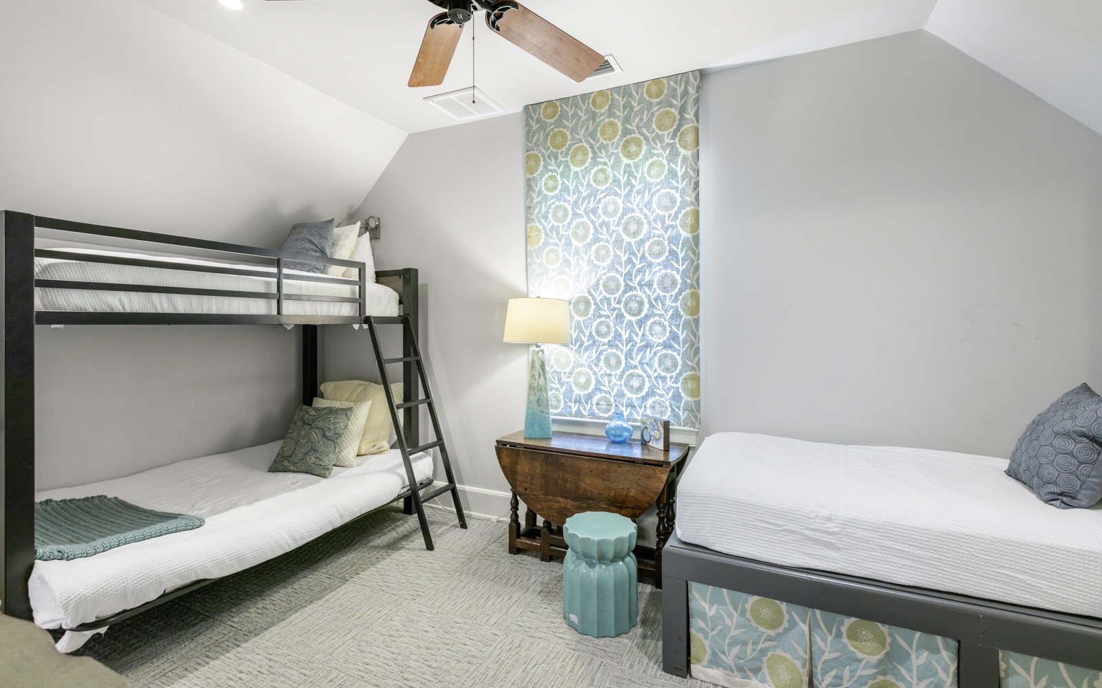 - Twin over full bunk and single twin in 2nd floor 3rd bedroom; private full bath