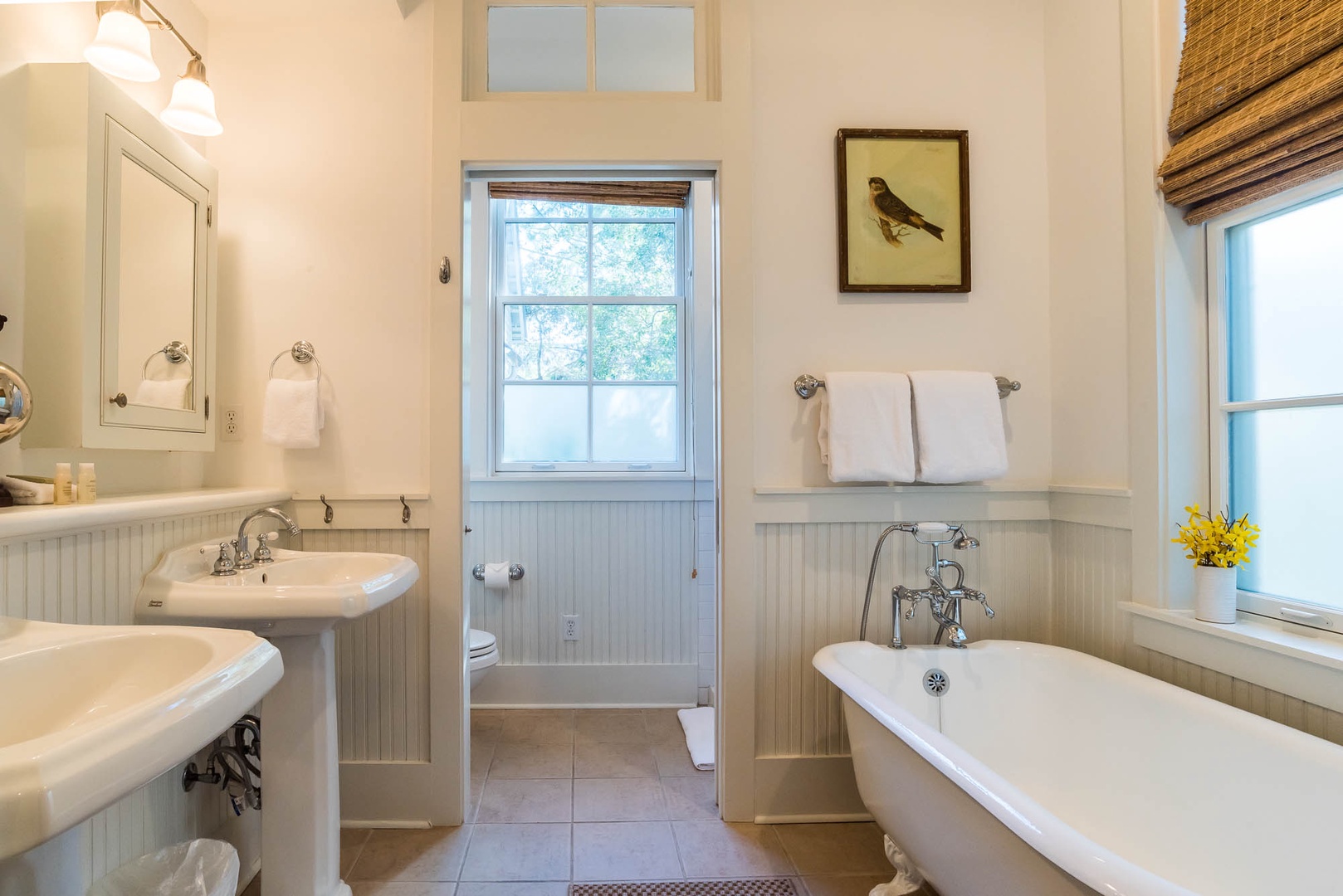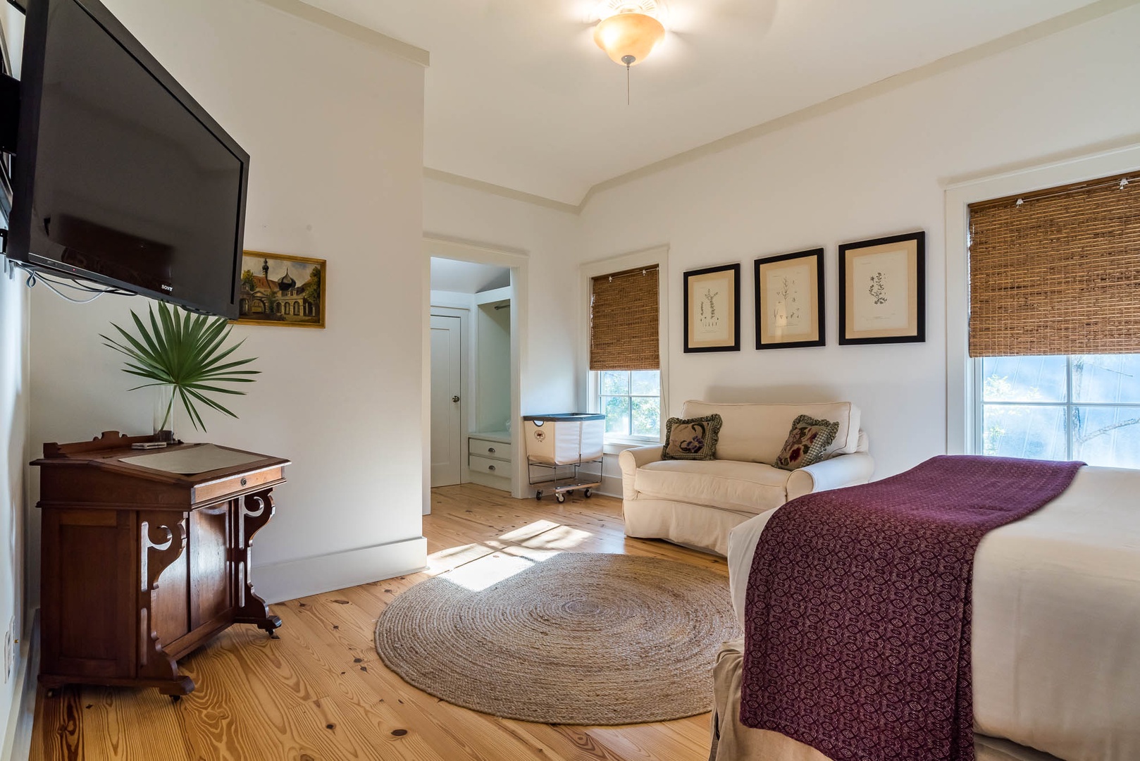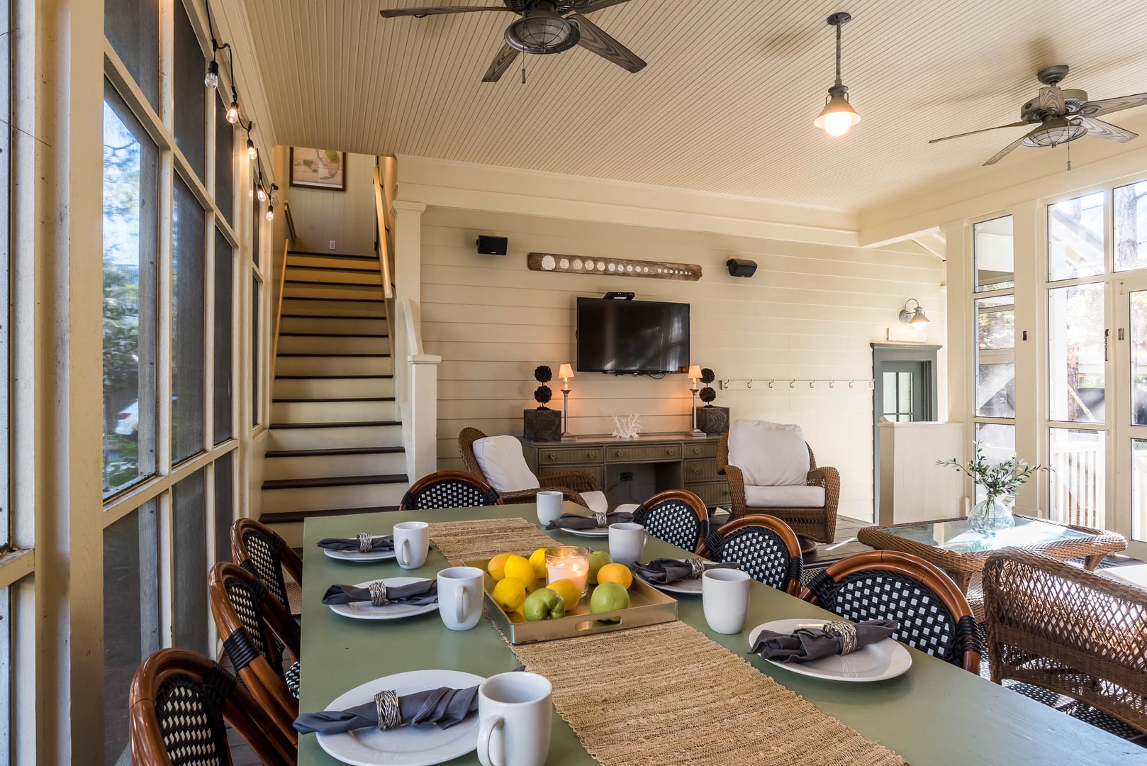 The home's large screened porch creates a perfect place to enjoy a morning cup of coffee or evening cocktail. Above the garage is a carriage house that is perfectly appointed for guests seeking a little more privacy. The carriage house offers a king bed, a private bathroom with a shower/tub combo.