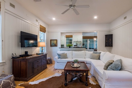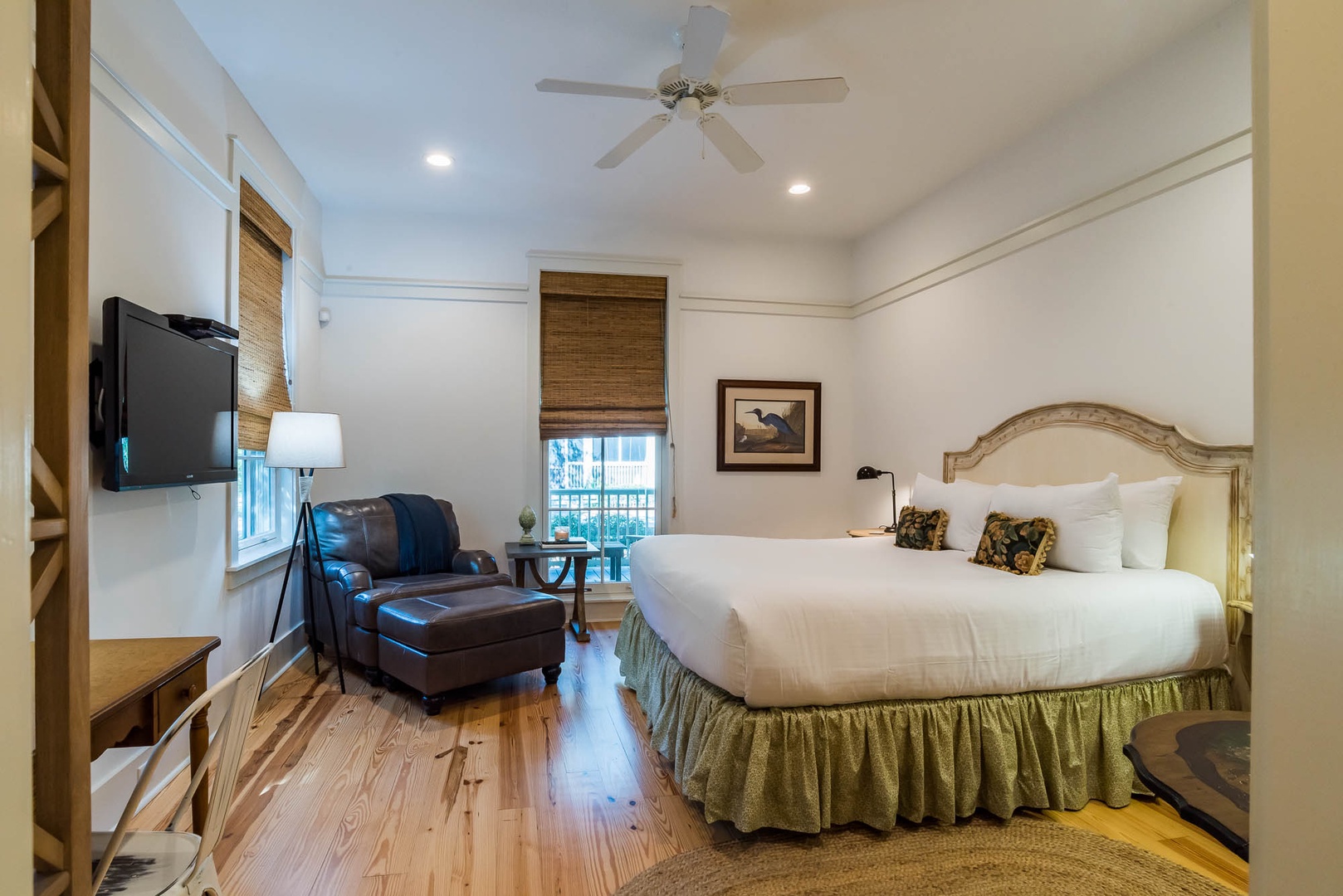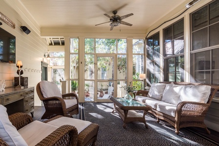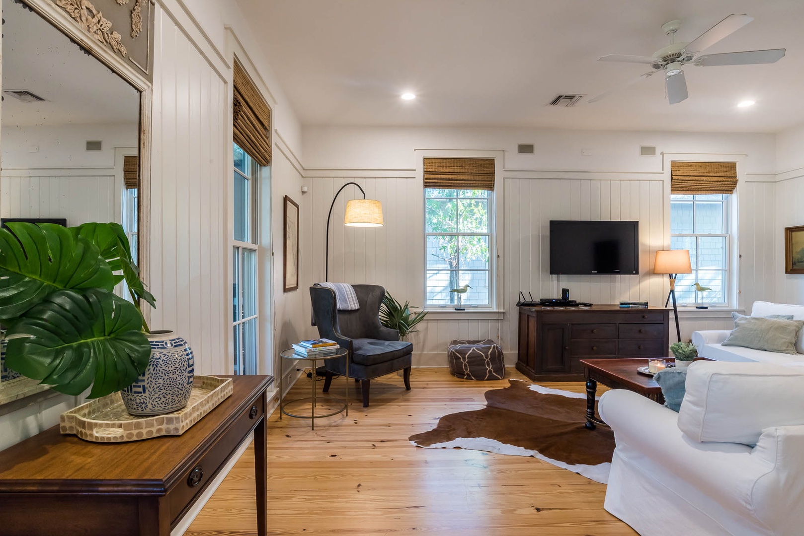 The home's large screened porch creates a perfect place to enjoy a morning cup of coffee or evening cocktail. Above the garage is a carriage house that is perfectly appointed for guests seeking a little more privacy. The carriage house offers a king bed, a private bathroom with a shower/tub combo.