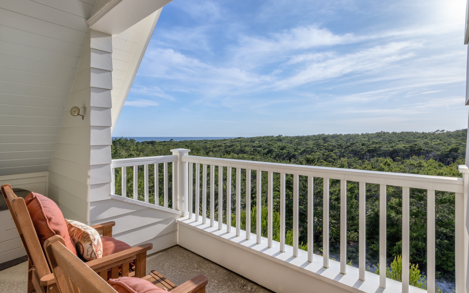 The second-floor balcony has incredible views of the Gulf. Can you hear the waves crashing onto the shore?