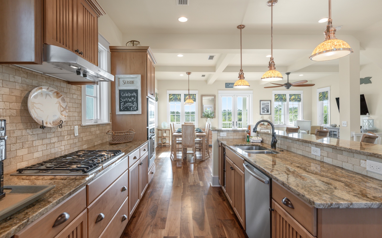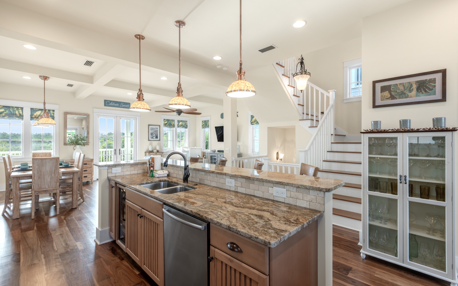 On the second floor, a fully equipped kitchen, dining room, and large living room are great for gathering and making new fun-filled memories.