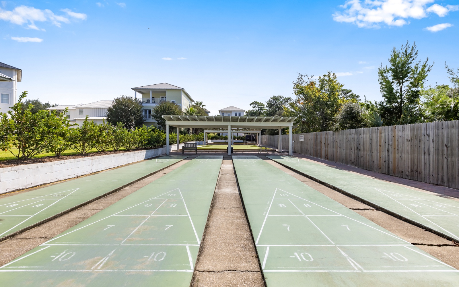 - Gated community, shuffleboard, Bocce ball court, Shared fitness room