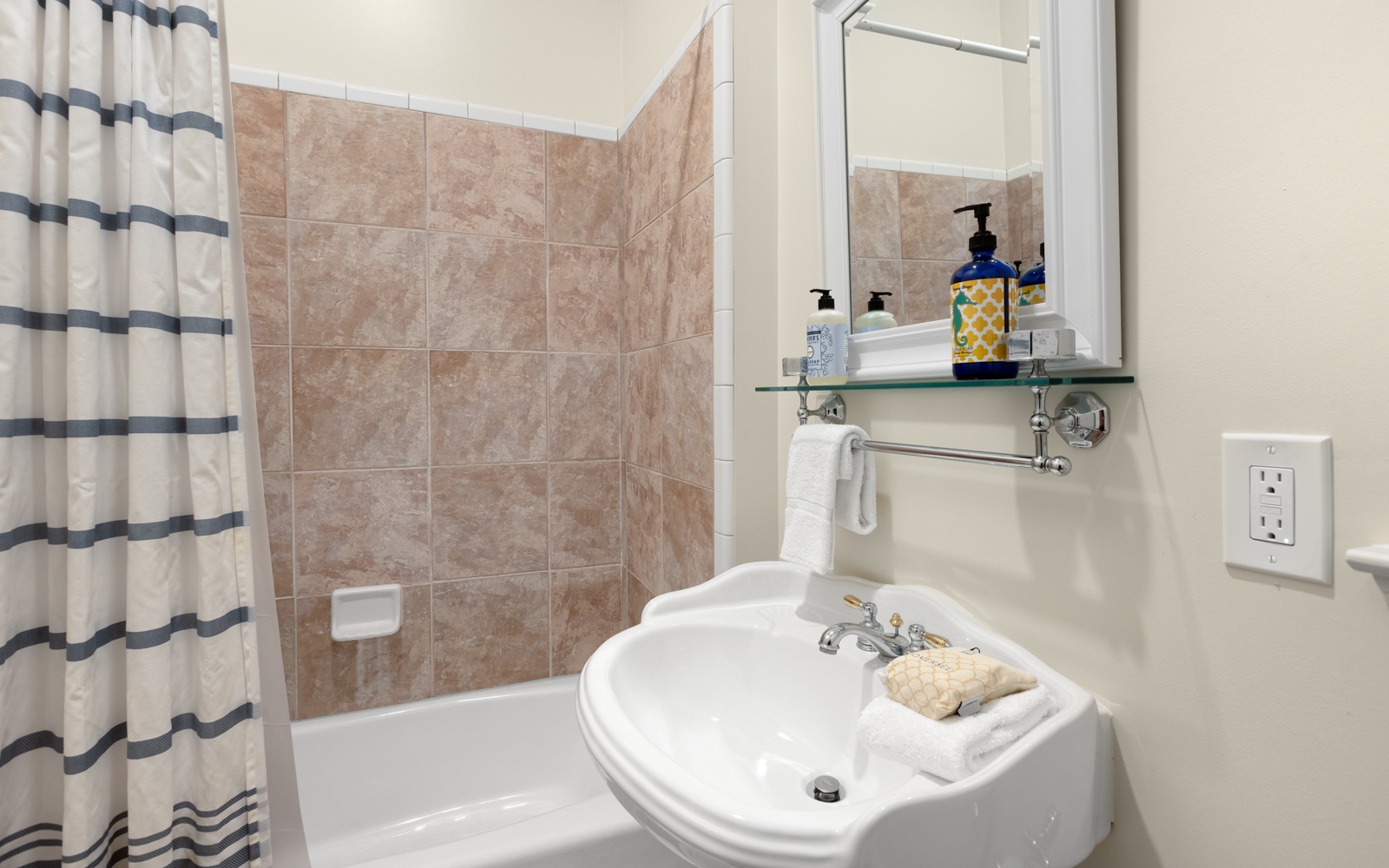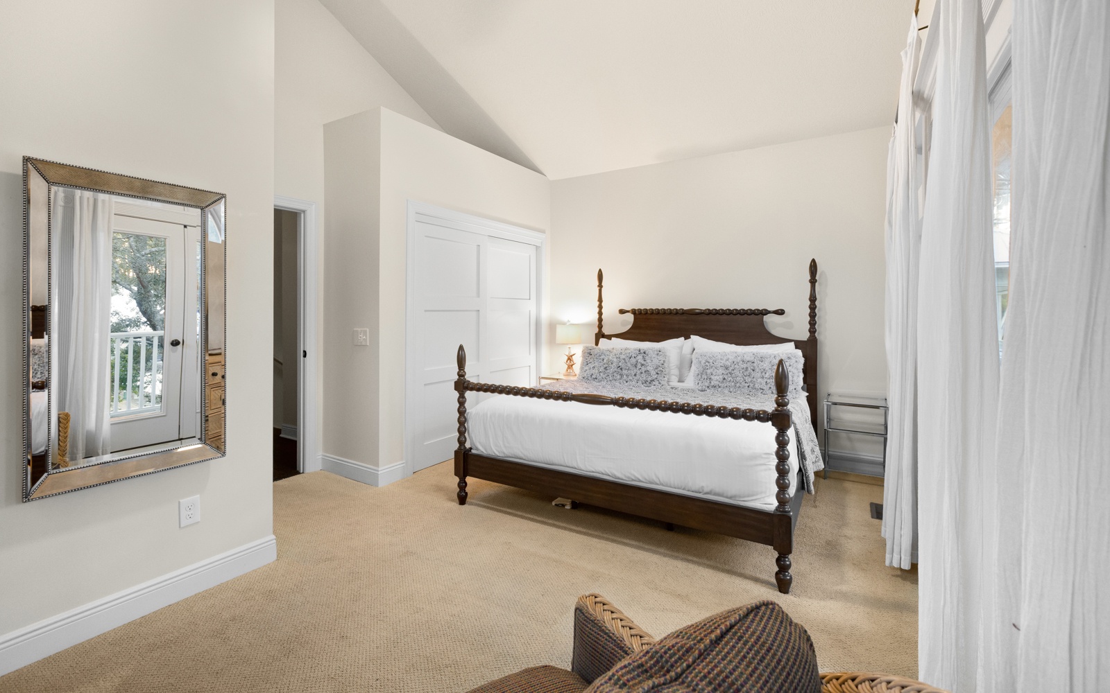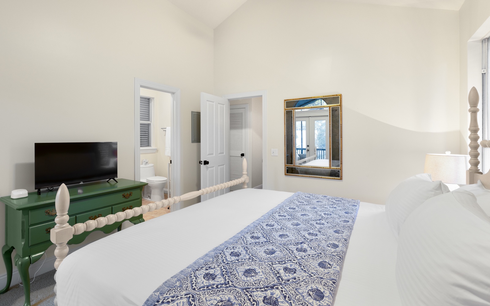 - Guest Room: King bed, private bath, shower/tub combo, private balcony