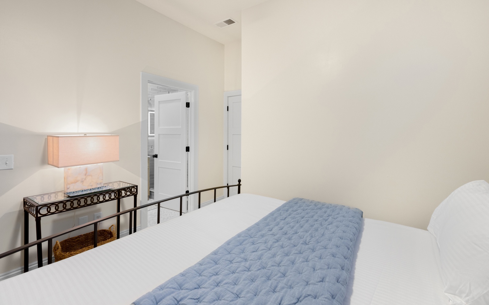 Upstairs, two more bedrooms offer room to recharge. The primary suite? King bed, private balcony, and an en-suite bath with a soaking tub that’s made for relaxation. The guest room? A king bed, private bath, a shower/tub combo, and of course, a private balcony.