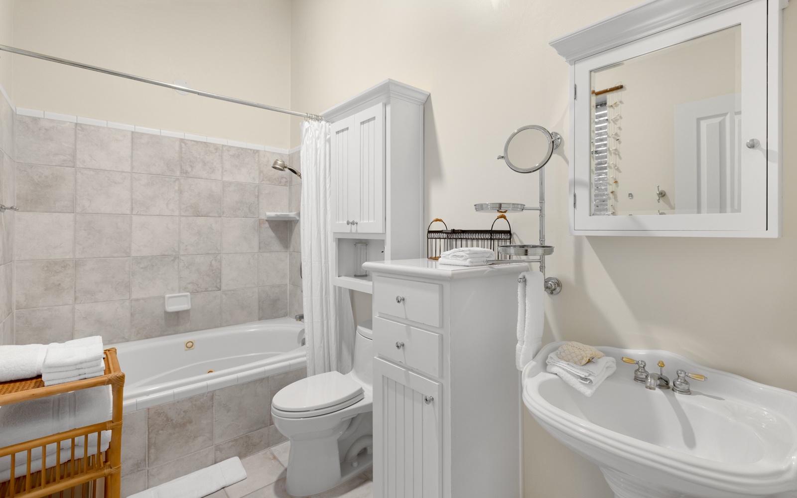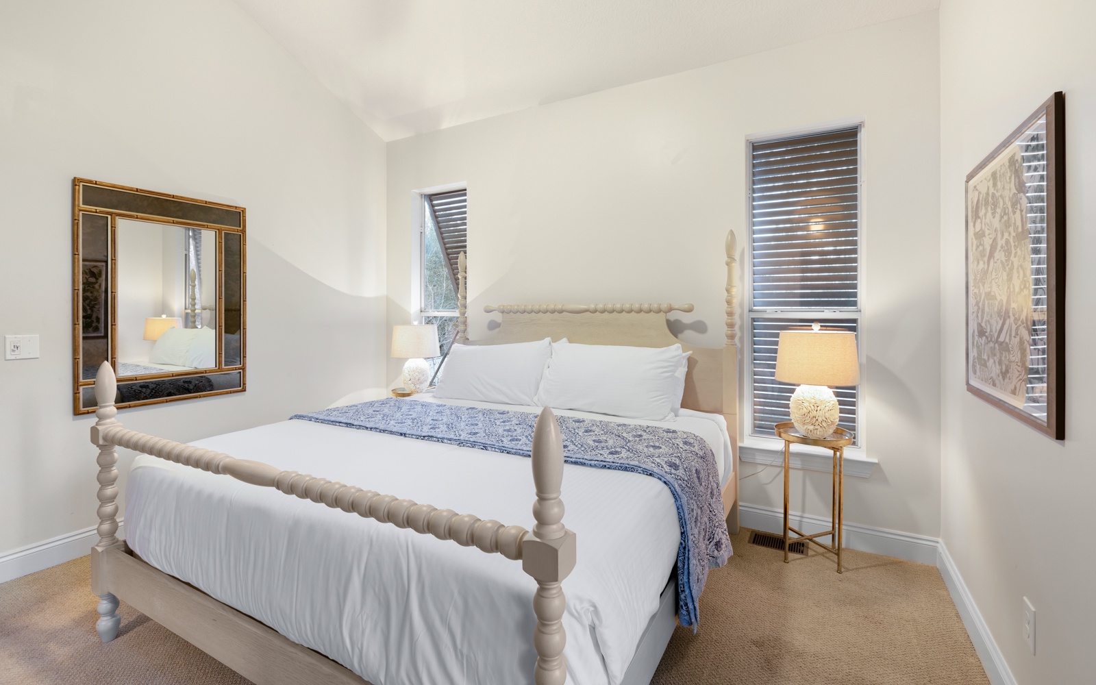 - Primary Bedroom: King bed, private bath with soaking tub, private balcony