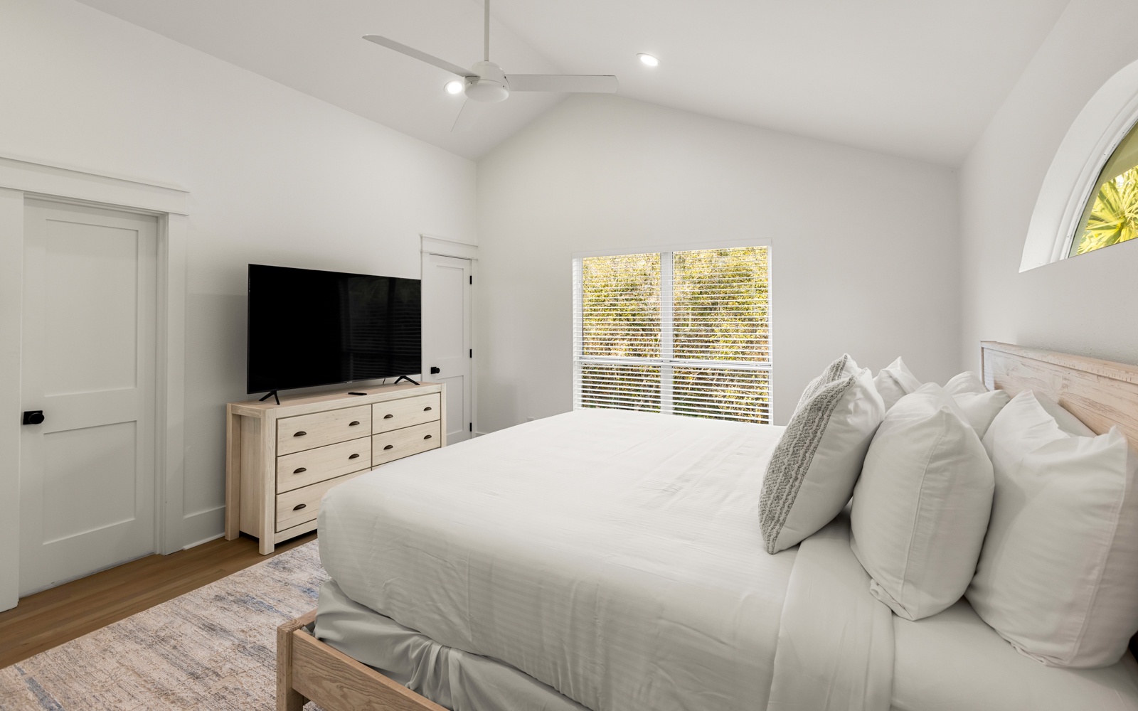 Primary Bedroom: King bed, private bath with soaking tub in shower, private balcony