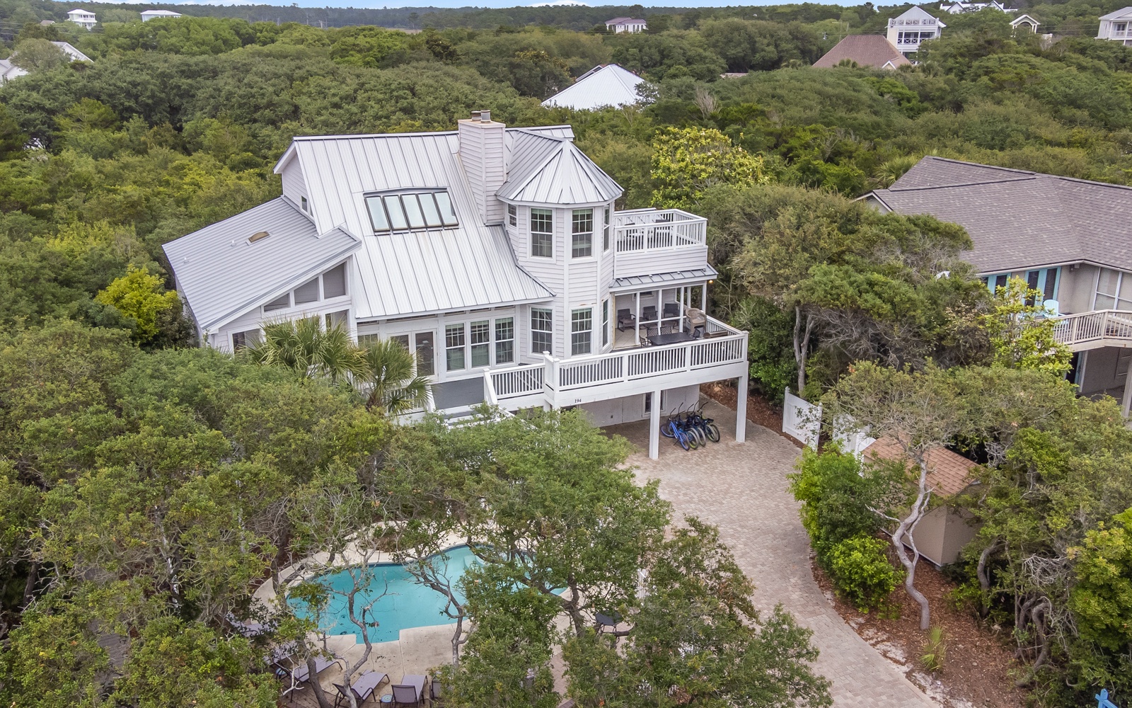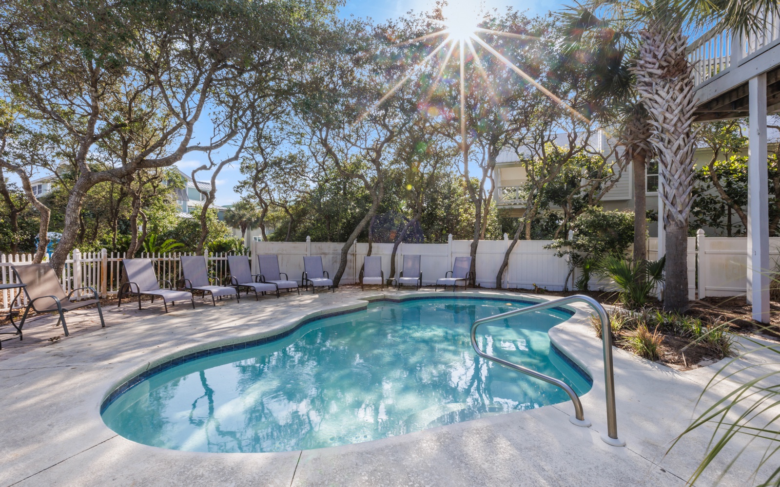 In a private Seacrest neighborhood, behind a private gate, Shores Fun sits only one house back from the white sands of the Gulf. Now that’s close! And a gorgeous private pool? Even closer!