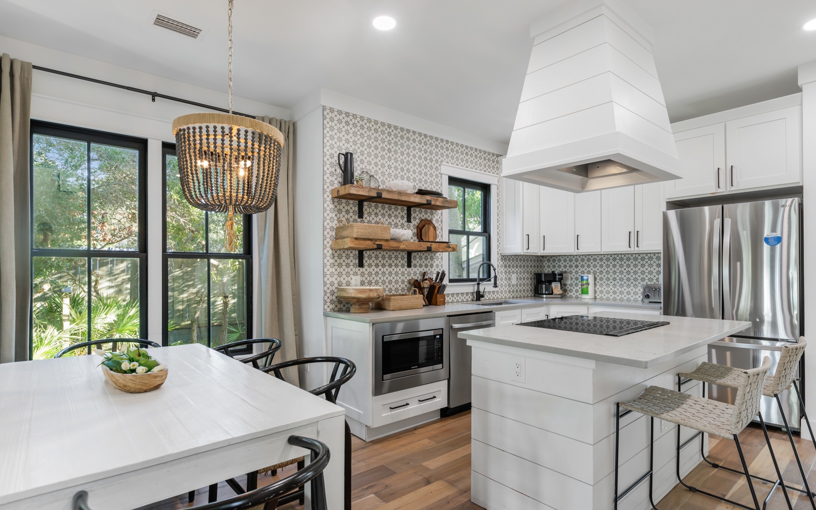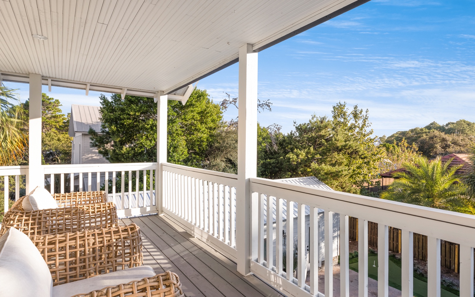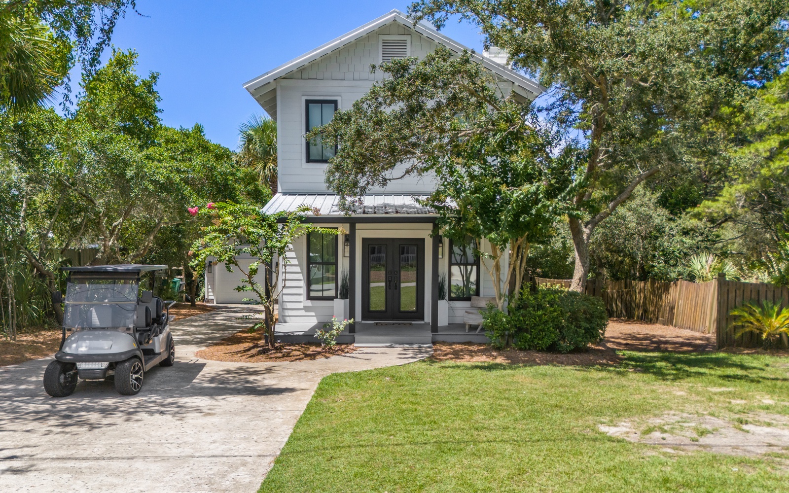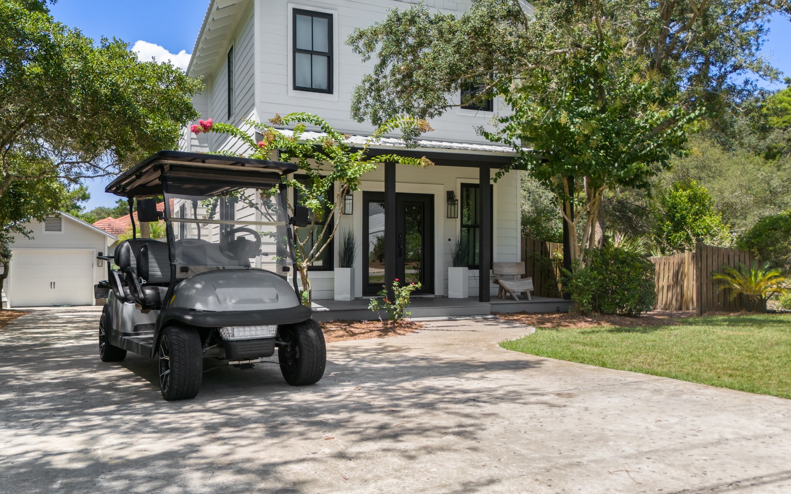 On a prime location in a quiet Dune Allen Beach neighborhood, welcome to Slow M’Ocean, a stunning vacation home, inside and out. Plus, the beautiful beach is just a quick bike ride away. Use the complimentary golf cart to explore all of 30A.
