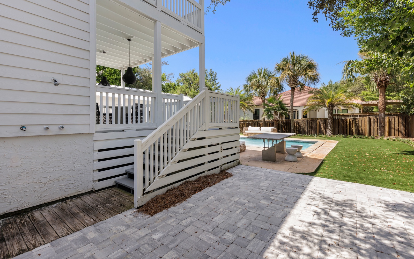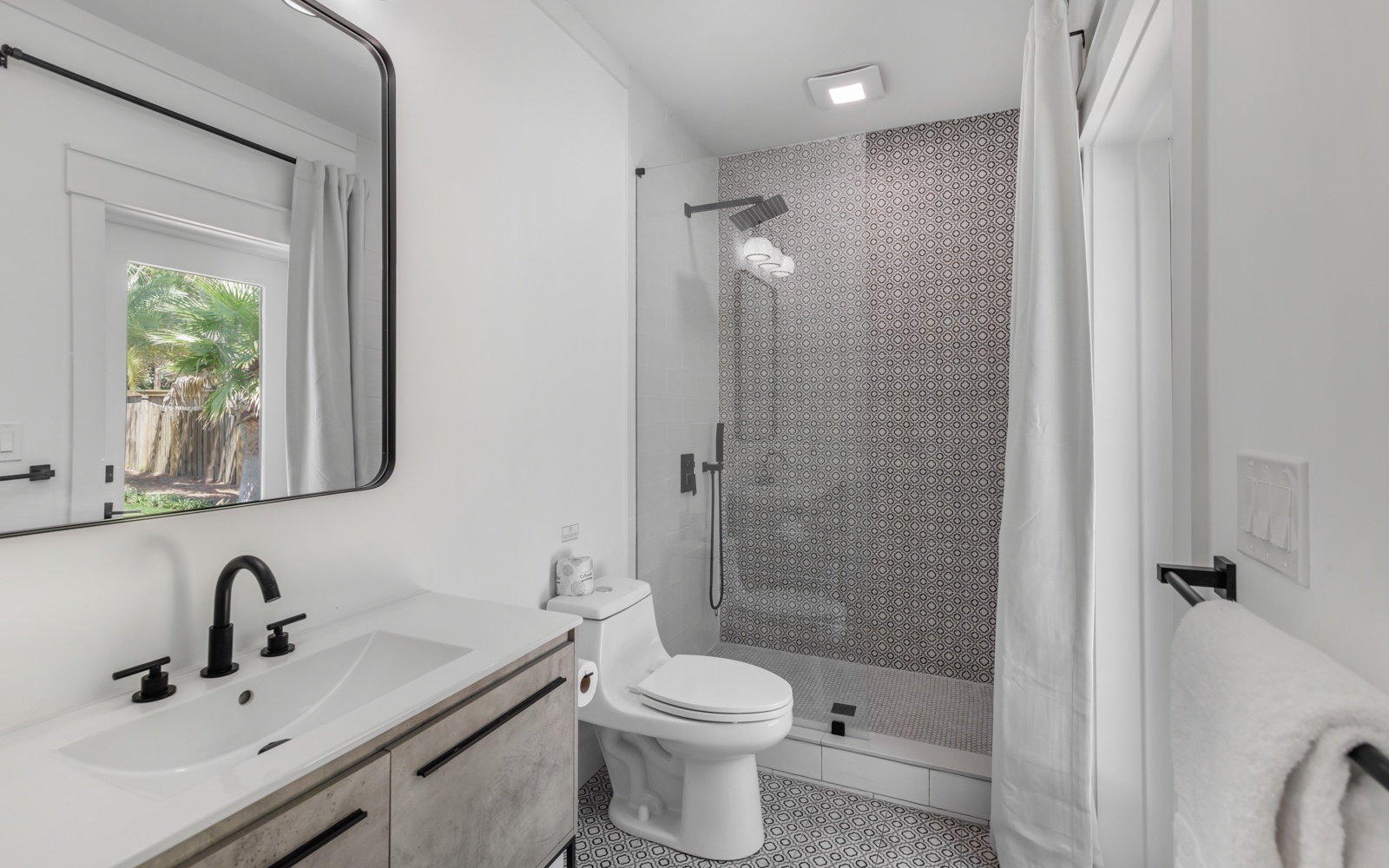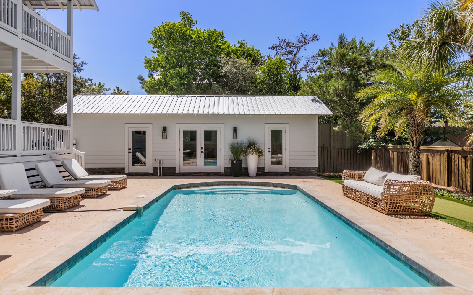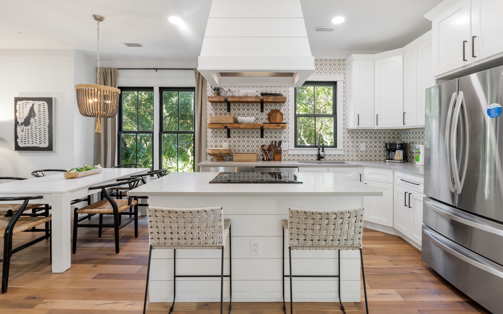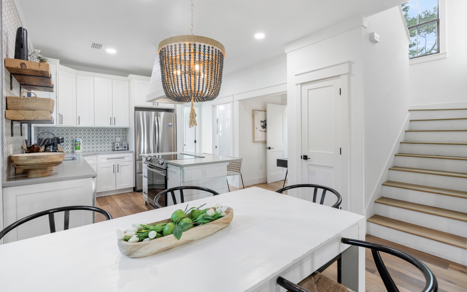 On a prime location in a quiet Dune Allen Beach neighborhood, welcome to Slow M’Ocean, a stunning vacation home, inside and out. Plus, the beautiful beach is just a quick bike ride away. Use the complimentary golf cart to explore all of 30A.