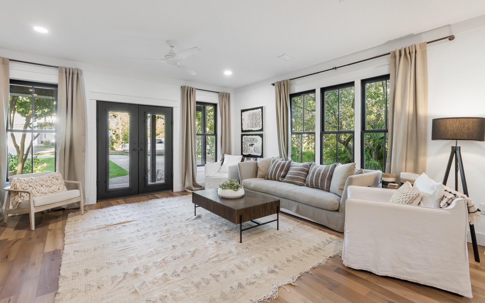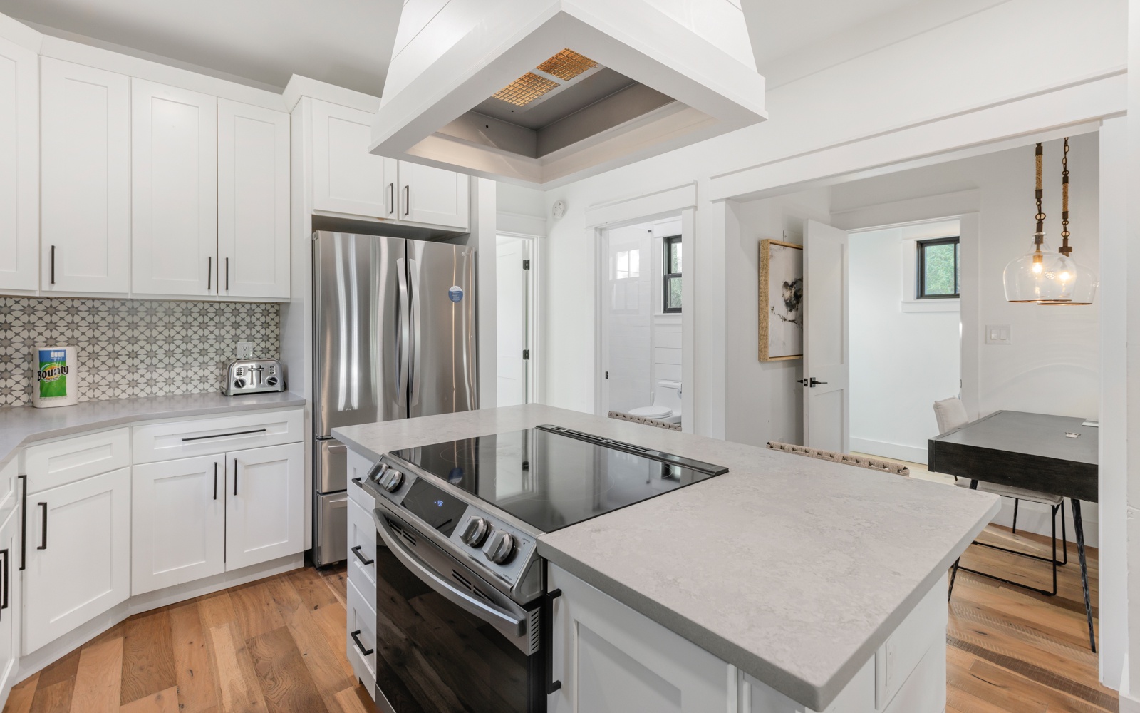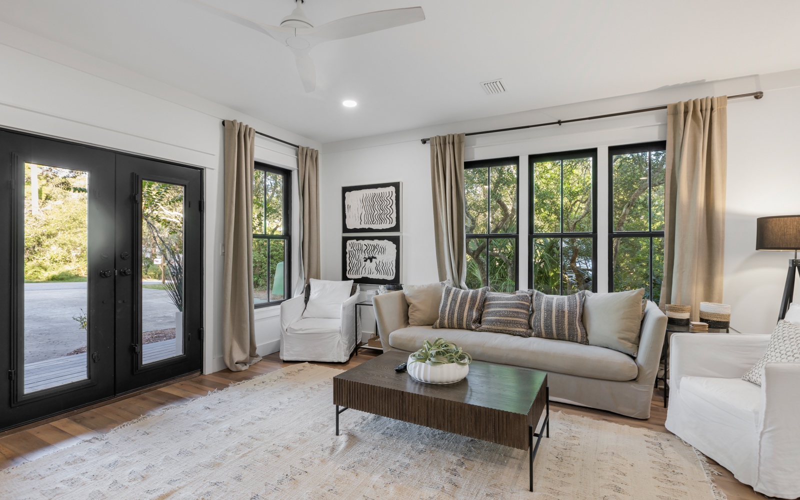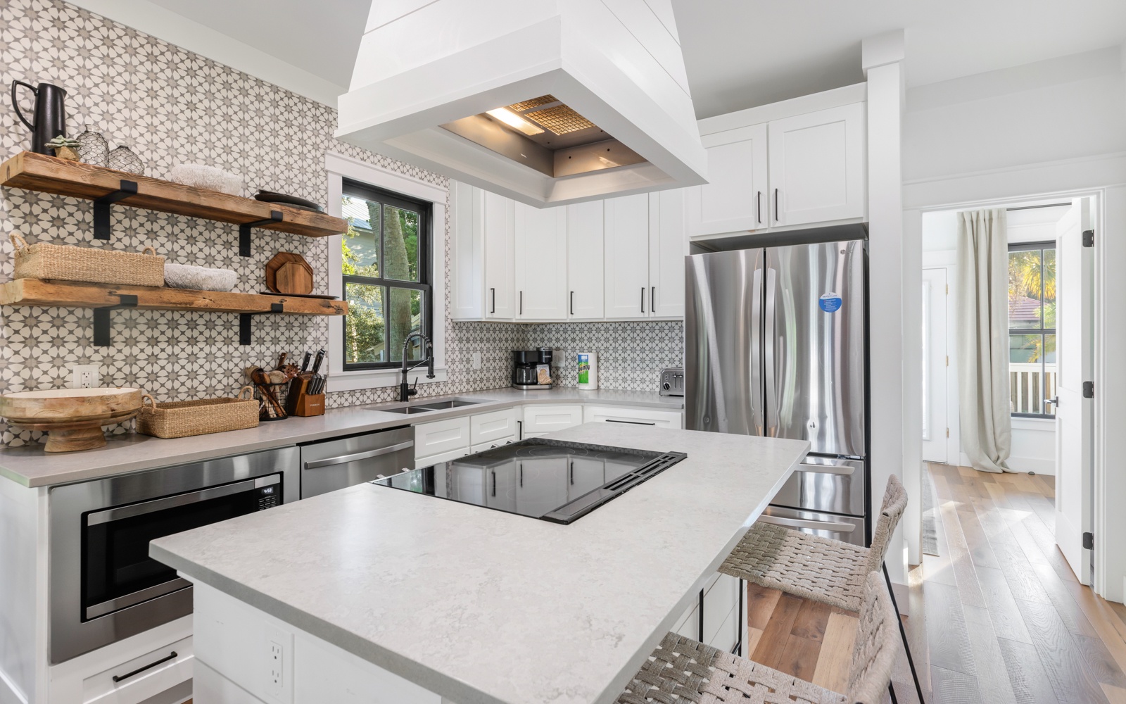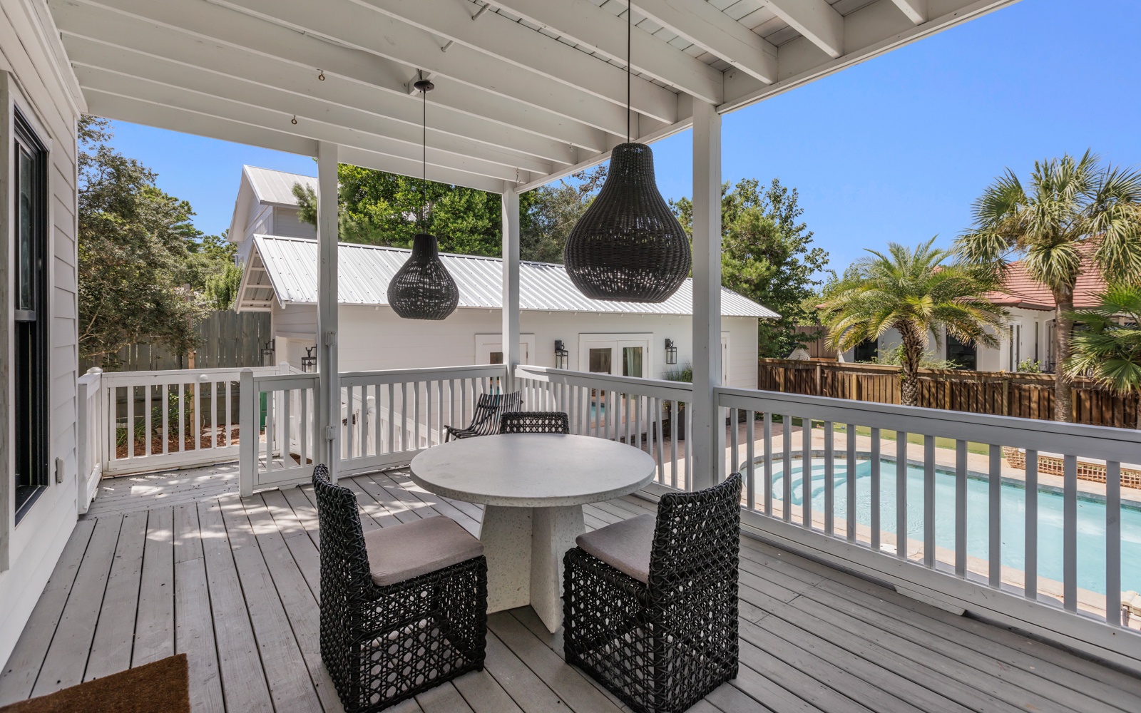 In addition to the adorable guest house, two large porches surround the home, providing a generous grilling and sitting area, with al fresco dining.