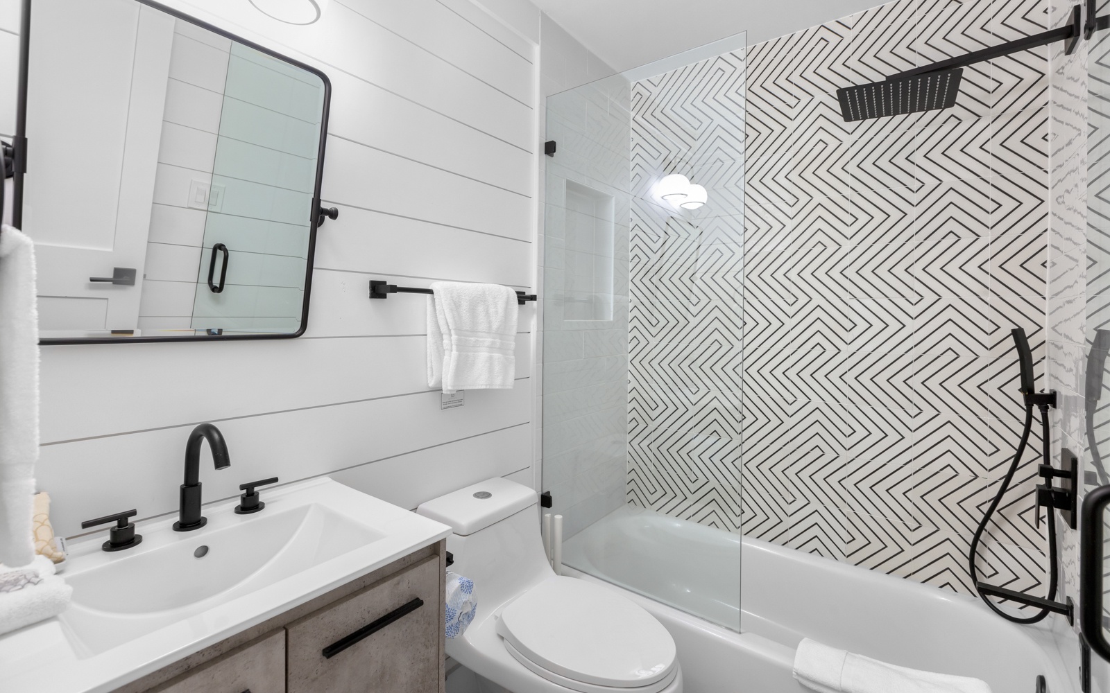 - Built-in Bunkroom: 1 Twin Over Queen Bed, Shared Bath, TV