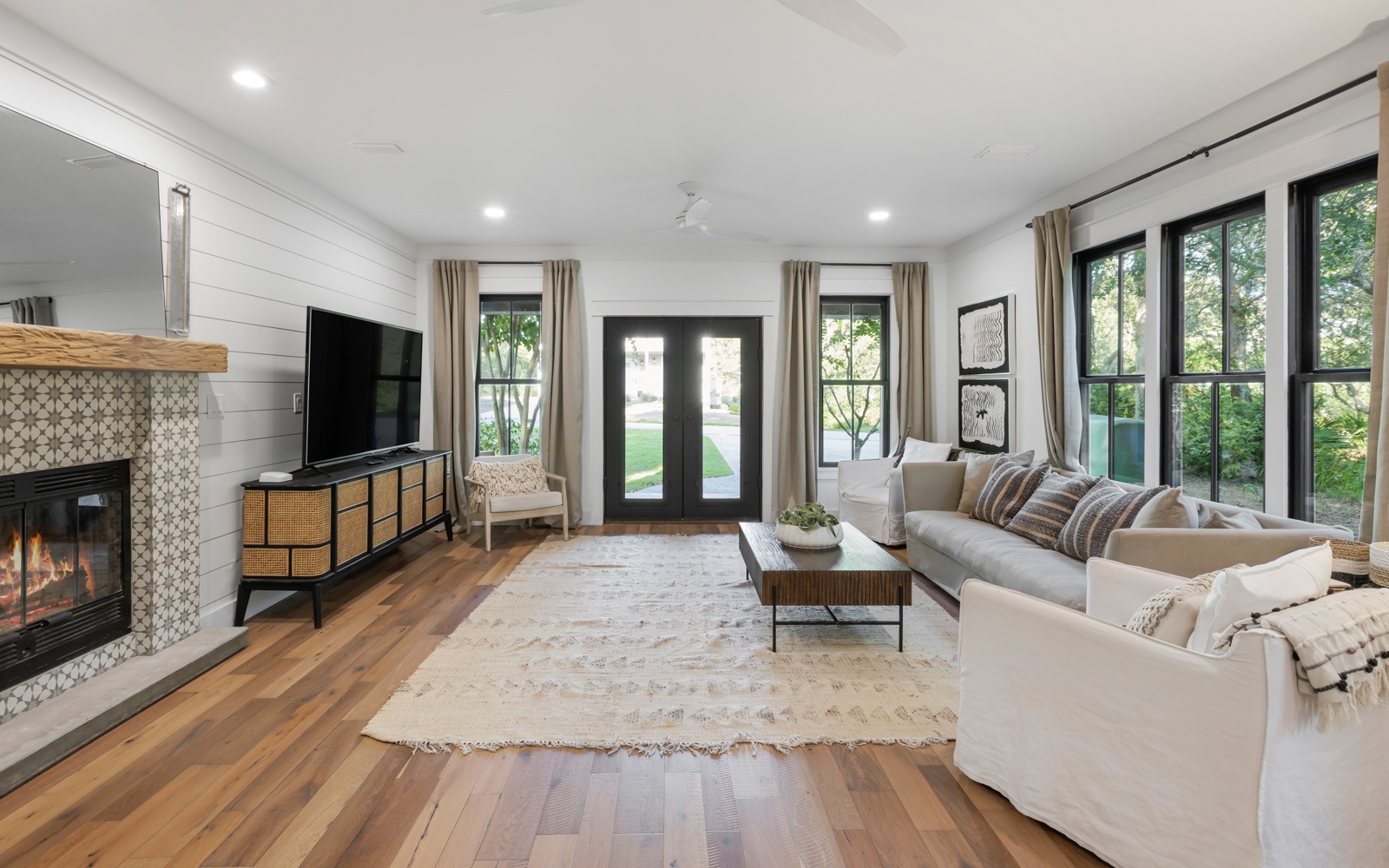 The living room is gorgeous. It’s also cozy! Relax on the comfy sofa, enjoy the big game on the 70" smart TV, and warm up in the winter months with a fireplace.