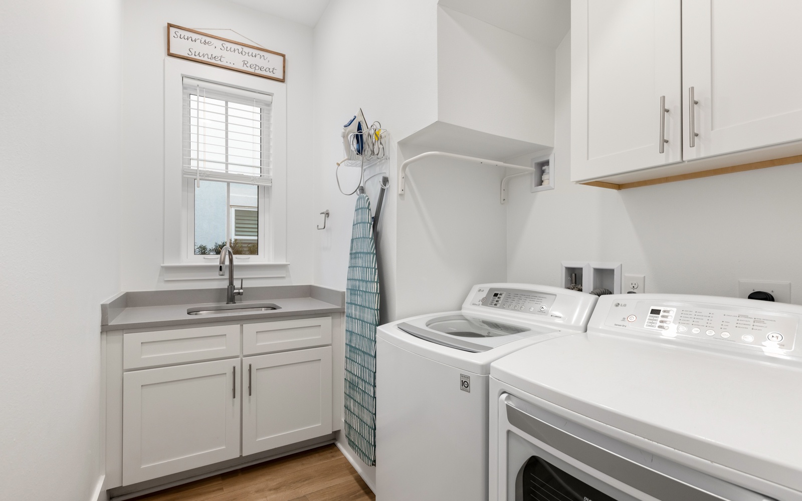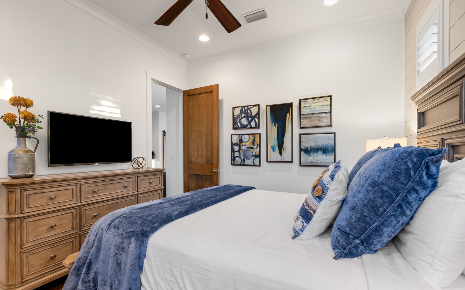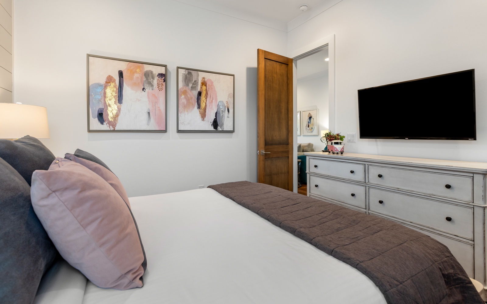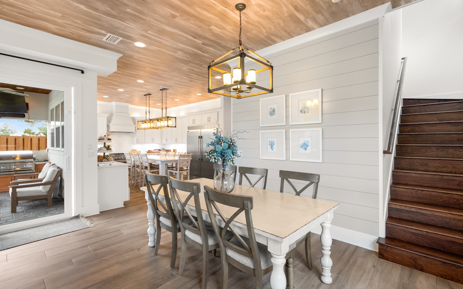 Out back, the private pool is beautiful and inviting, as is the patio, with a built-in gas grill, and large TV. Watch movies in the warm water or play a few fun rounds of corn hole. Never a dull moment.