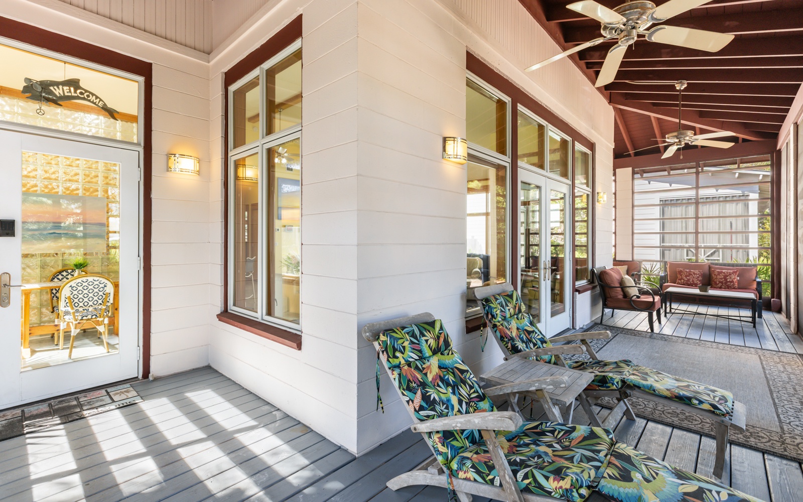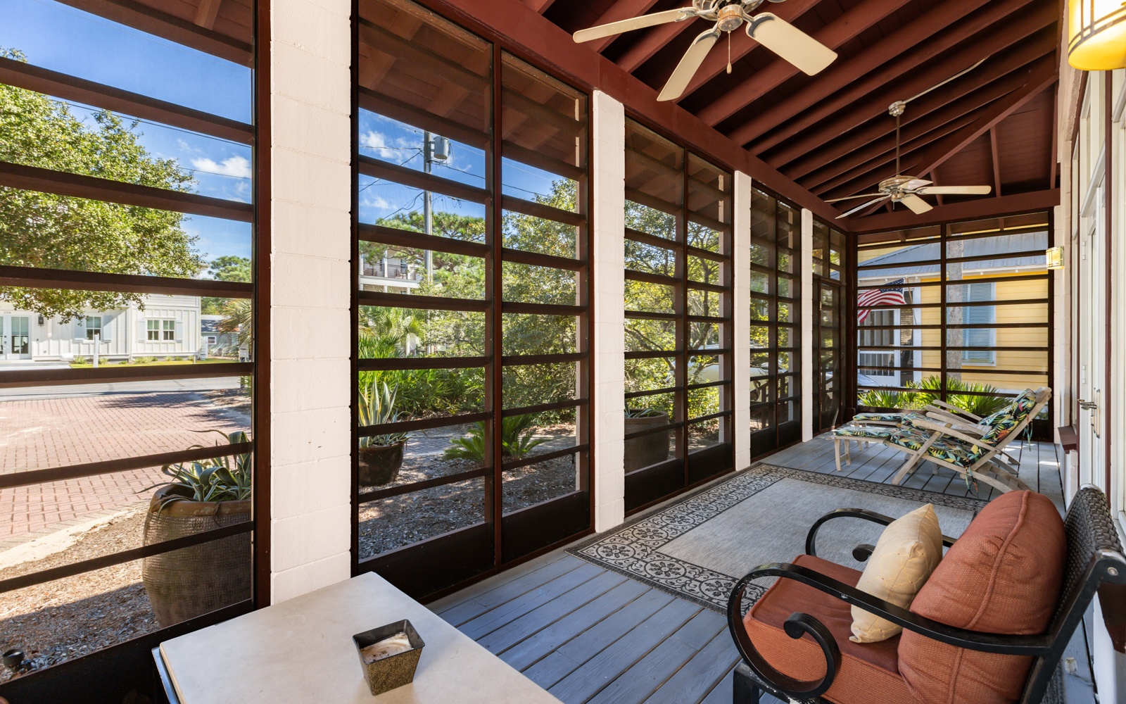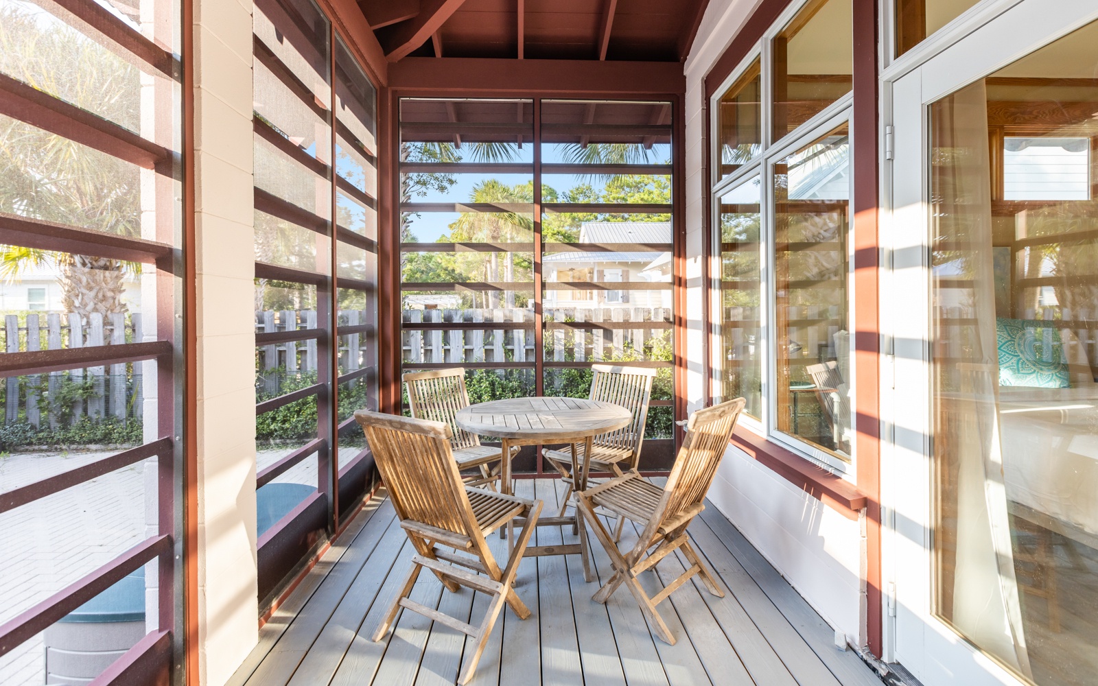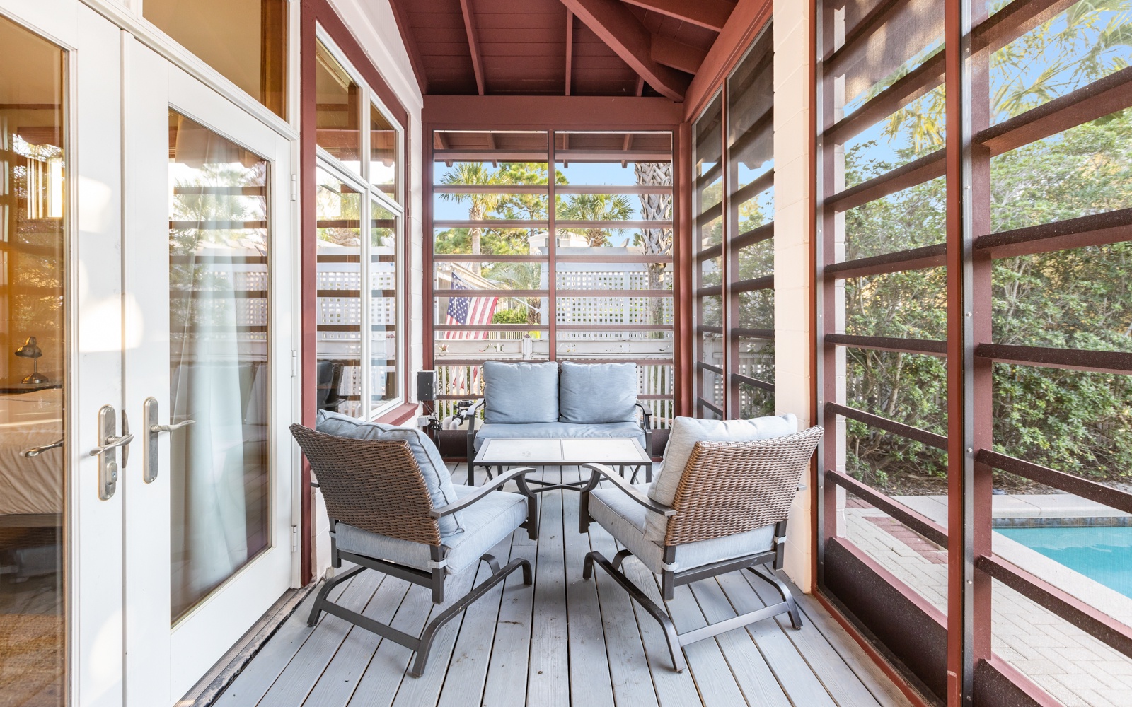 The screened back porch provides a peaceful view of the shaded pool oasis. With comfortable lounge chairs, this unique outdoor space will quickly become a family favorite for hours of relaxation.