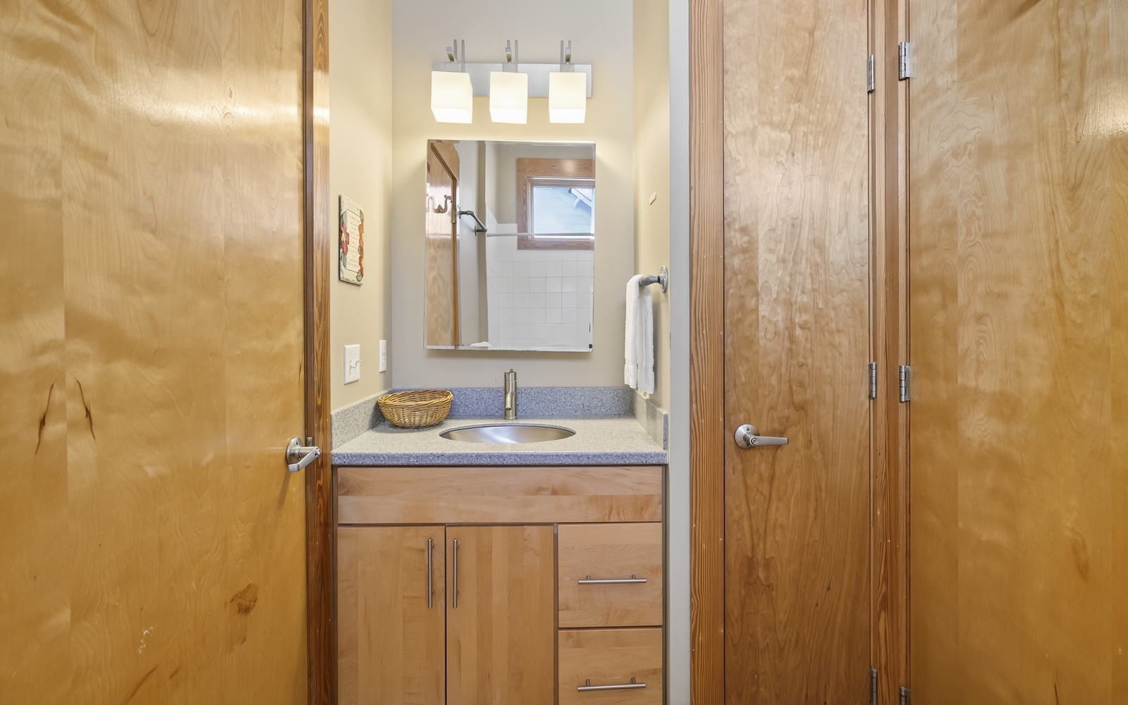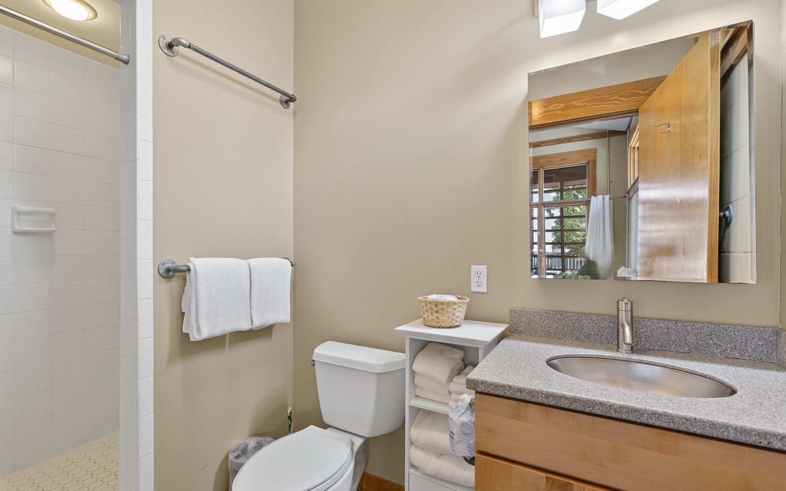 Towards the back of the home, you'll find two primary bedrooms with king-sized beds, TVs, and private baths. Both rooms have direct access to the back porch, offering a lovely view of the pool.