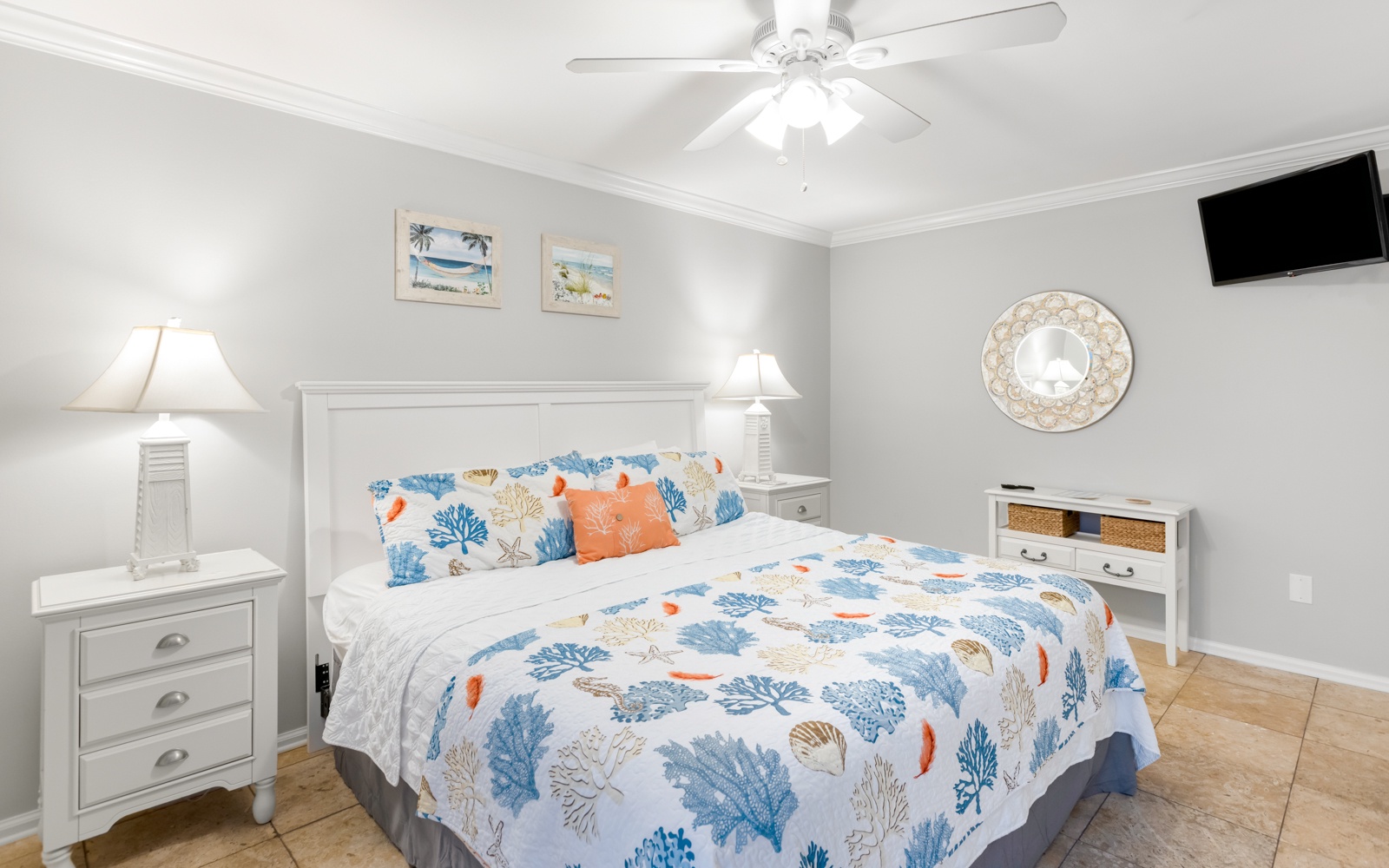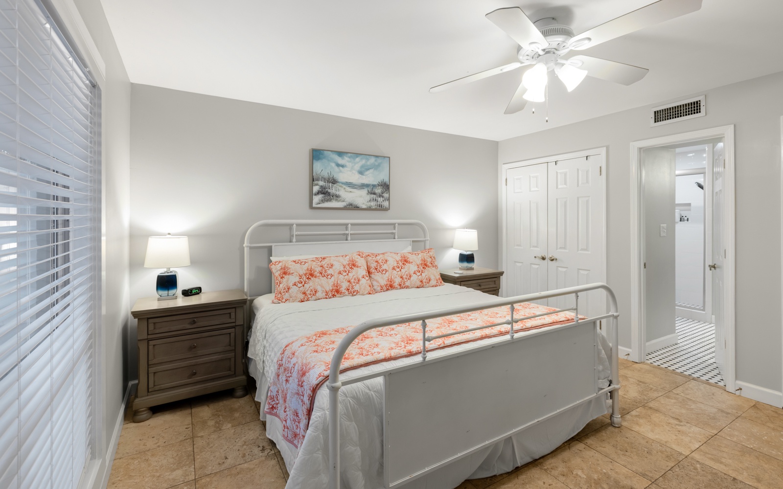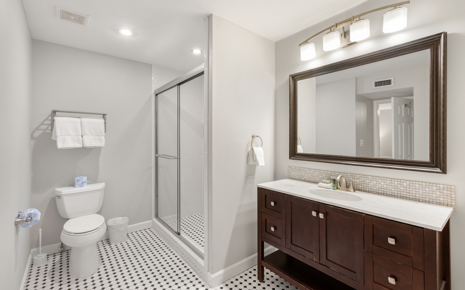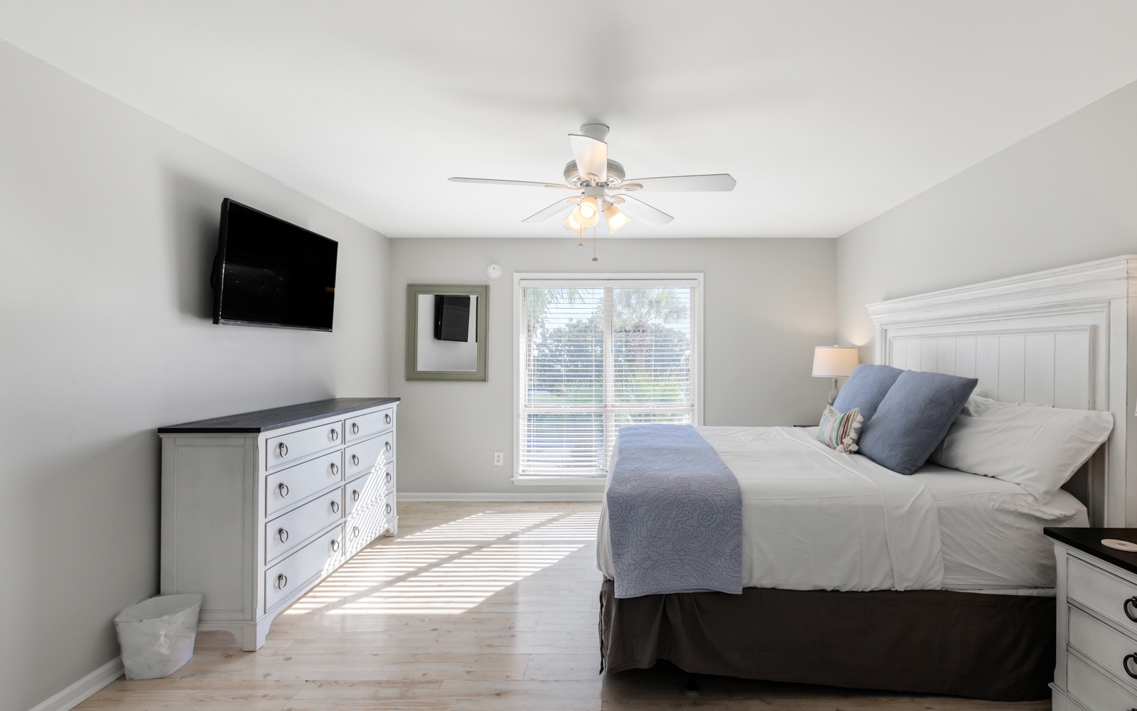 - King in 1st floor primary bedroom; full private bath; walk-in shower; TV