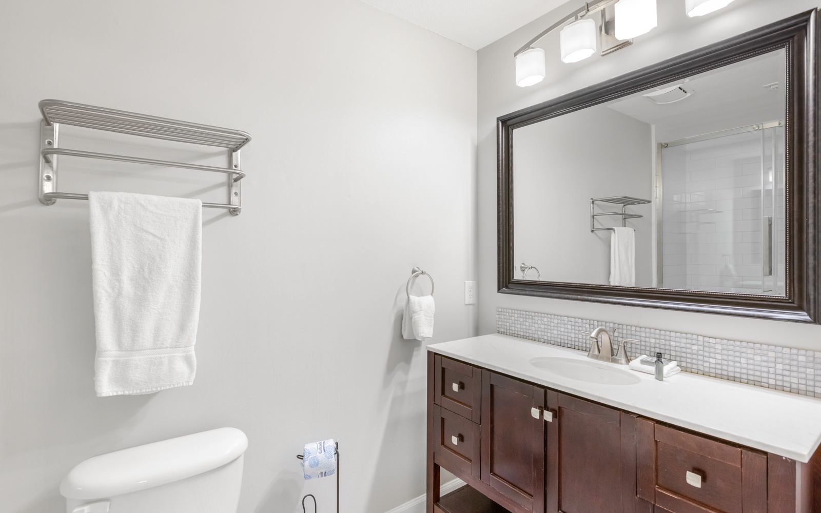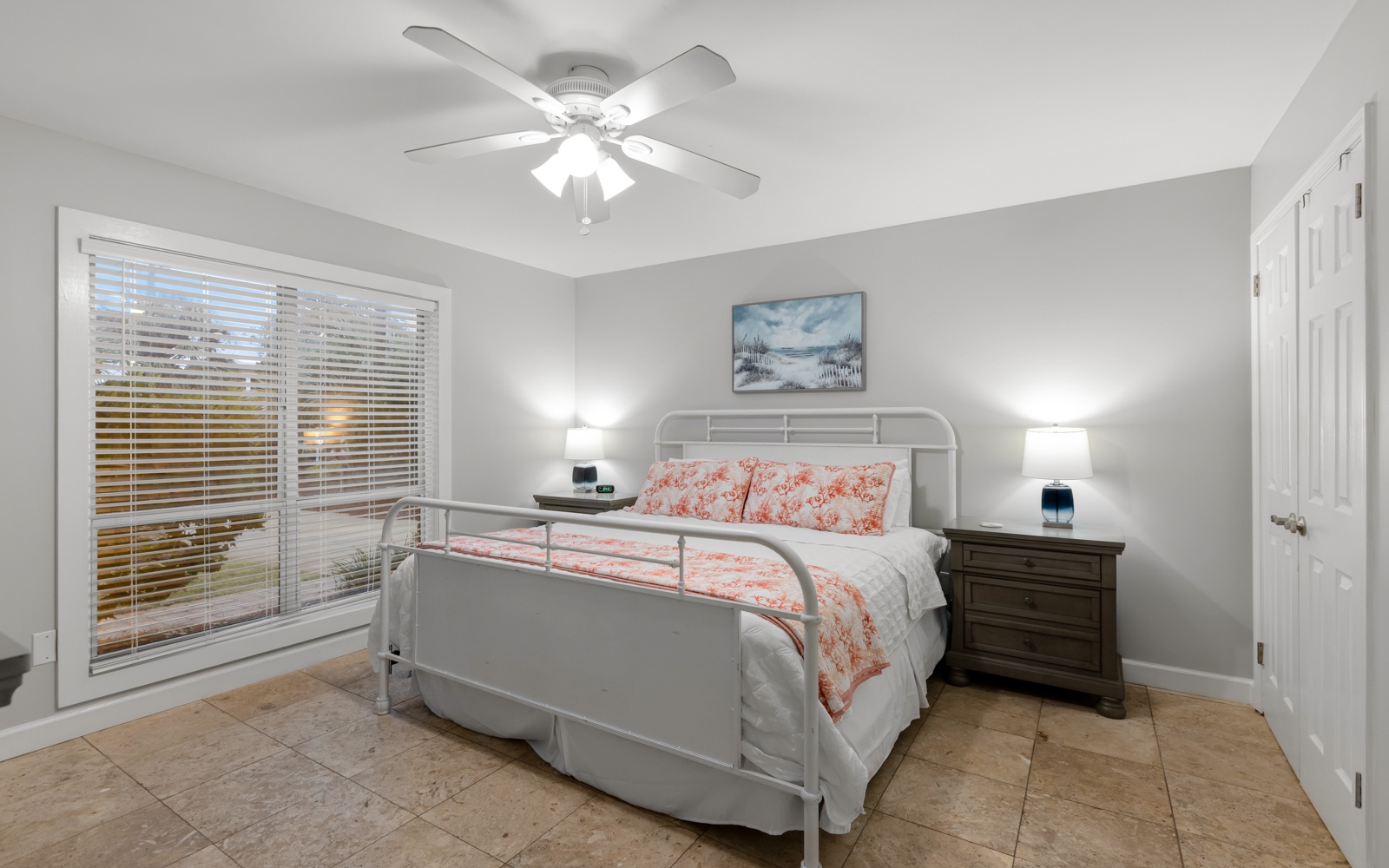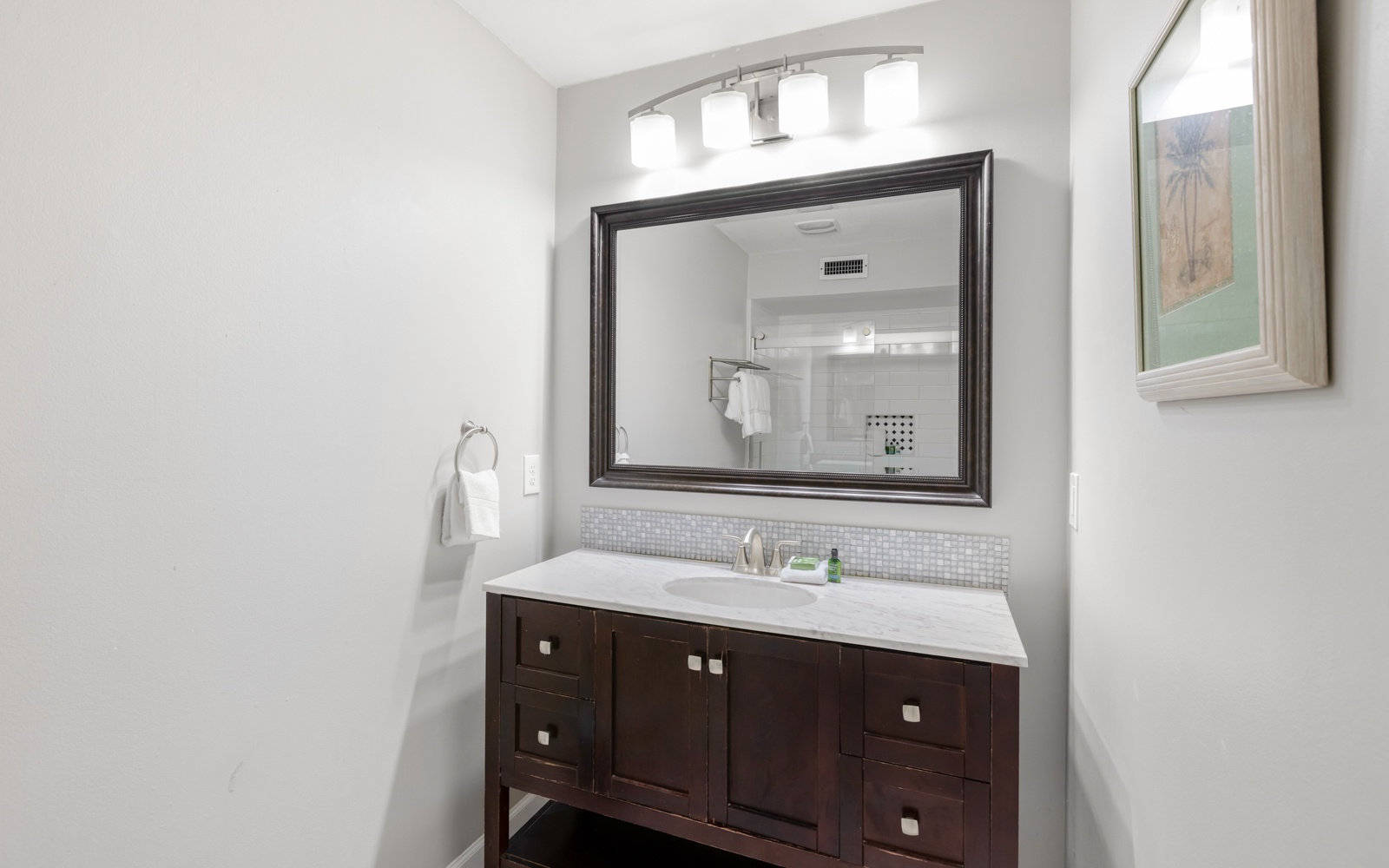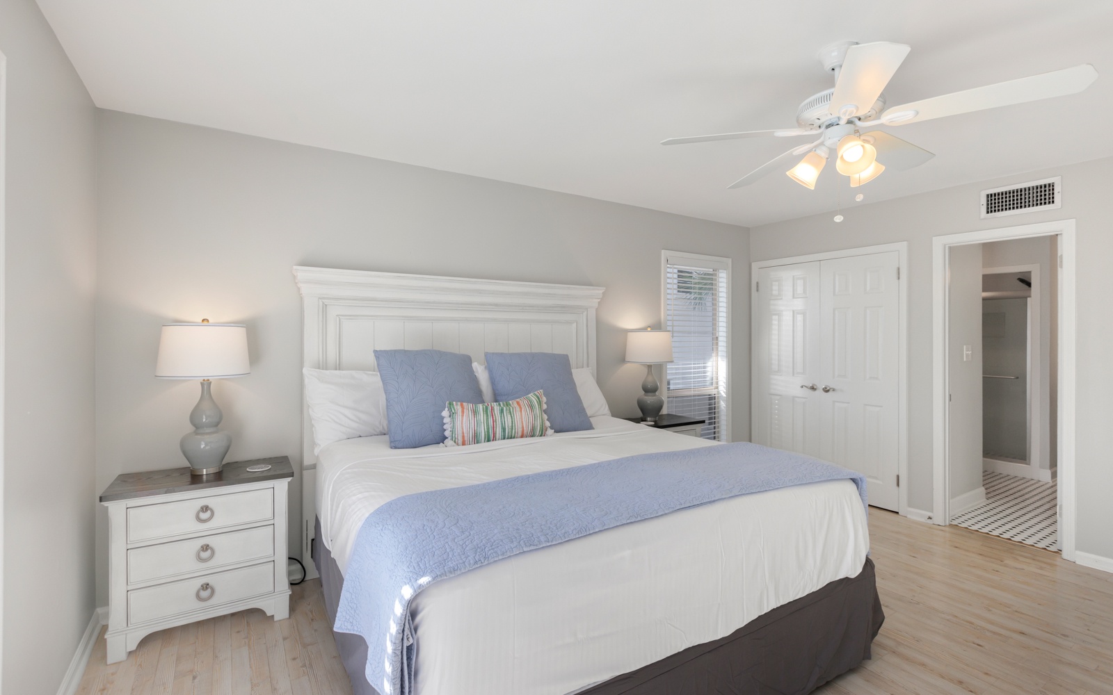- King in 1st floor primary bedroom; full private bath; walk-in shower; TV