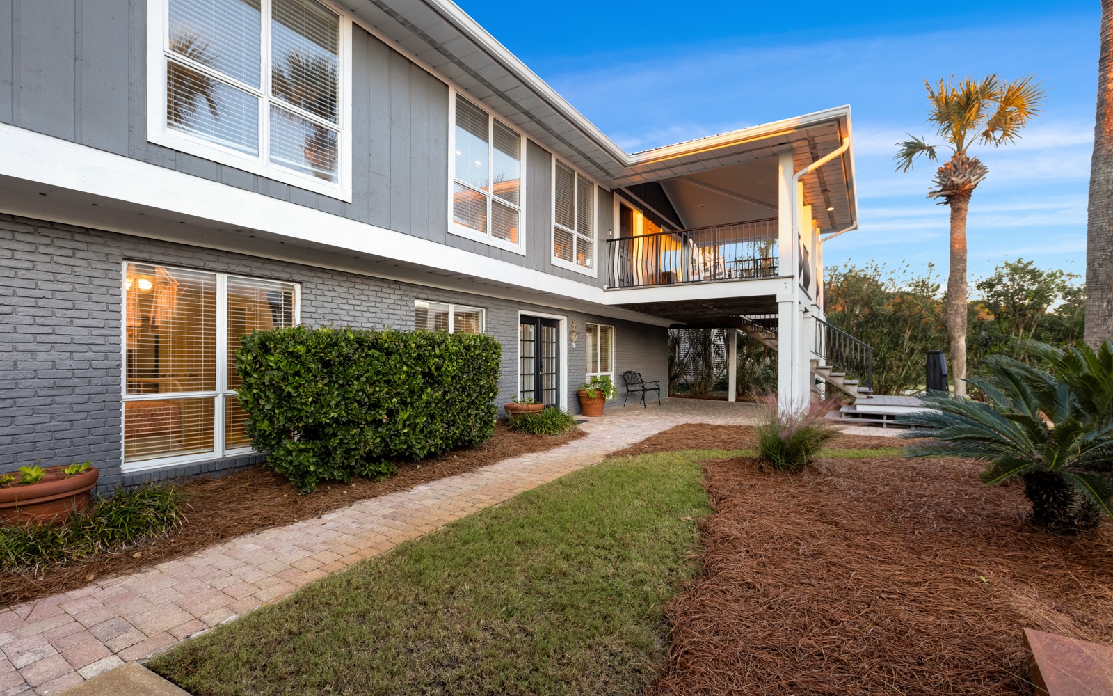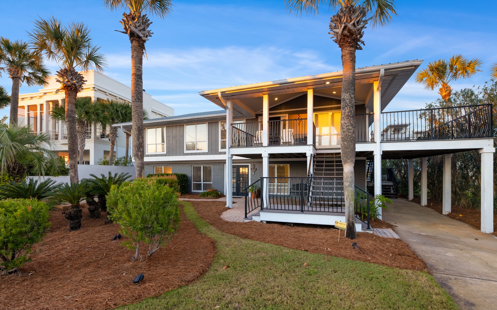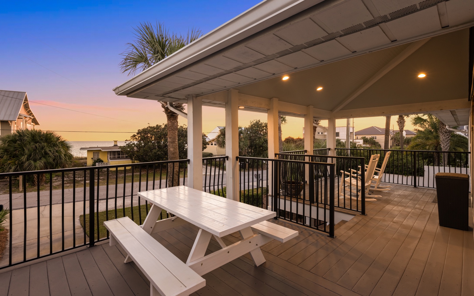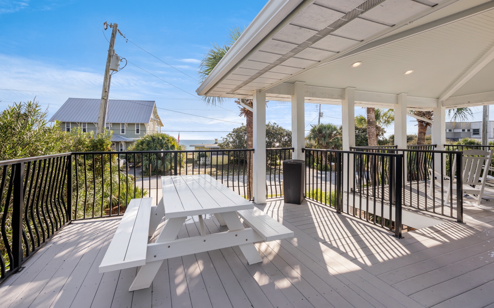 The beach is right across the street (30A), on the other side of the beachfront homes, with public beach access just a few steps away! The second-level patio, with park bench, picnic table, and rocking chairs, faces the gulf, providing a wonderful setting to enjoy the sound of the waves crashing in the distance. Two long driveways and multiple access points ensure utmost convenience.