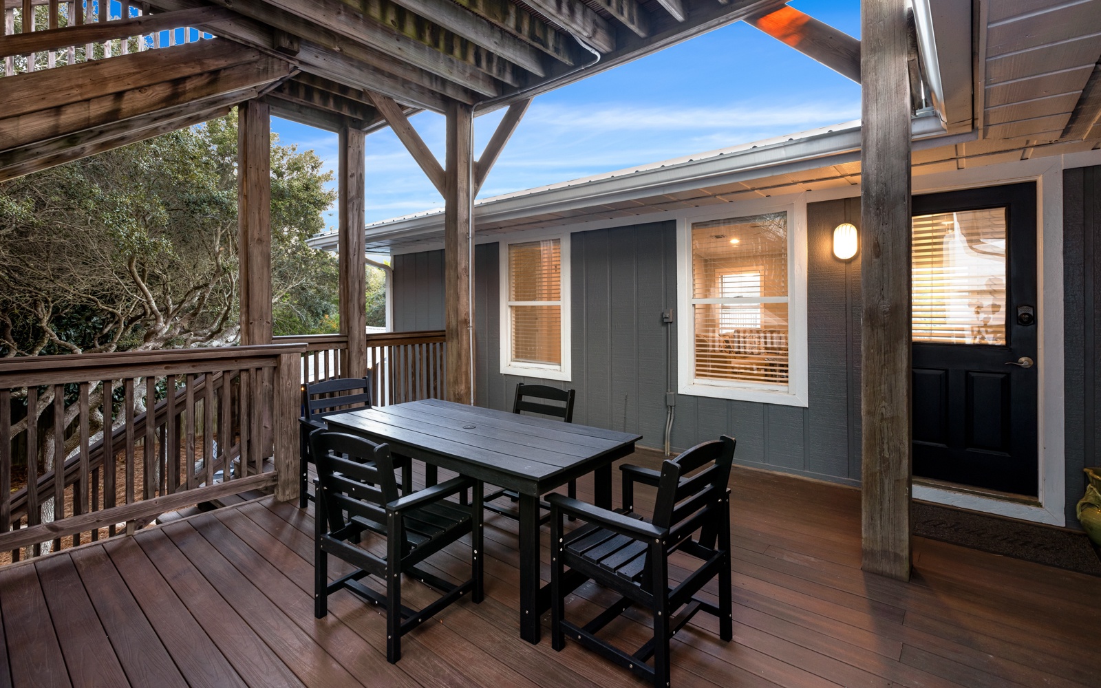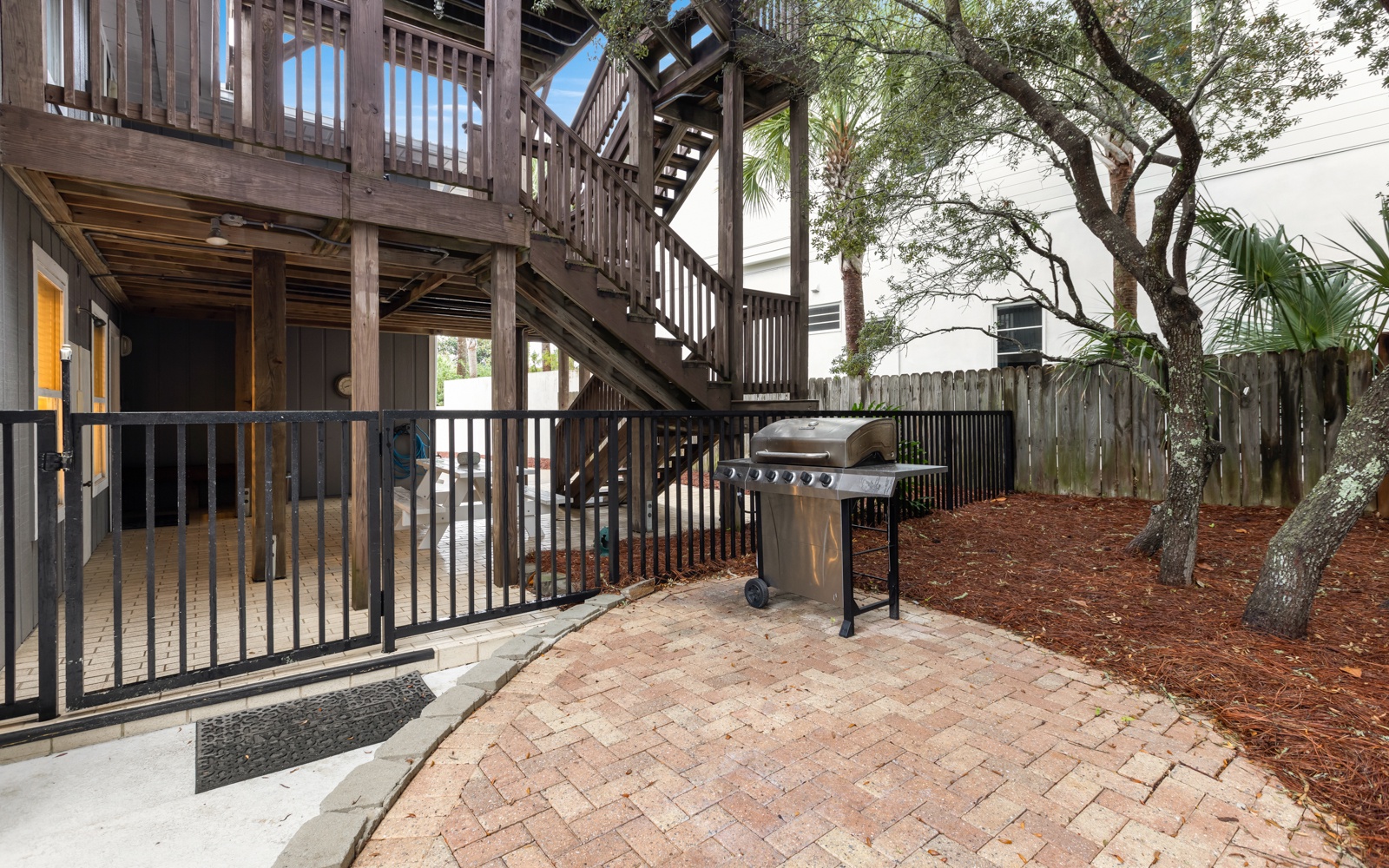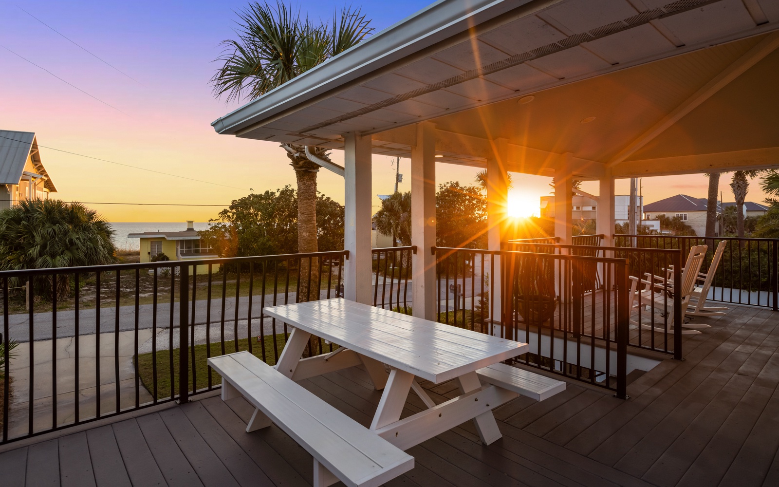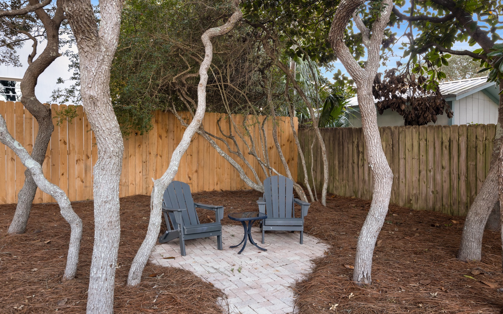 The beach is right across the street (30A), on the other side of the beachfront homes, with public beach access just a few steps away! The second-level patio, with park bench, picnic table, and rocking chairs, faces the gulf, providing a wonderful setting to enjoy the sound of the waves crashing in the distance. Two long driveways and multiple access points ensure utmost convenience.
