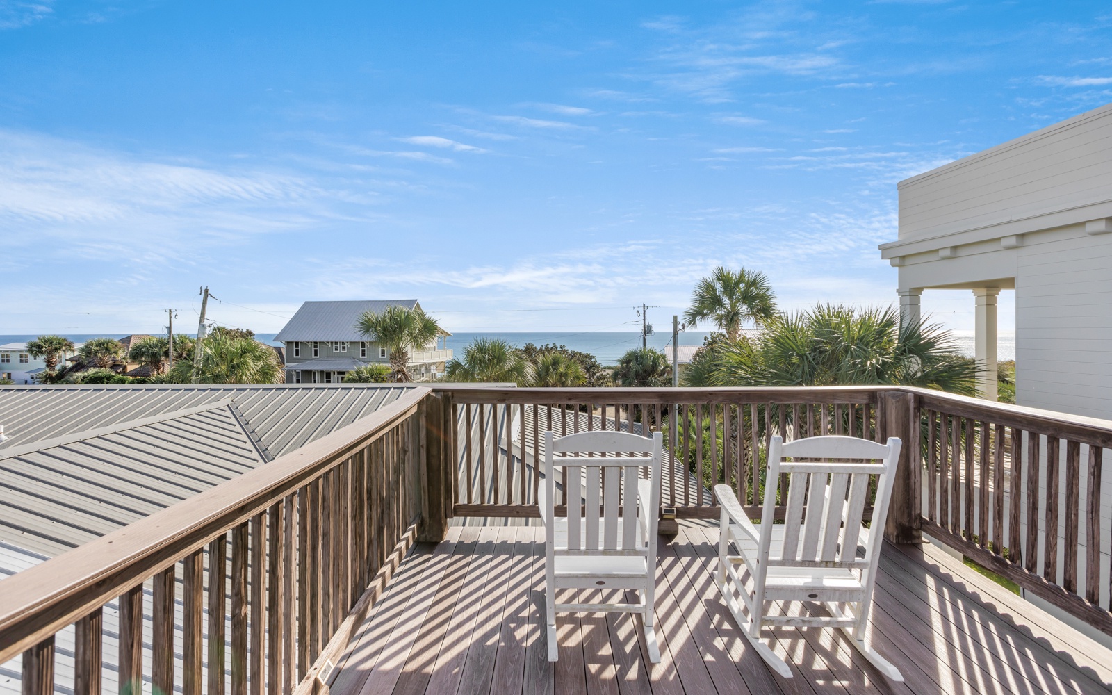 Nearby, stairs lead to a third-floor deck (observation tower?), prime for sunrise and sunset viewing!