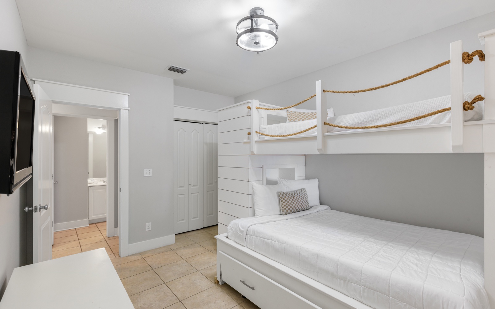 - Full bunkbed, twin trundle in 1st floor bunk room; private bath; TV