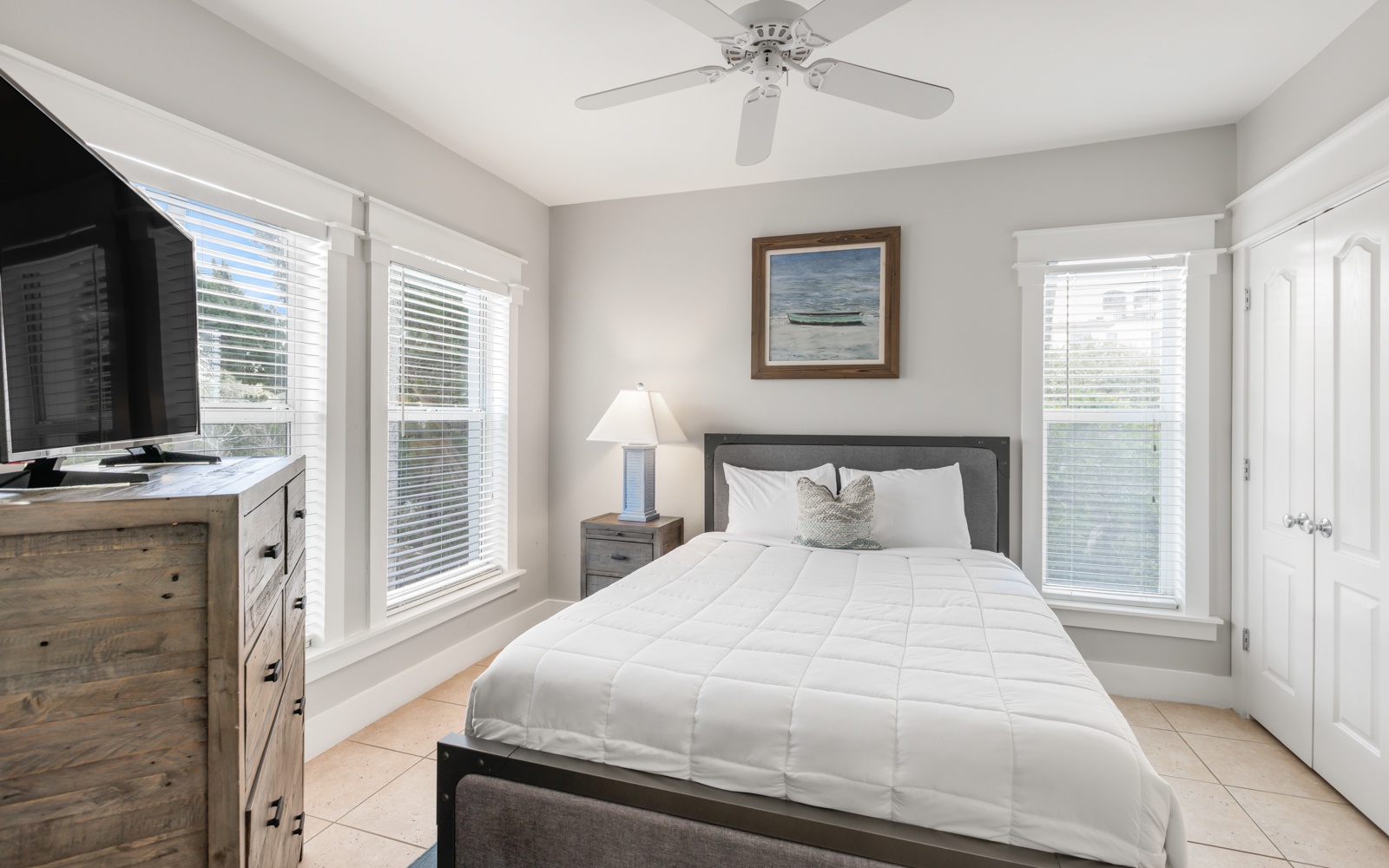 The guest room, queen, has a private bath, as does the bunk room, with full bunkbed and twin trundle.