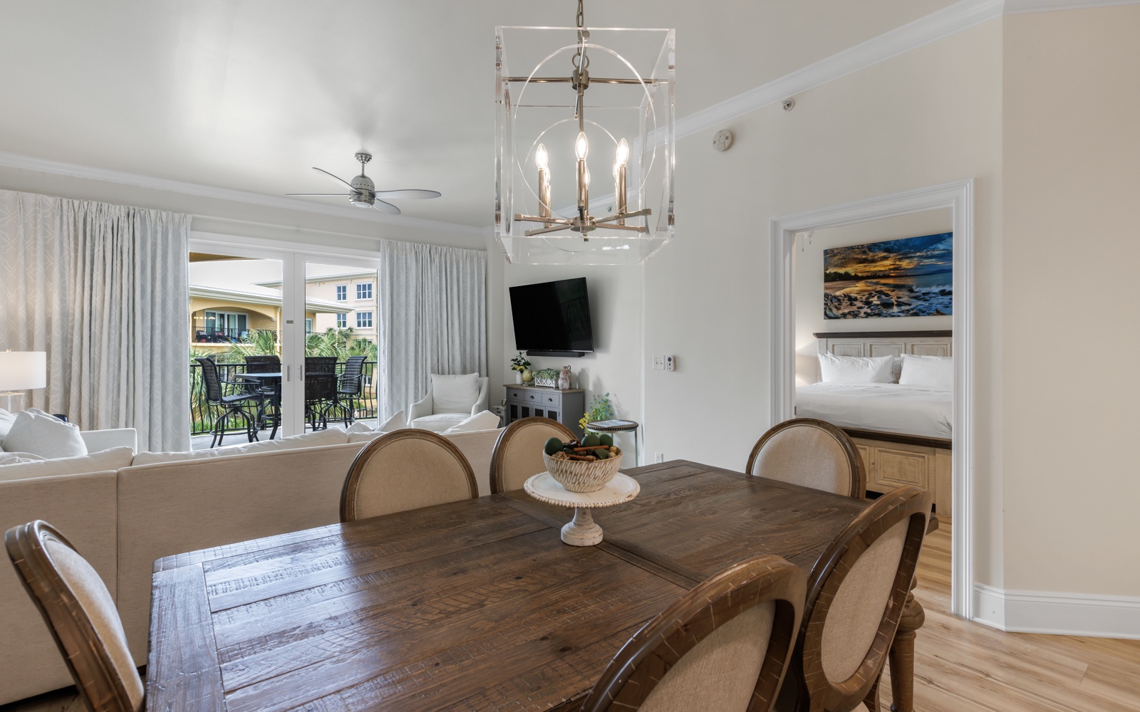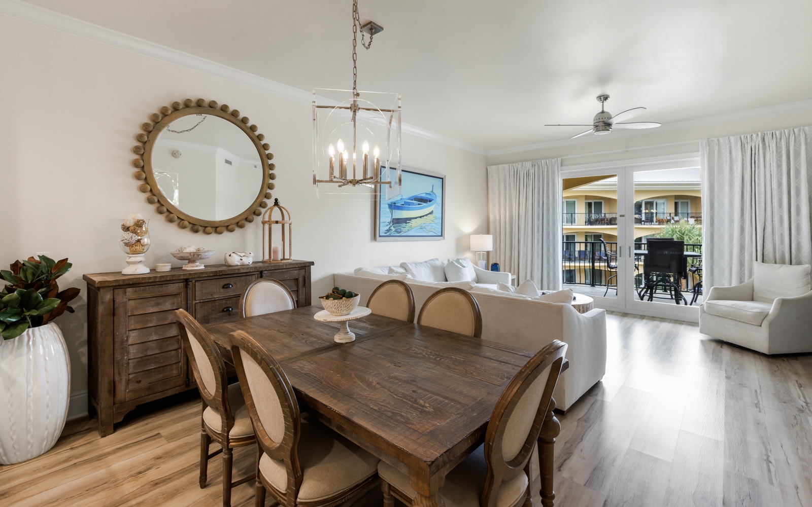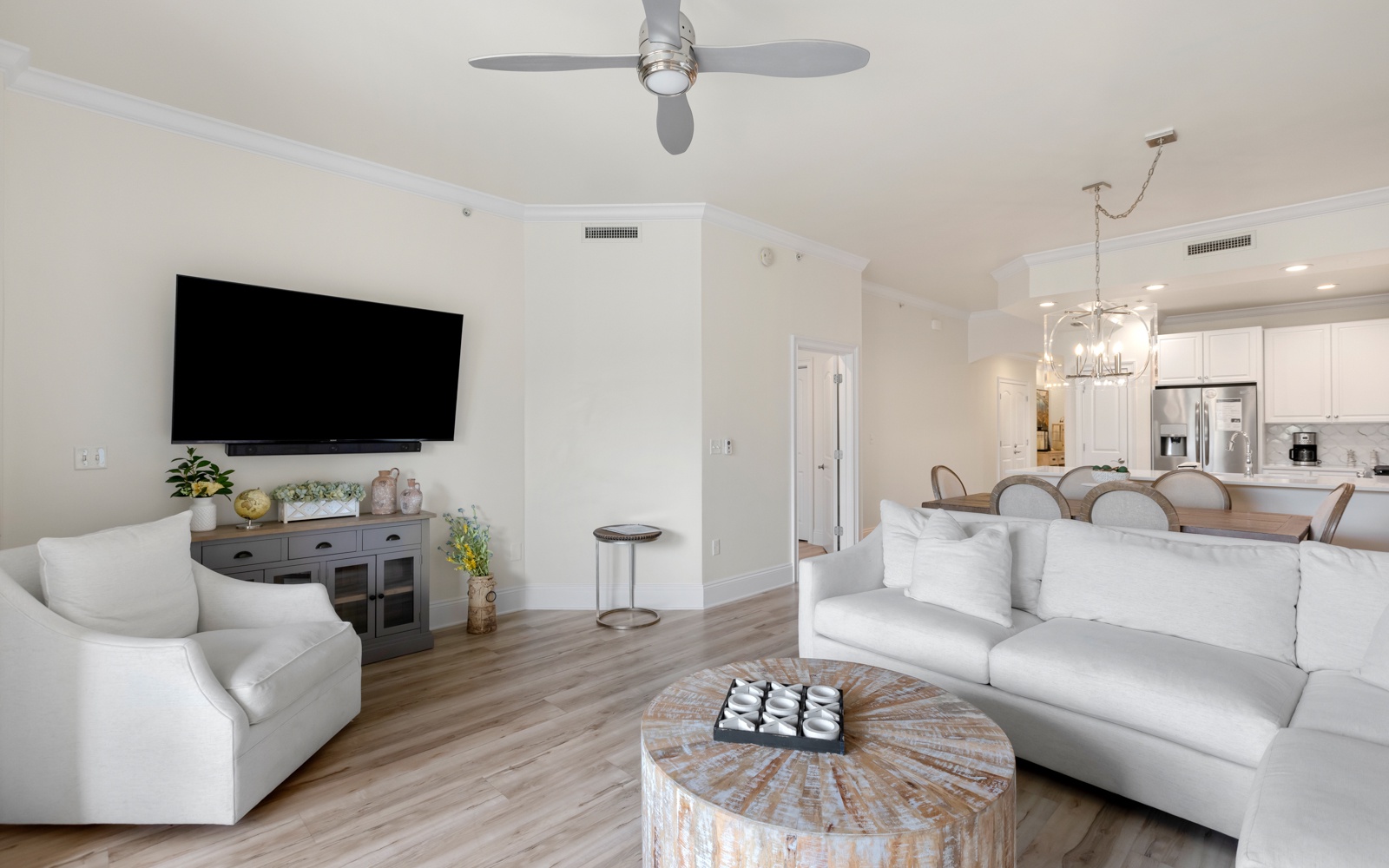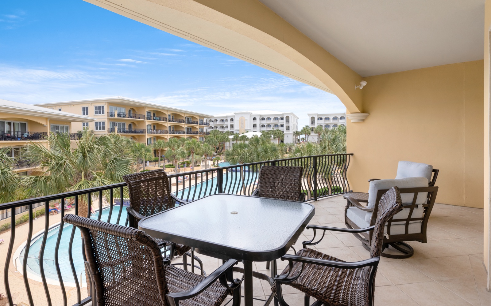 Completely renovated with all new furnishings and appliances, the three-bedroom, three-bathroom home is beautifully decorated and comfortably sleeps 8. The spacious kitchen and living room opens to a large balcony that overlooks the gorgeous pool area.