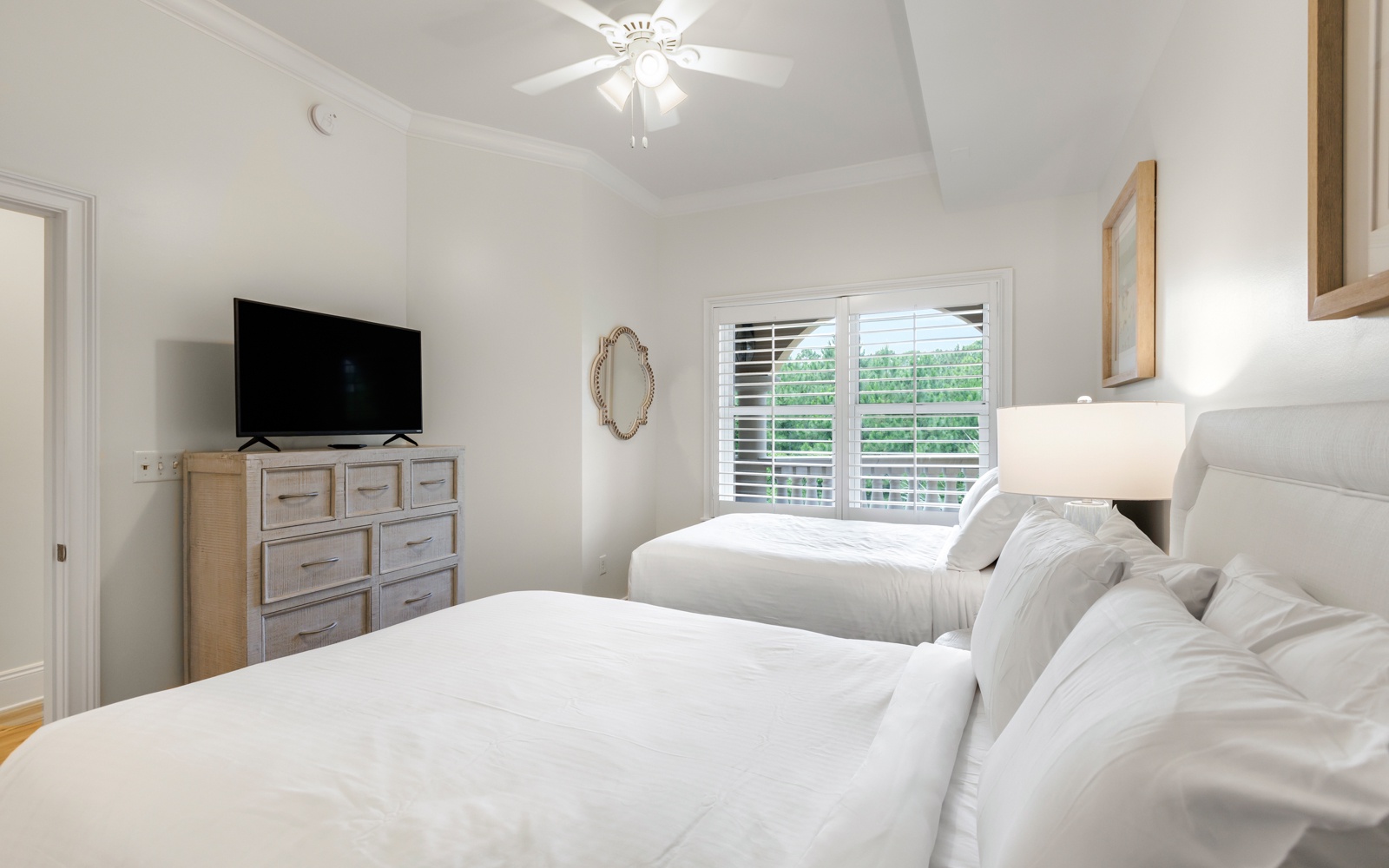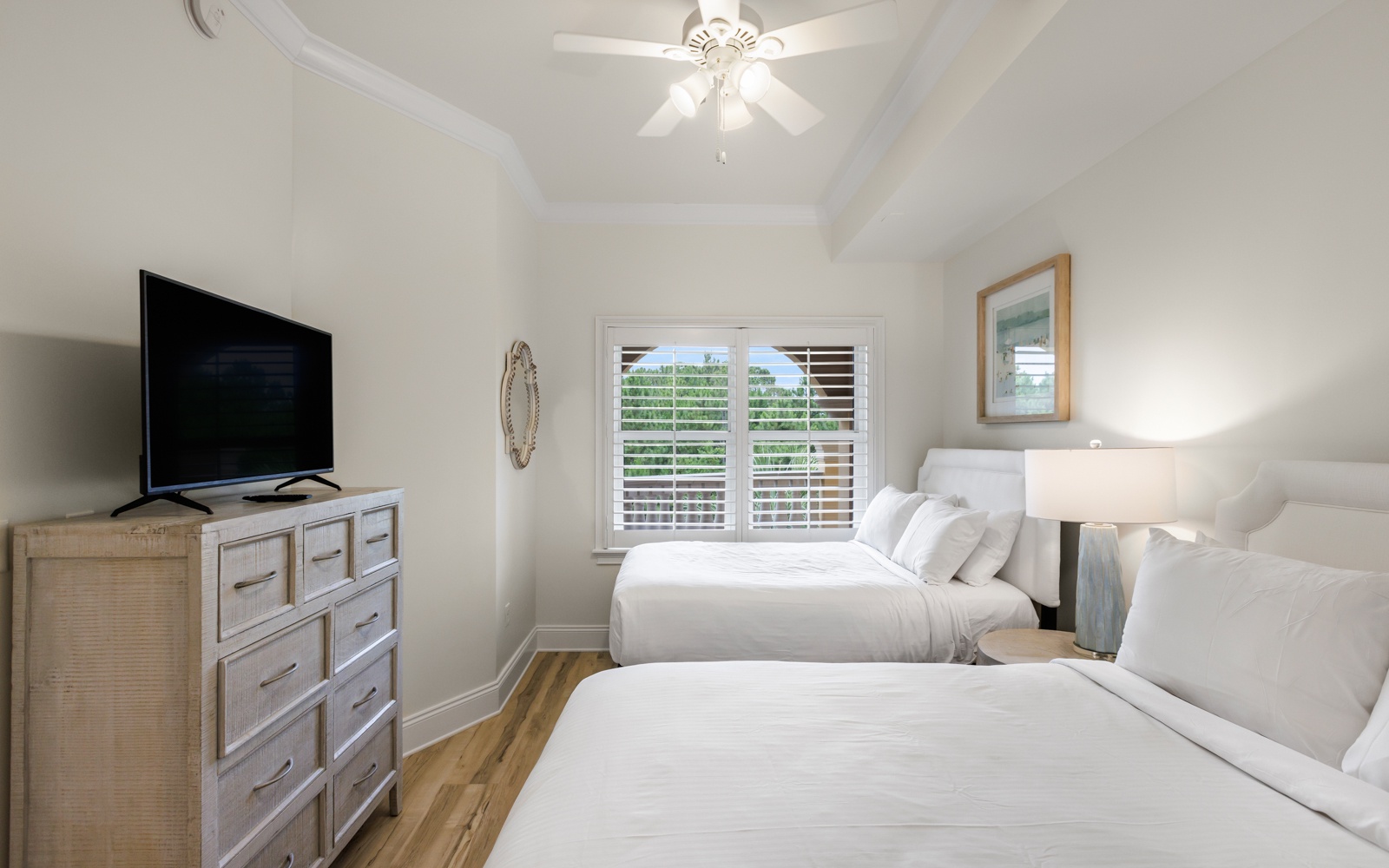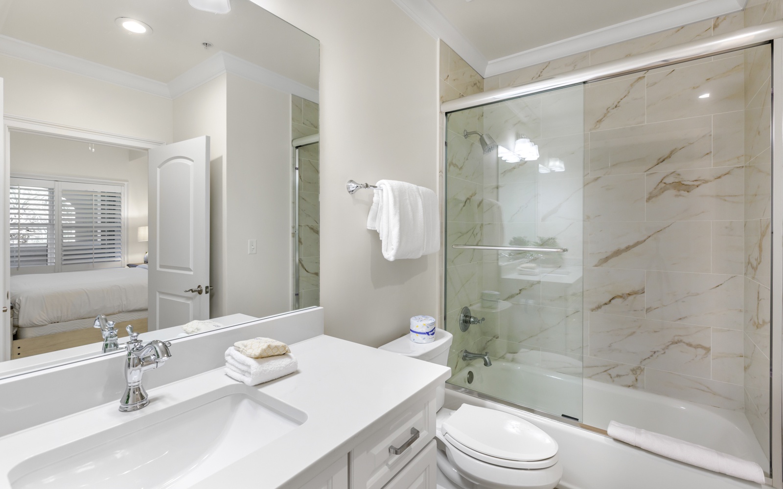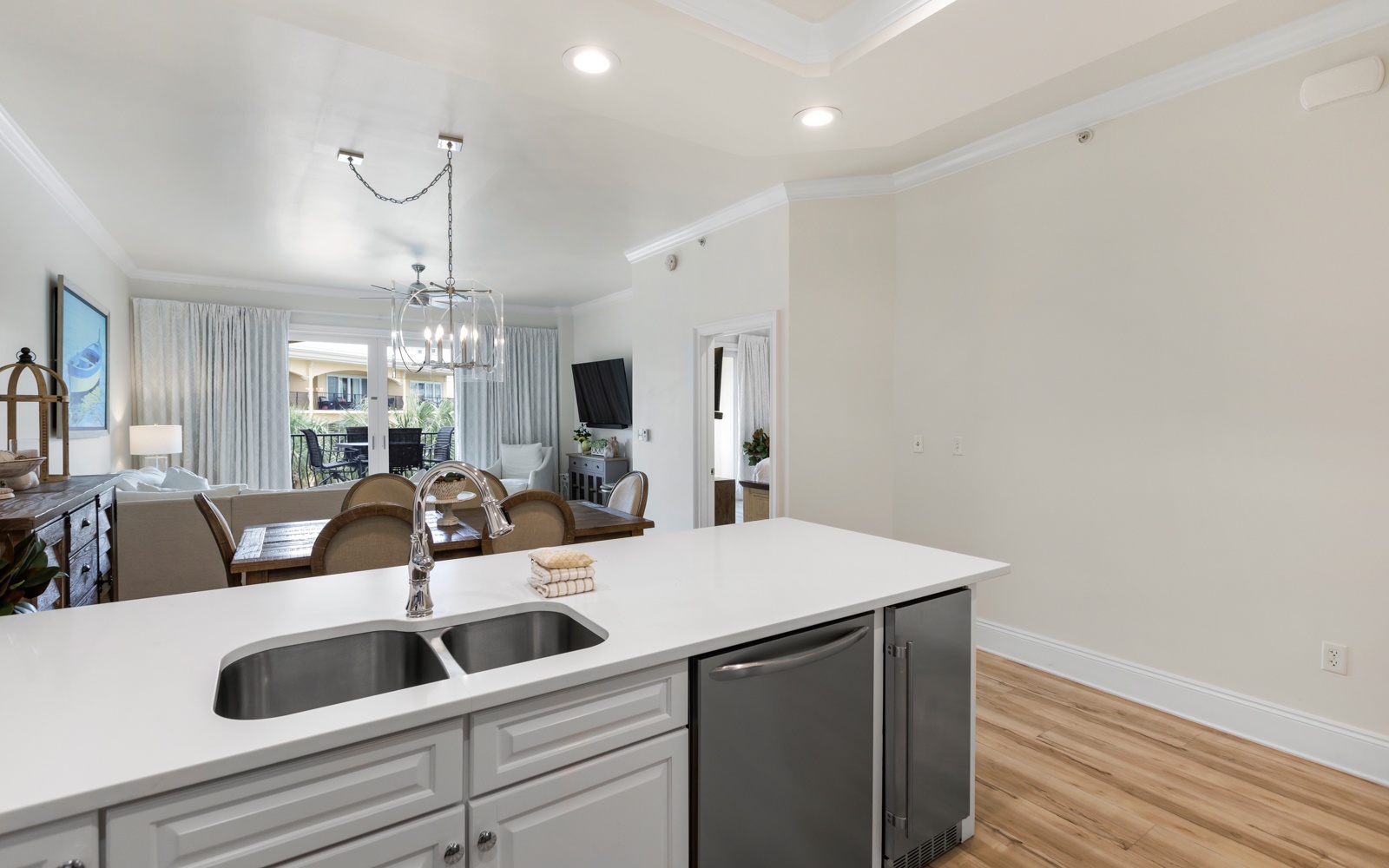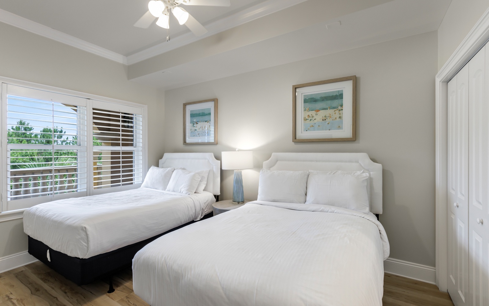 Completely renovated with all new furnishings and appliances, the three-bedroom, three-bathroom home is beautifully decorated and comfortably sleeps 8. The spacious kitchen and living room opens to a large balcony that overlooks the gorgeous pool area.