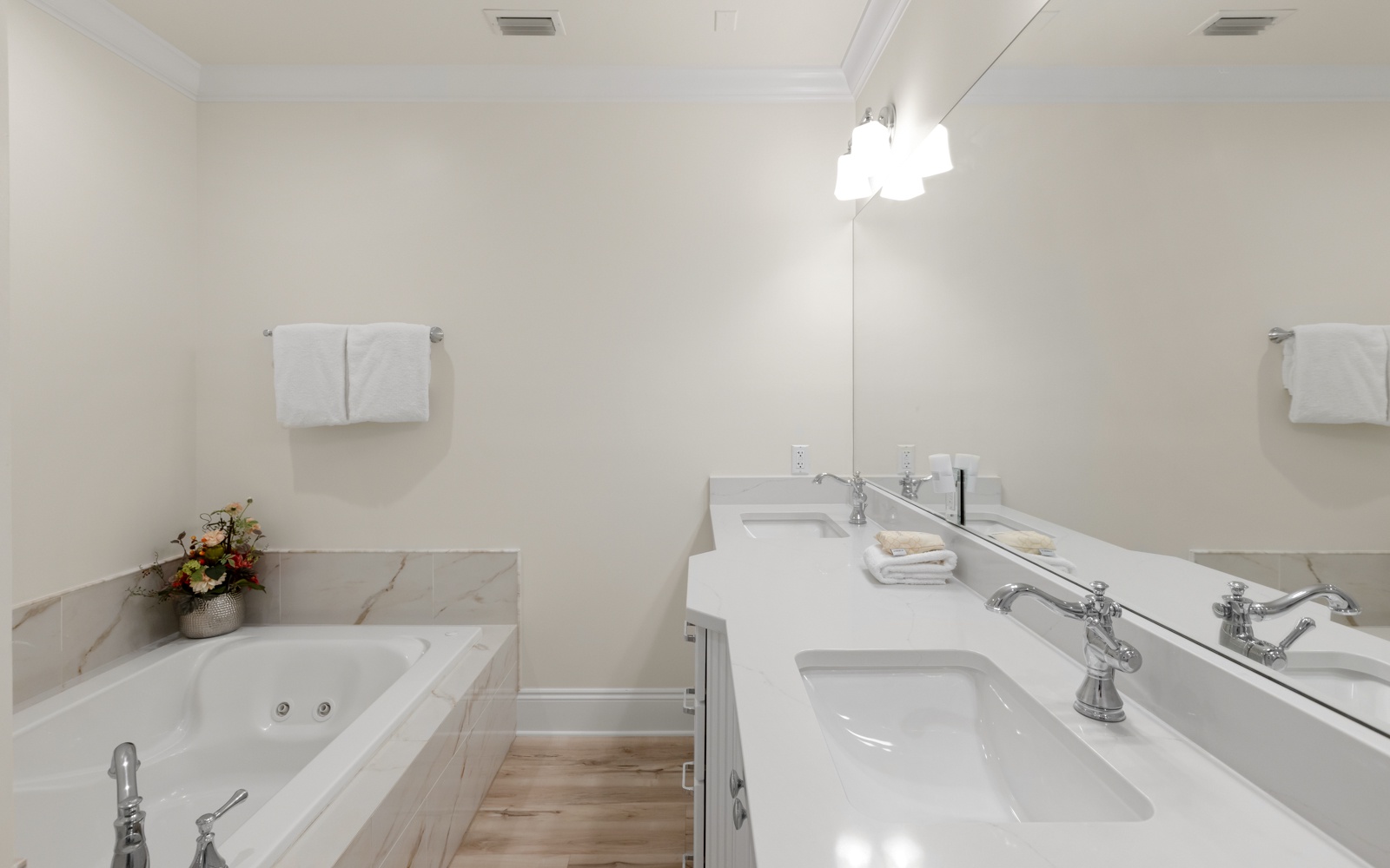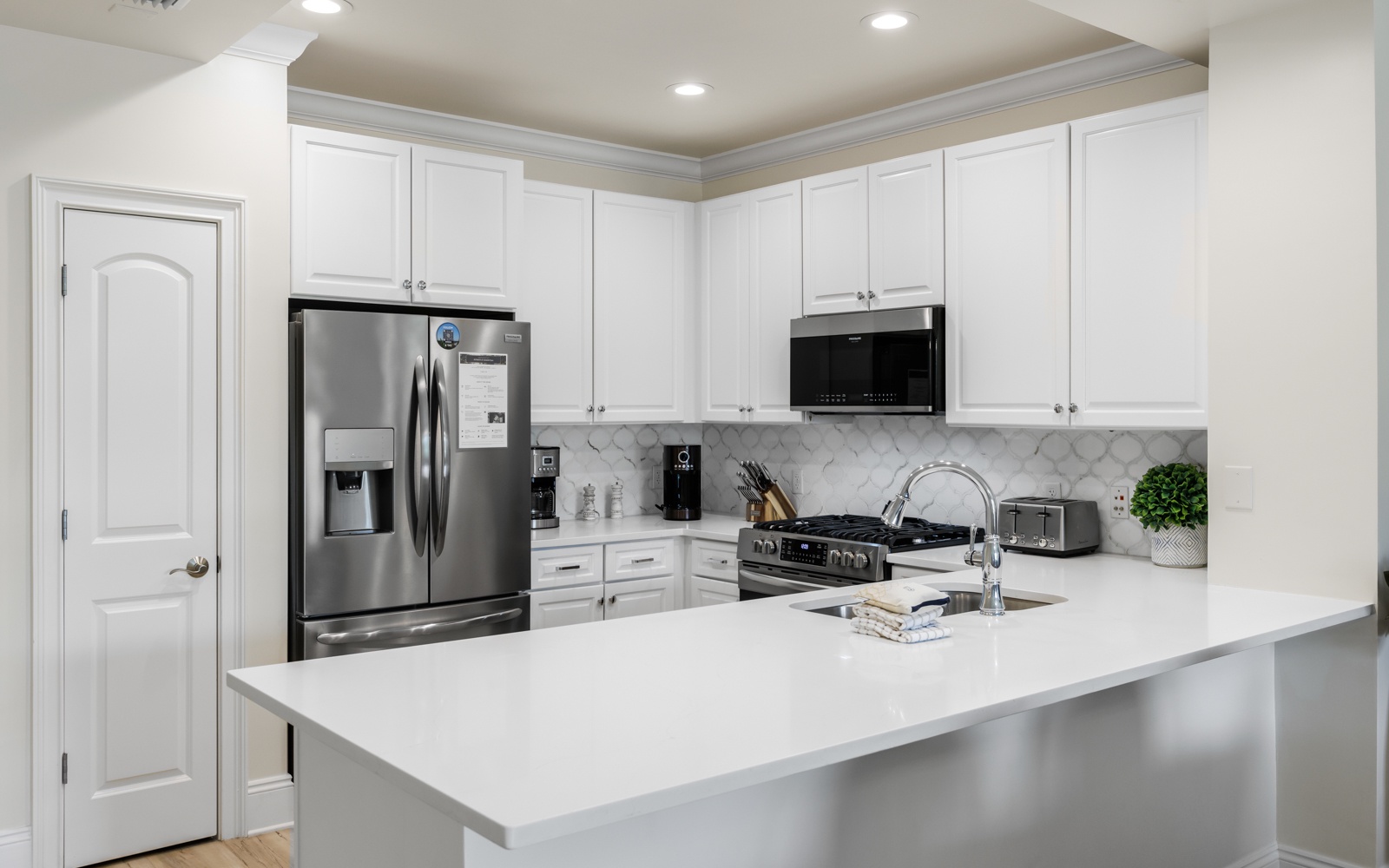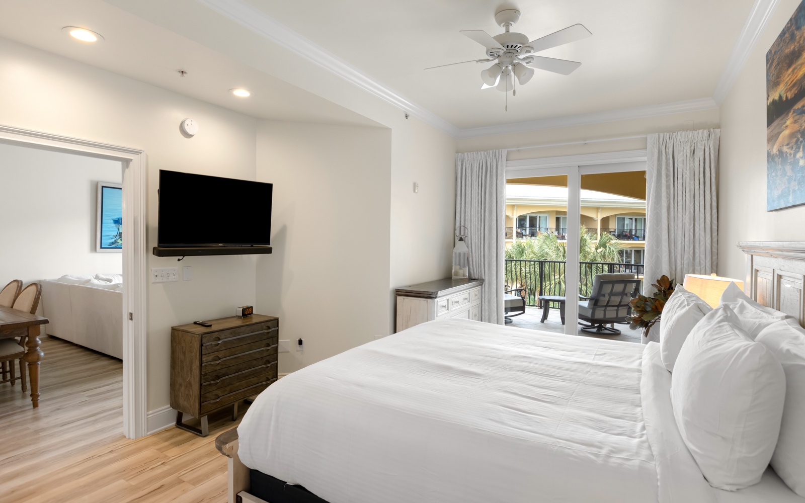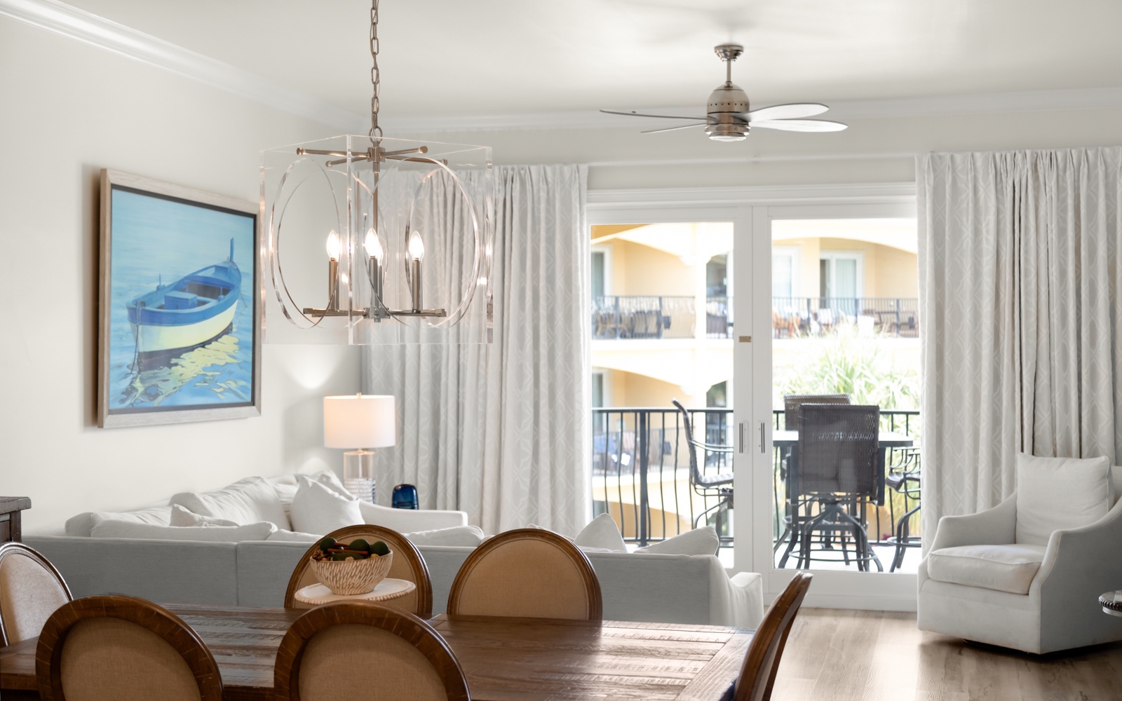 Completely renovated with all new furnishings and appliances, the three-bedroom, three-bathroom home is beautifully decorated and comfortably sleeps 8. The spacious kitchen and living room opens to a large balcony that overlooks the gorgeous pool area.