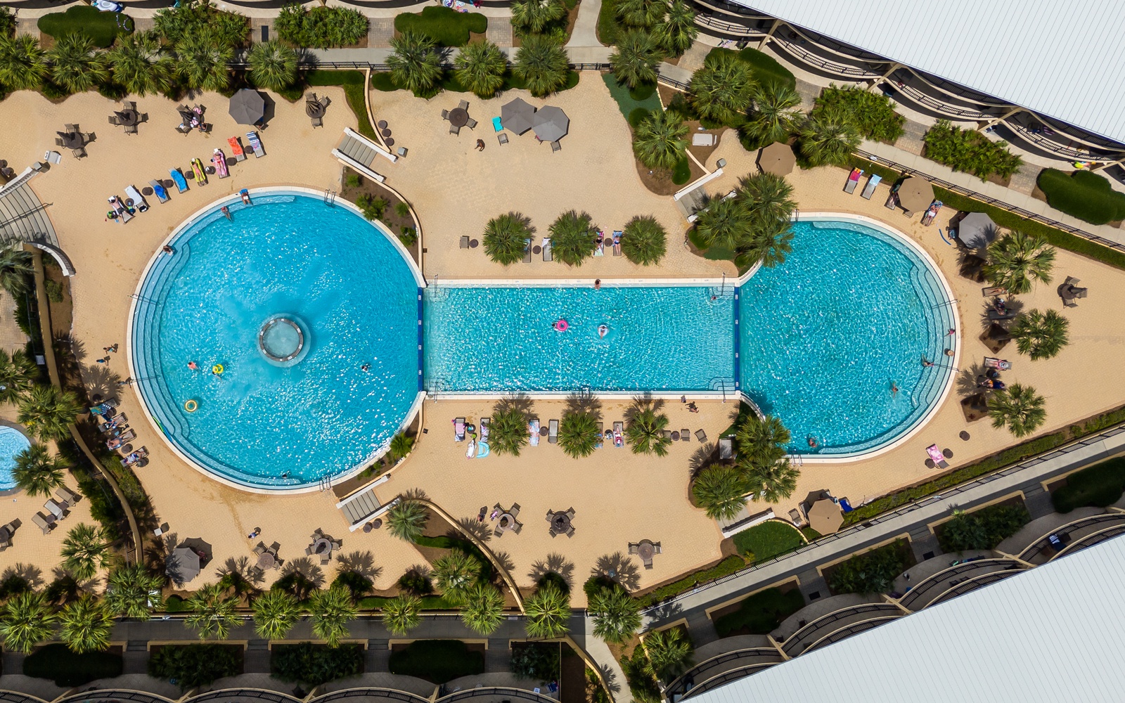 The first pool is 1,700 square feet with a thrilling infinity edge that overlooks and vanishes into the crystal Gulf waters. The second pool is 8,000 square feet with three tiers, an elaborate fountain, and two waterfalls.