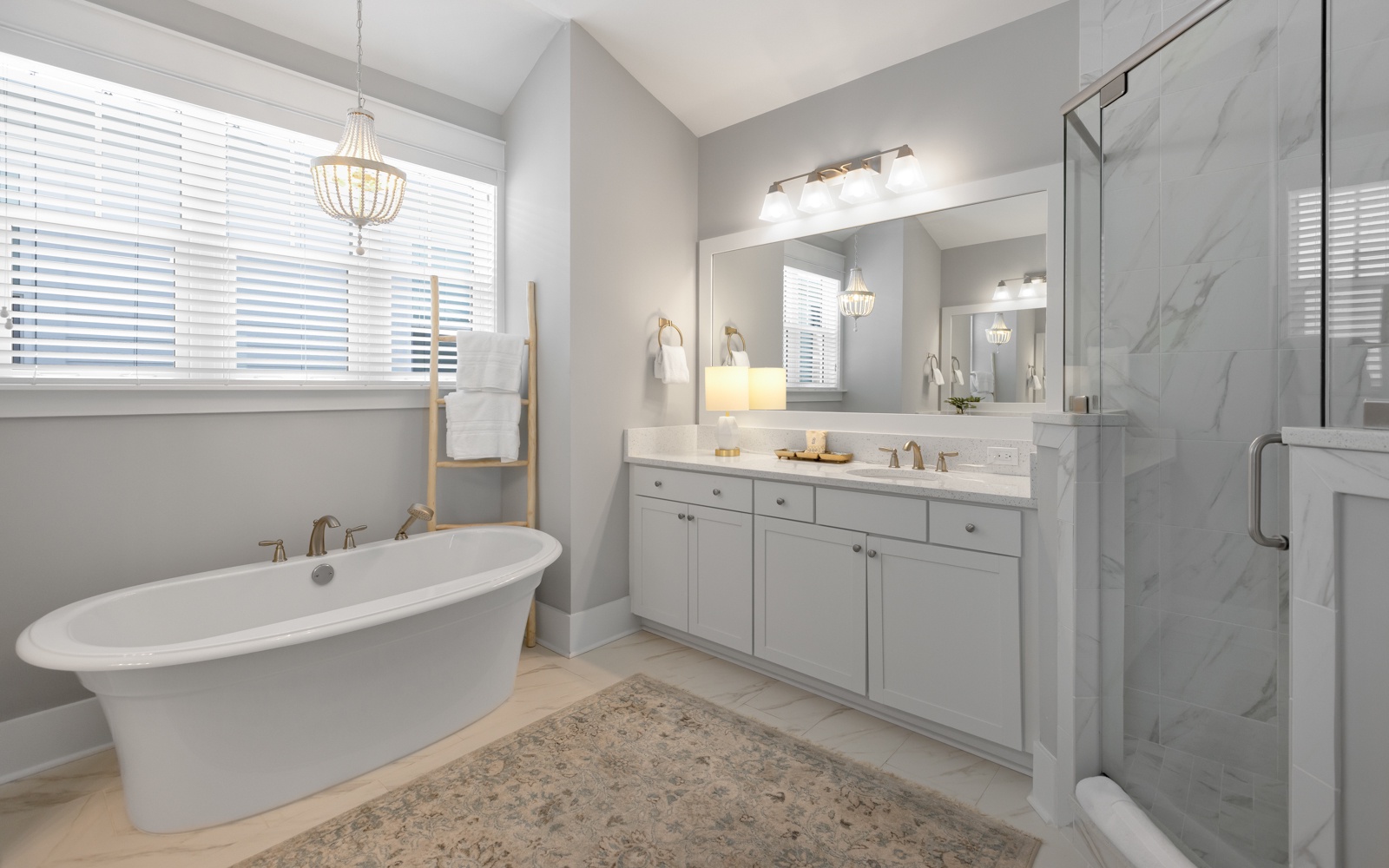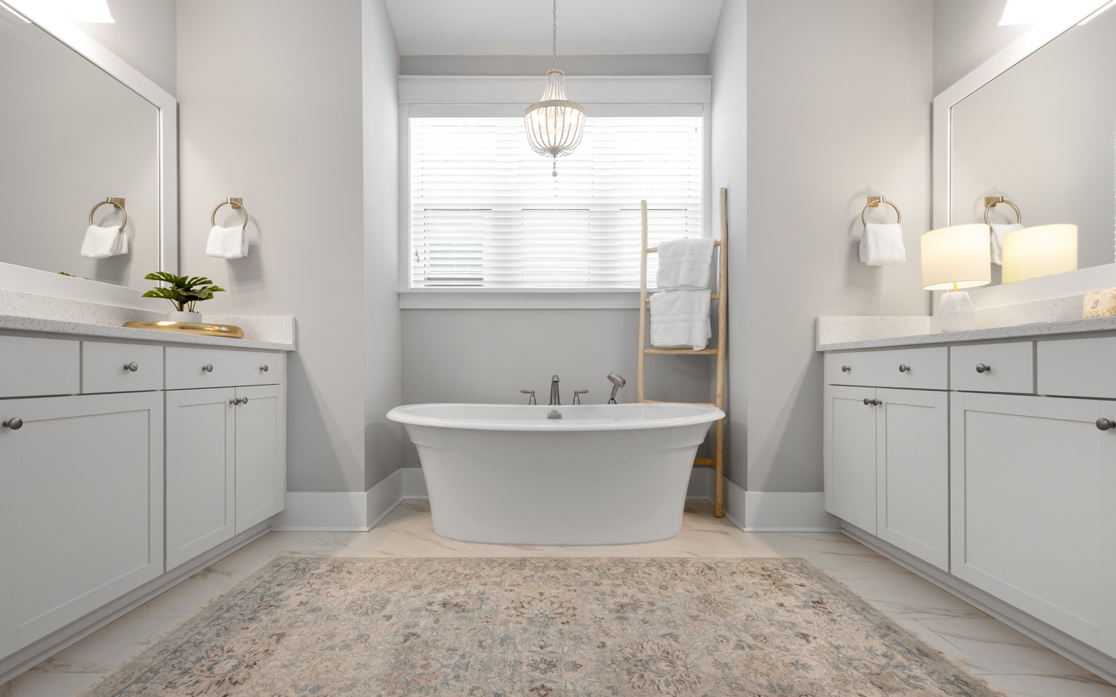 - Primary Suite: King bed, with spa-style bathroom and soaking tub