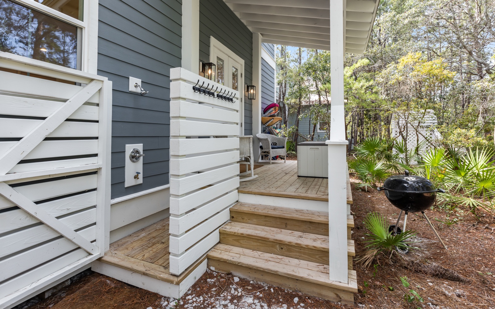 Outside, a tranquil oasis awaits. Sip your morning coffee on the front porch, or unwind after a day at the beach, as you fire up the grill for a delightful outdoor barbecue.