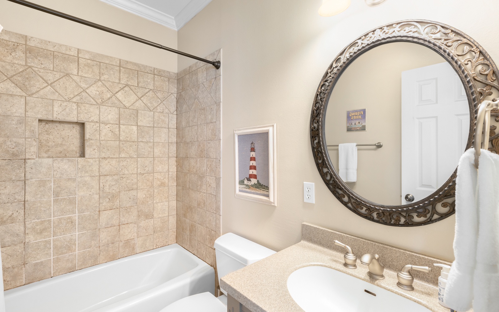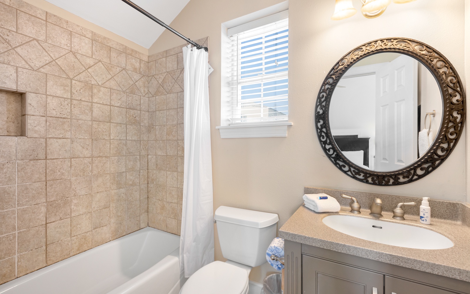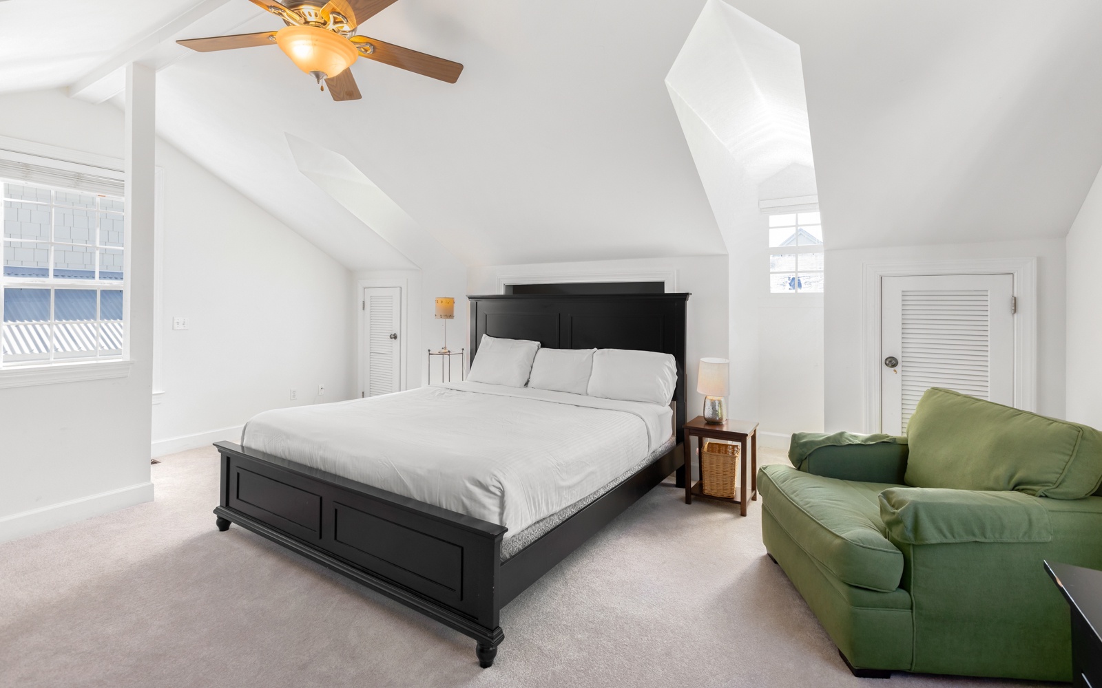 - King in 3rd-floor primary bedroom; private bath with shower/tub combo; TV (32")