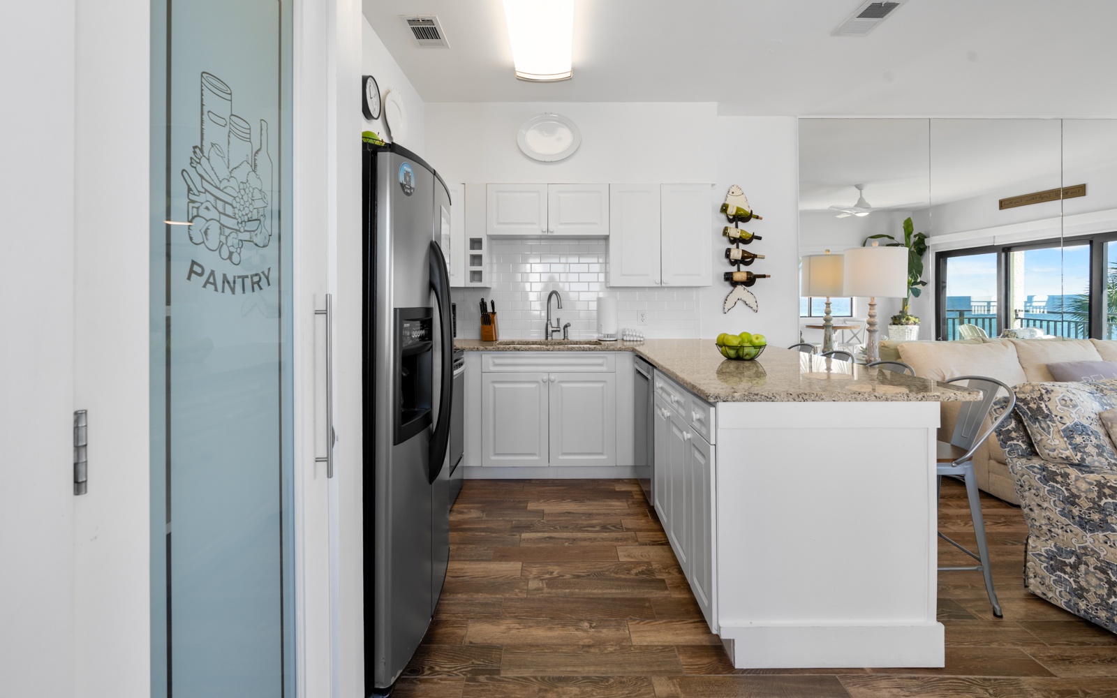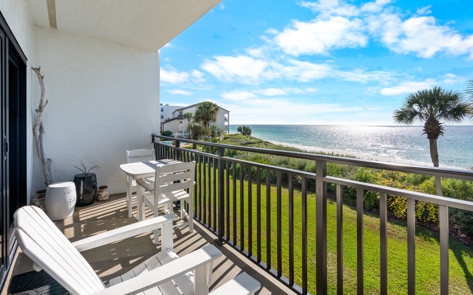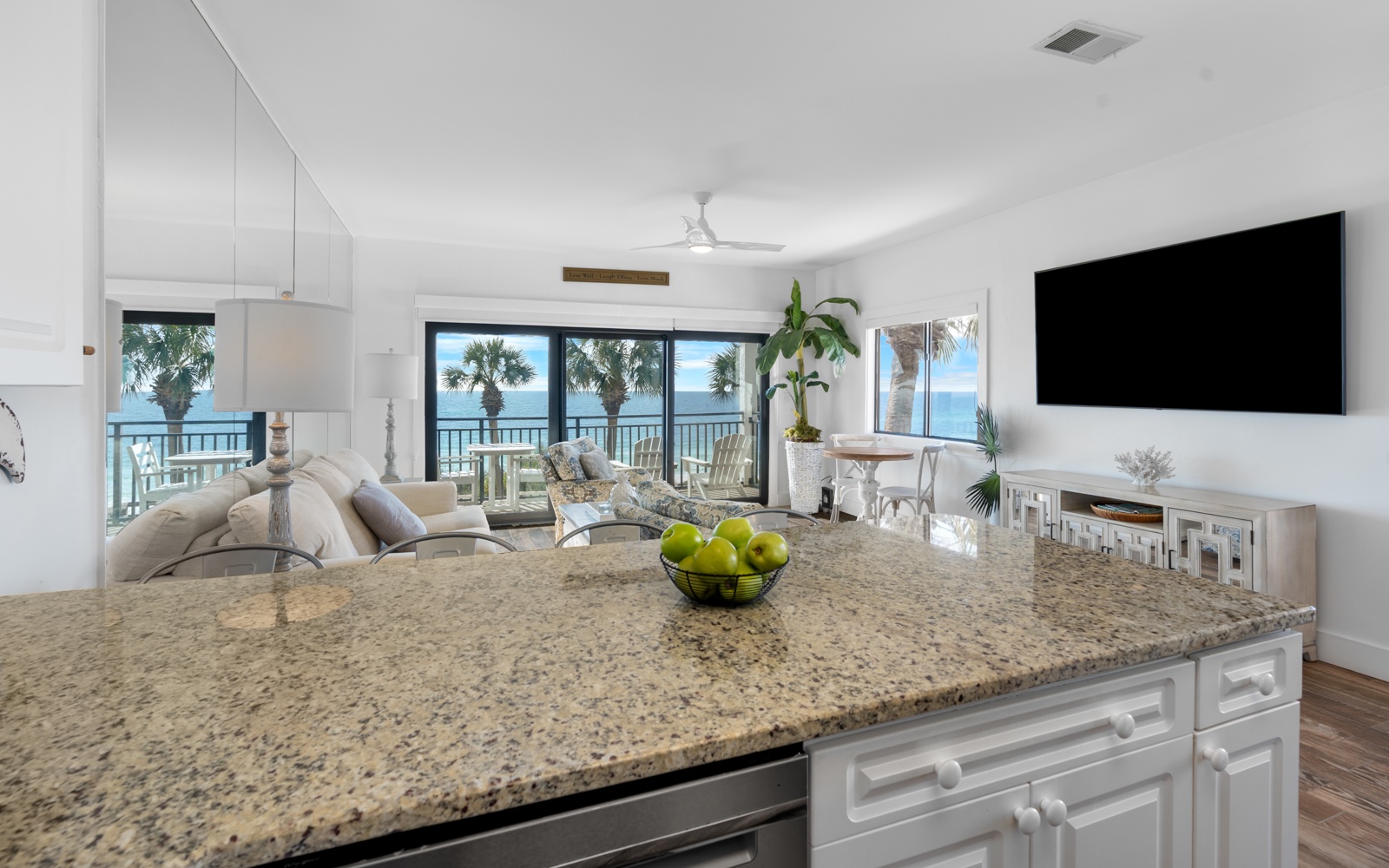 The beautiful sanctuary has all the amenities you'll need to feel right at home, including a fully stocked kitchen, comfortable furnishings, and a private balcony overlooking the beach.