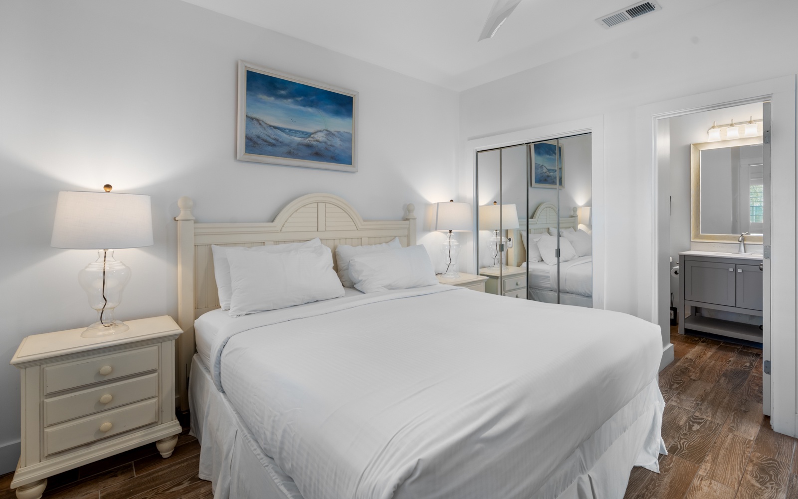 - King in primary bedroom; private bath