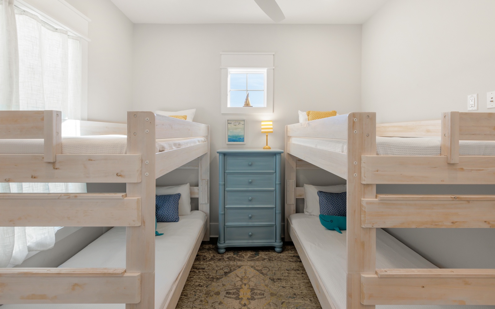 Upstairs, discover two primary bedrooms, king, and a charming bunk room with 4 twin beds.