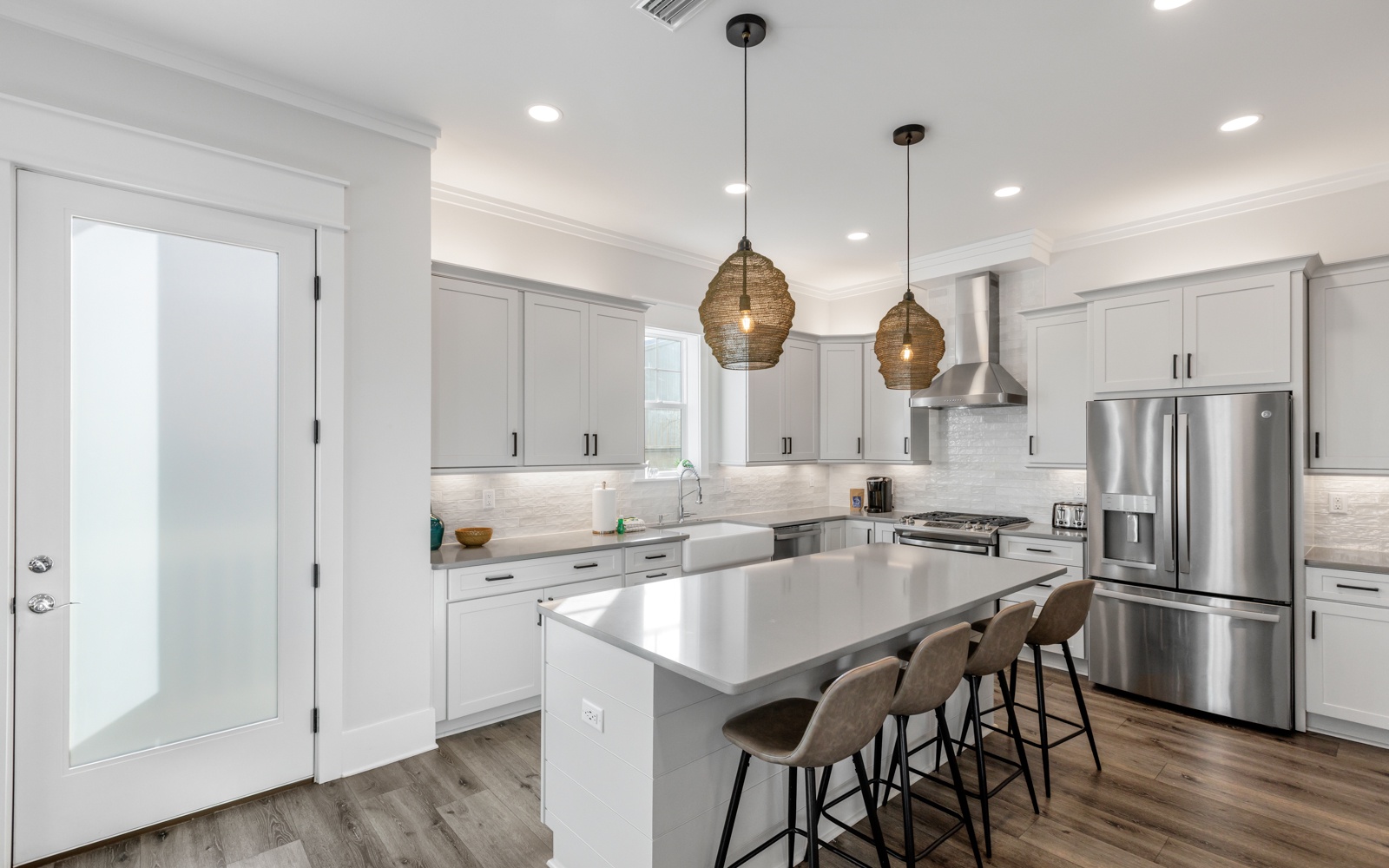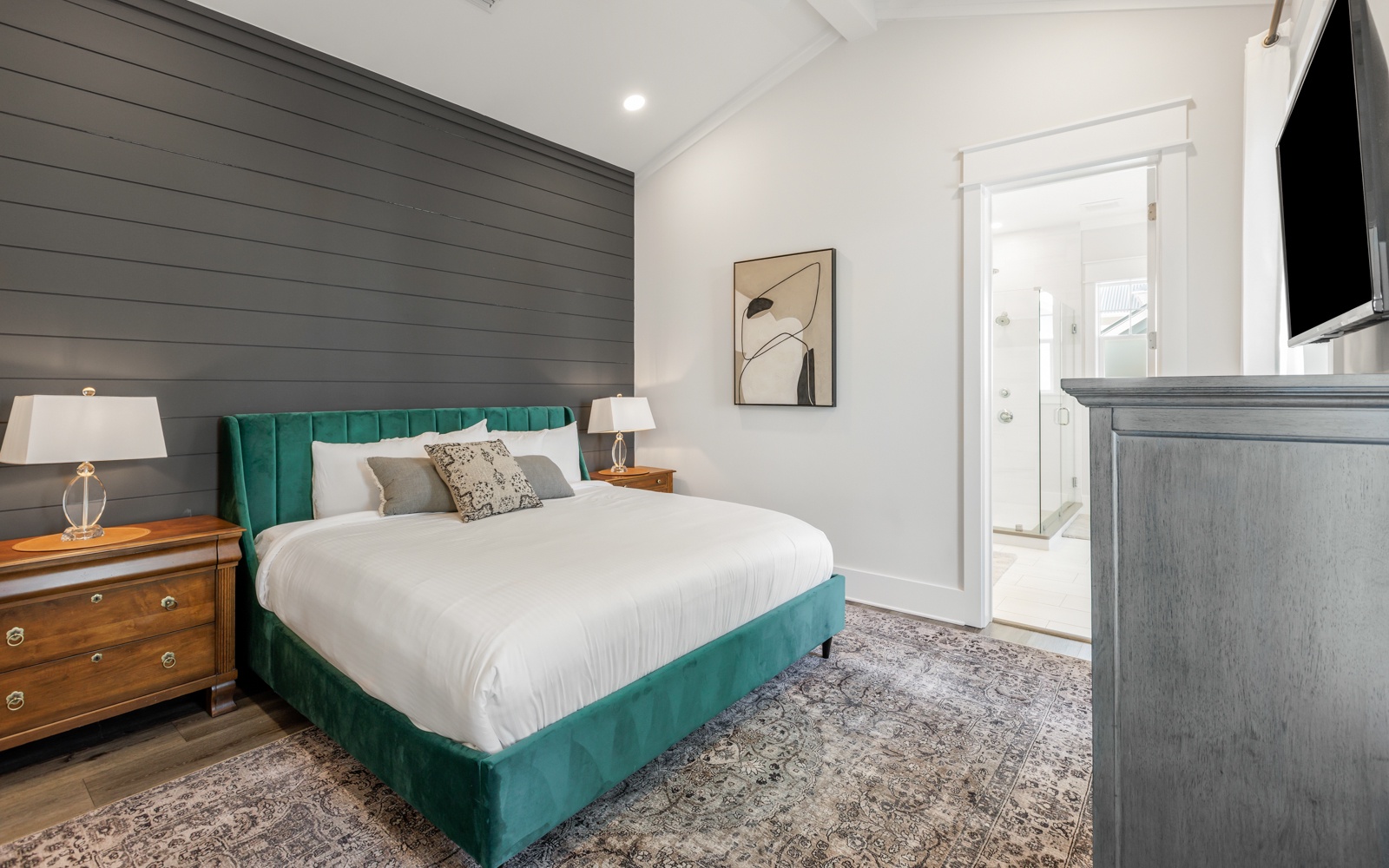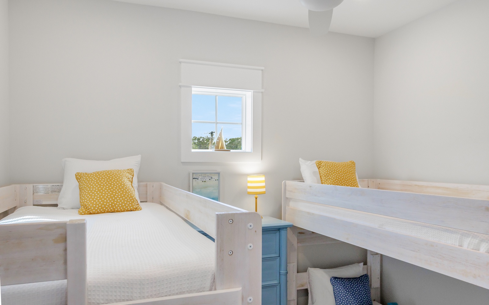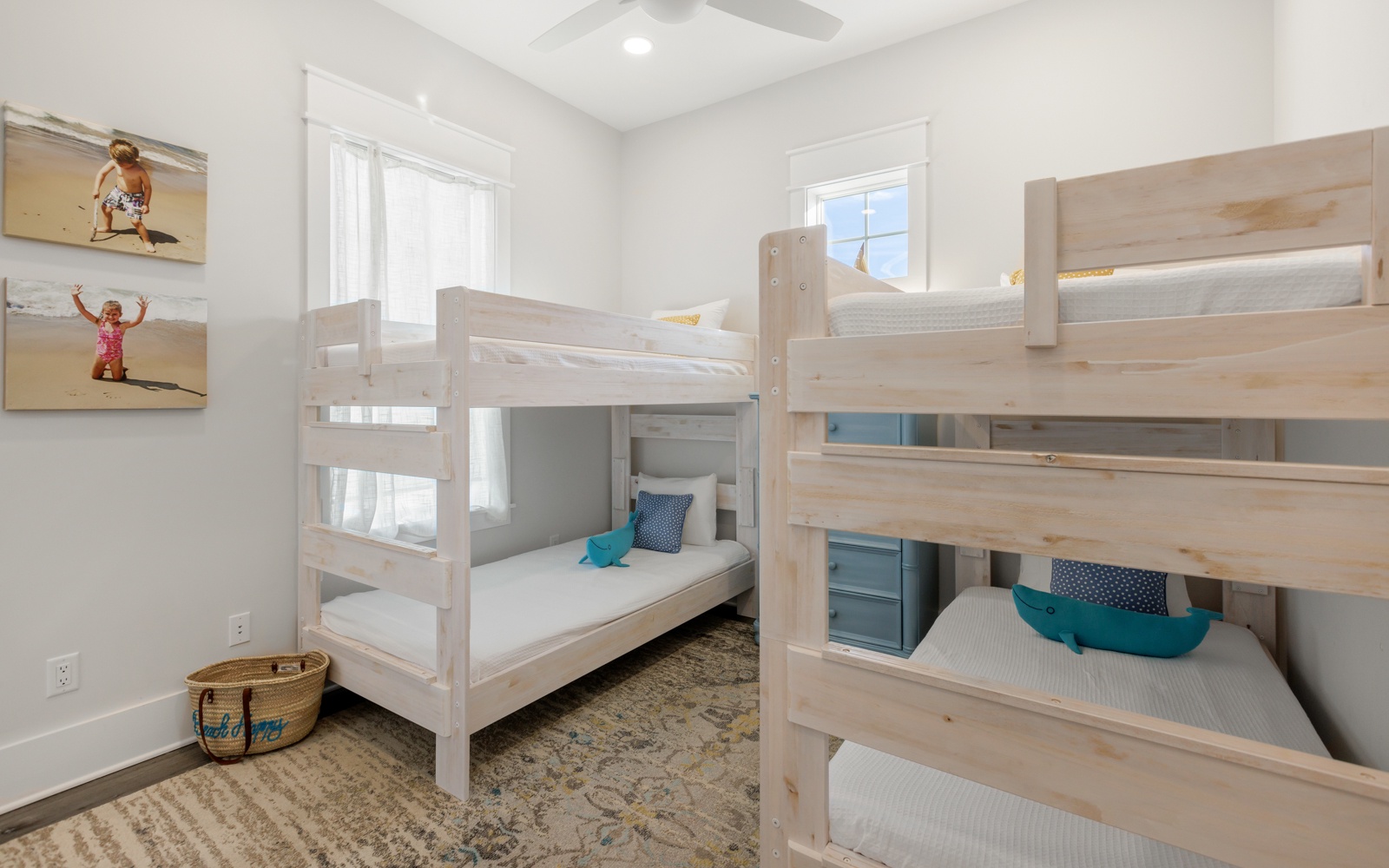 Built in 2021, and comfortably accommodating up to 10 guests, Three Little Birds has a contemporary flair, with distressed plank-style flooring throughout. A true haven for sand lovers, the home is a quick shuttle trip, or bike ride, to the beach.