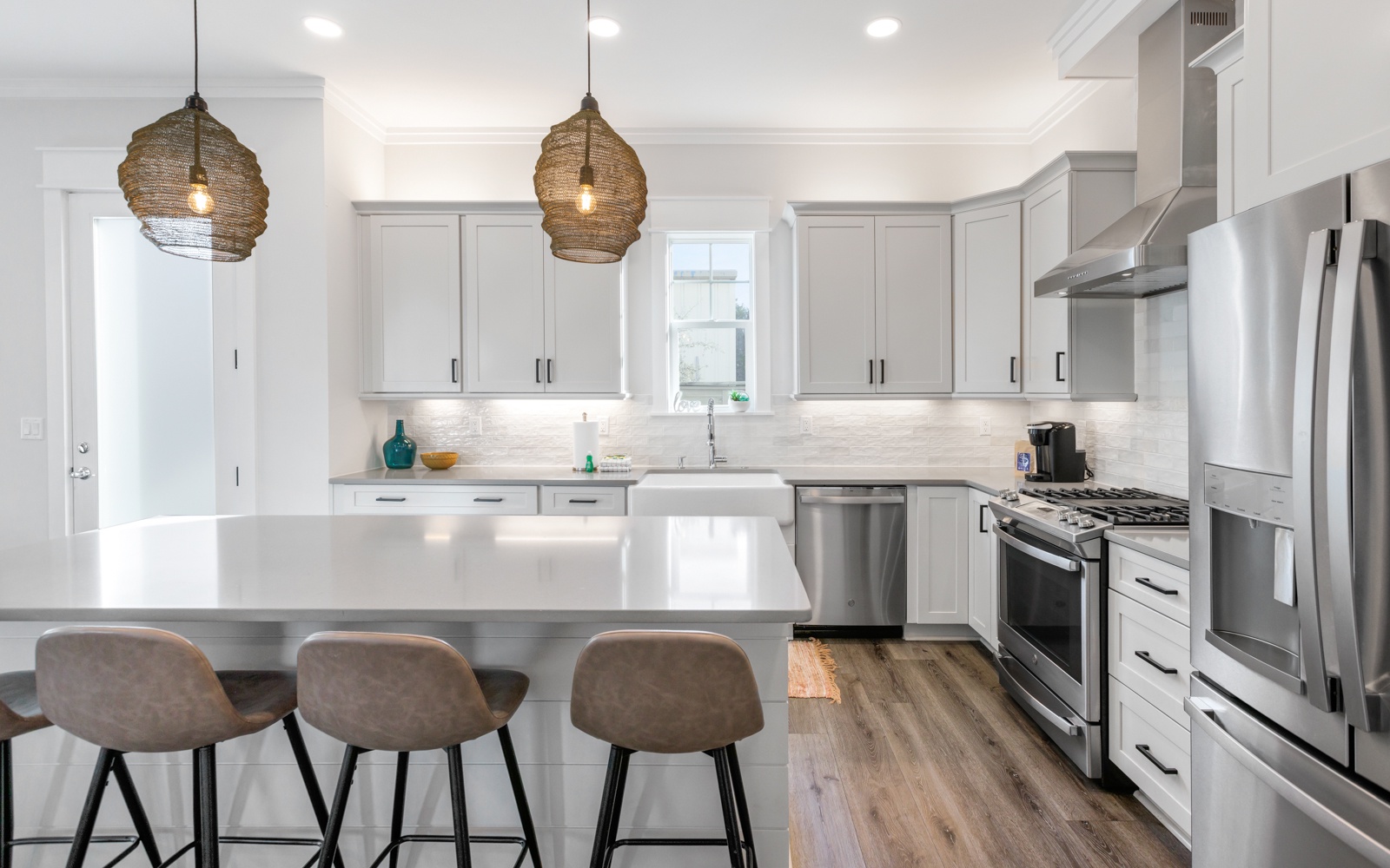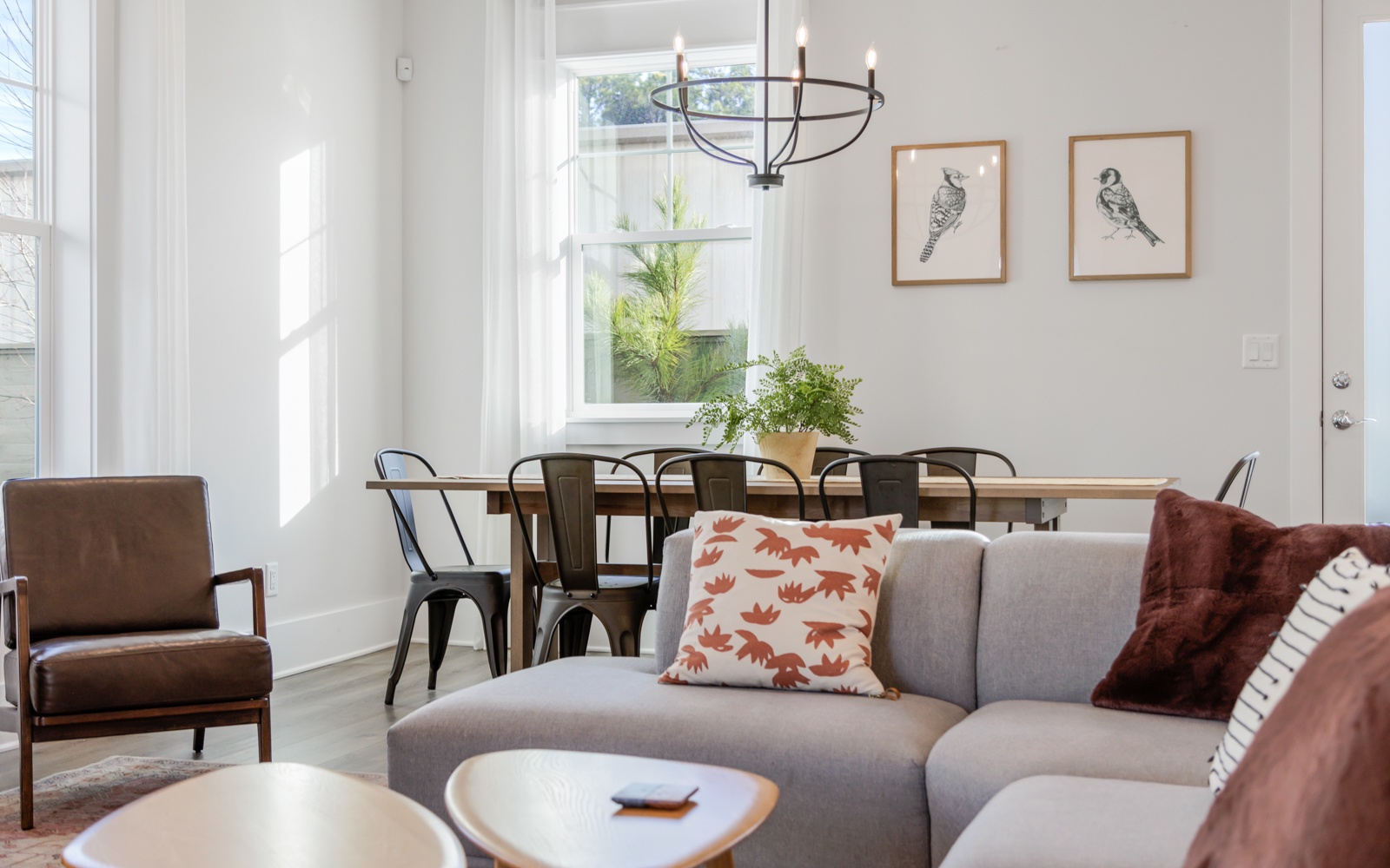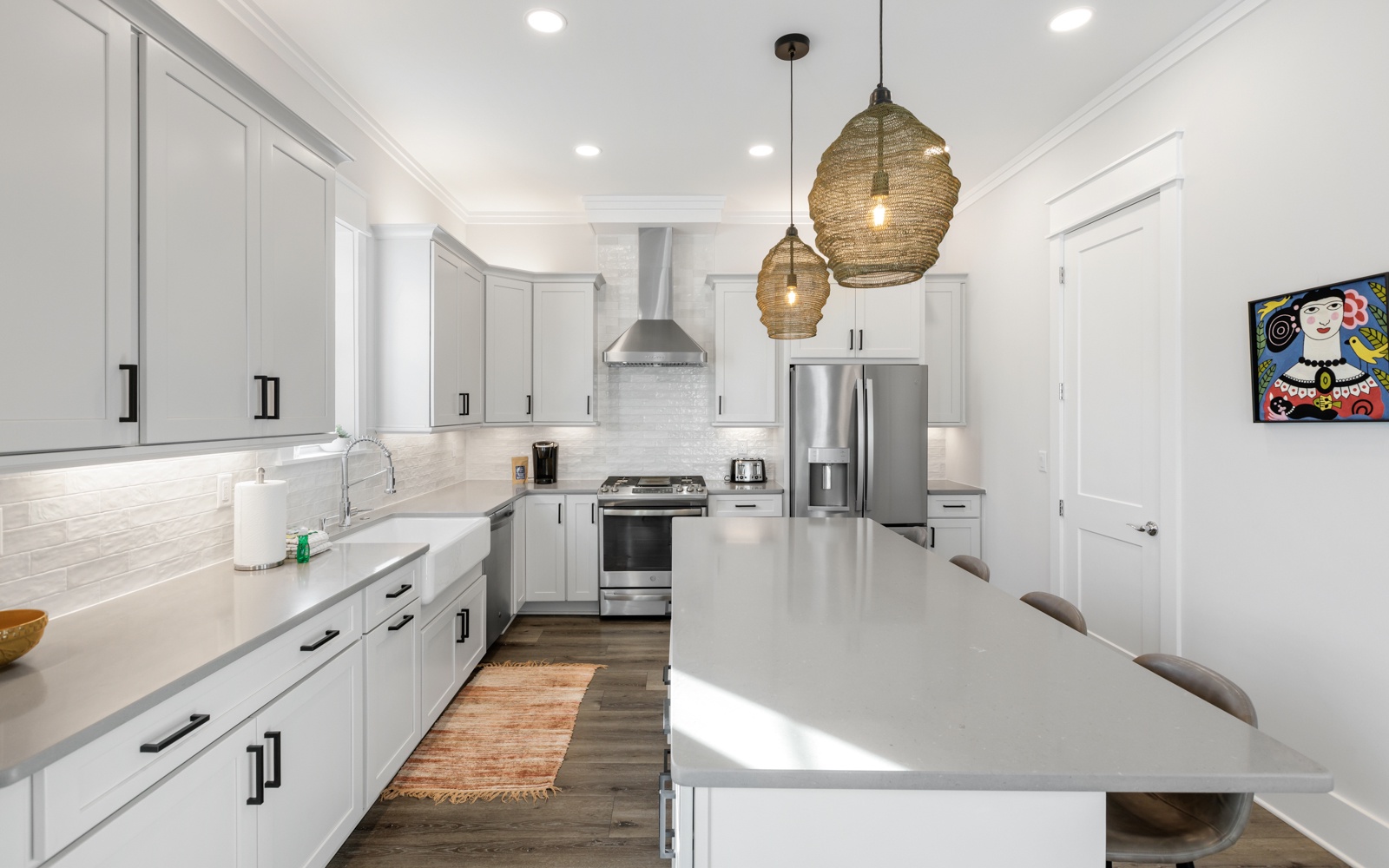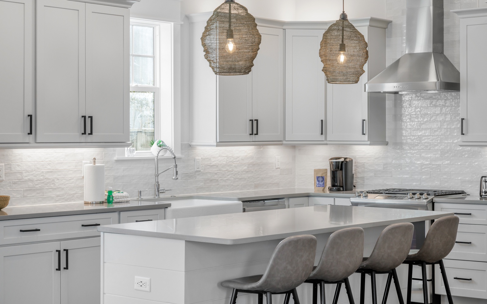Built in 2021, and comfortably accommodating up to 10 guests, Three Little Birds has a contemporary flair, with distressed plank-style flooring throughout. A true haven for sand lovers, the home is a quick shuttle trip, or bike ride, to the beach.