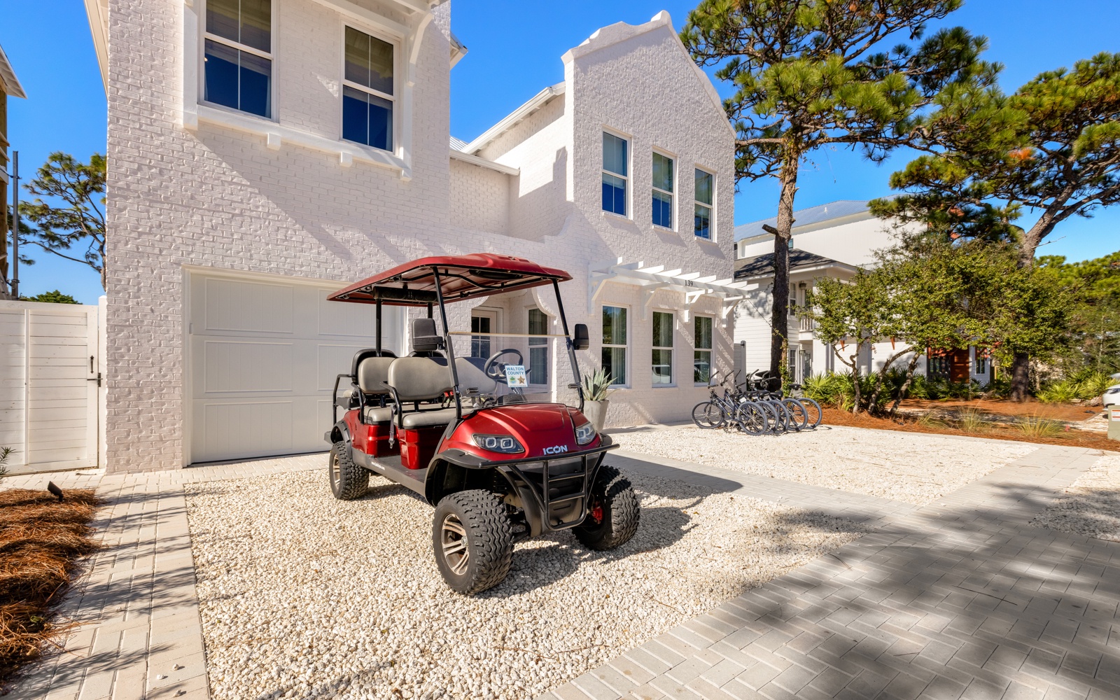 A golf cart is included for easy cruising around Seagrove’s shops, trails, and beach paths.