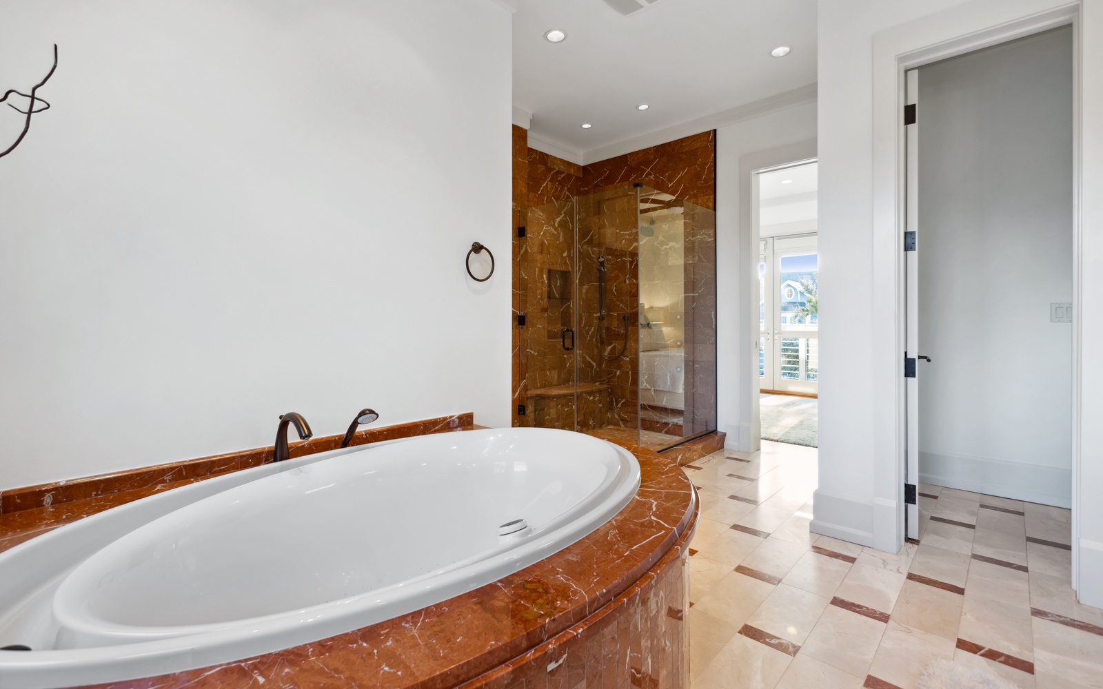 Every bedroom is a private escape, complete with an en-suite bath, but the primary suite? A true oasis of indulgence, complete with a private balcony for savoring the coastal breeze and a spa-inspired bathroom featuring a sumptuous, jetted bathtub.