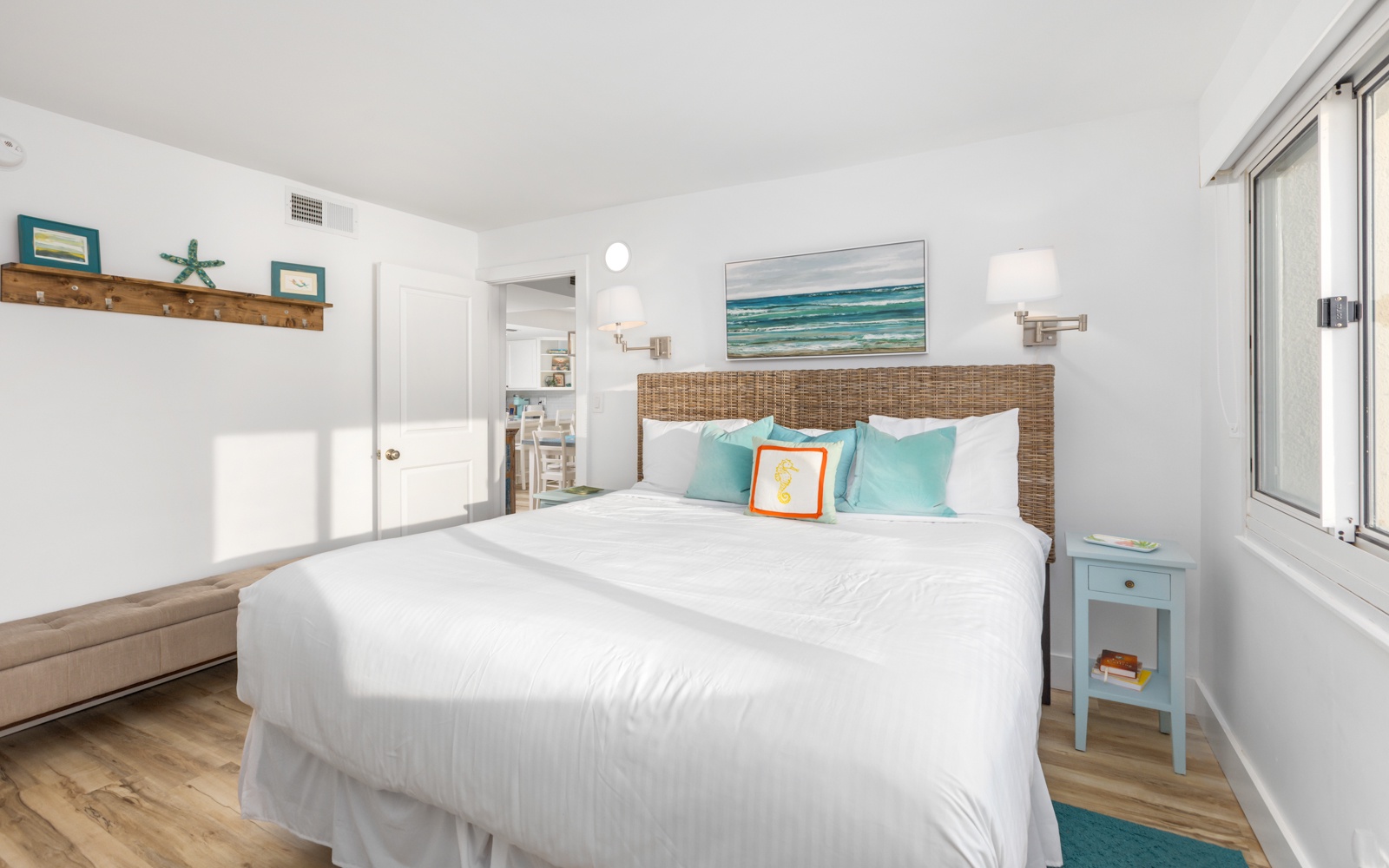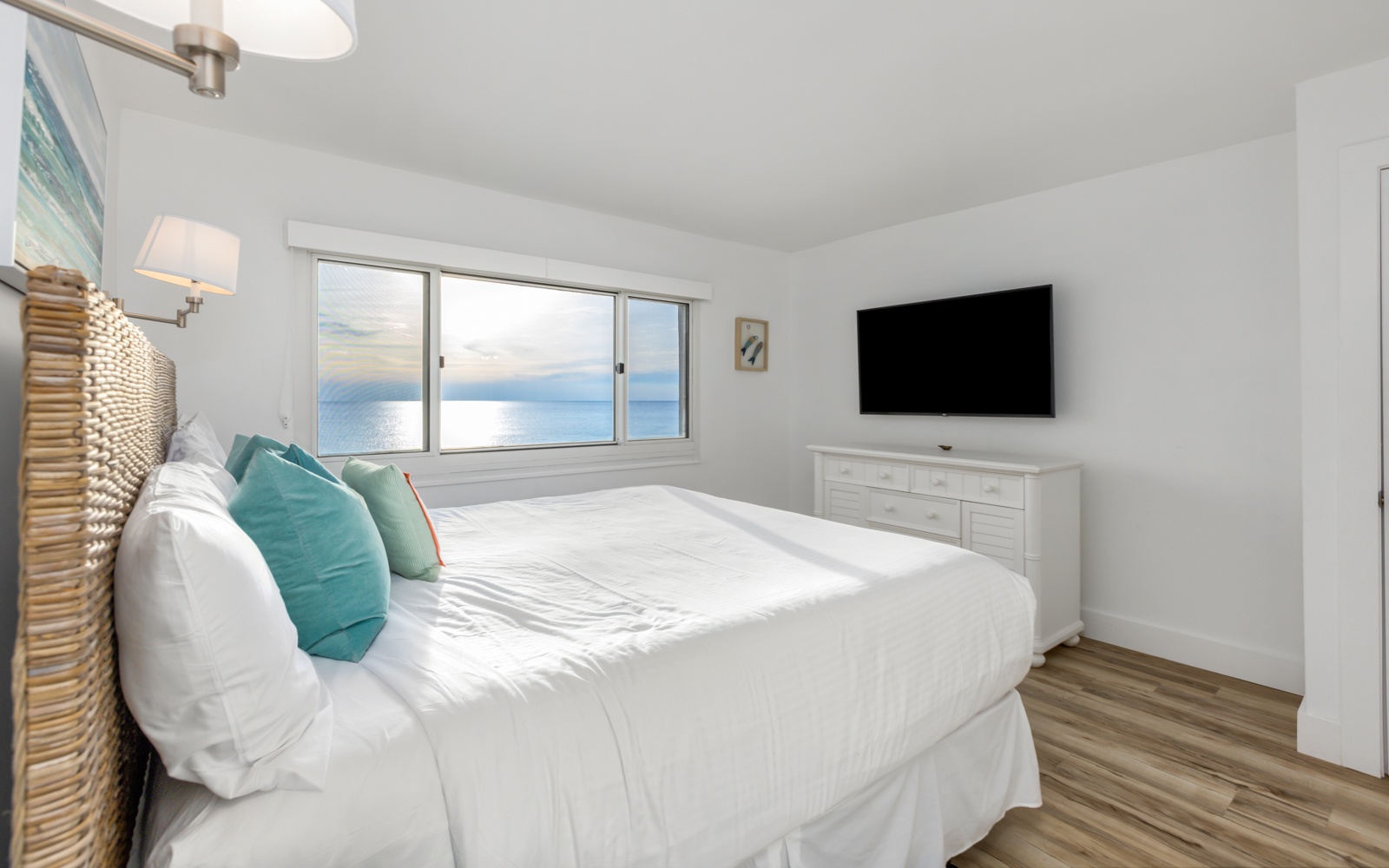 The primary bedroom, featuring a king bed, opens up to… you guessed it… more stunning views.