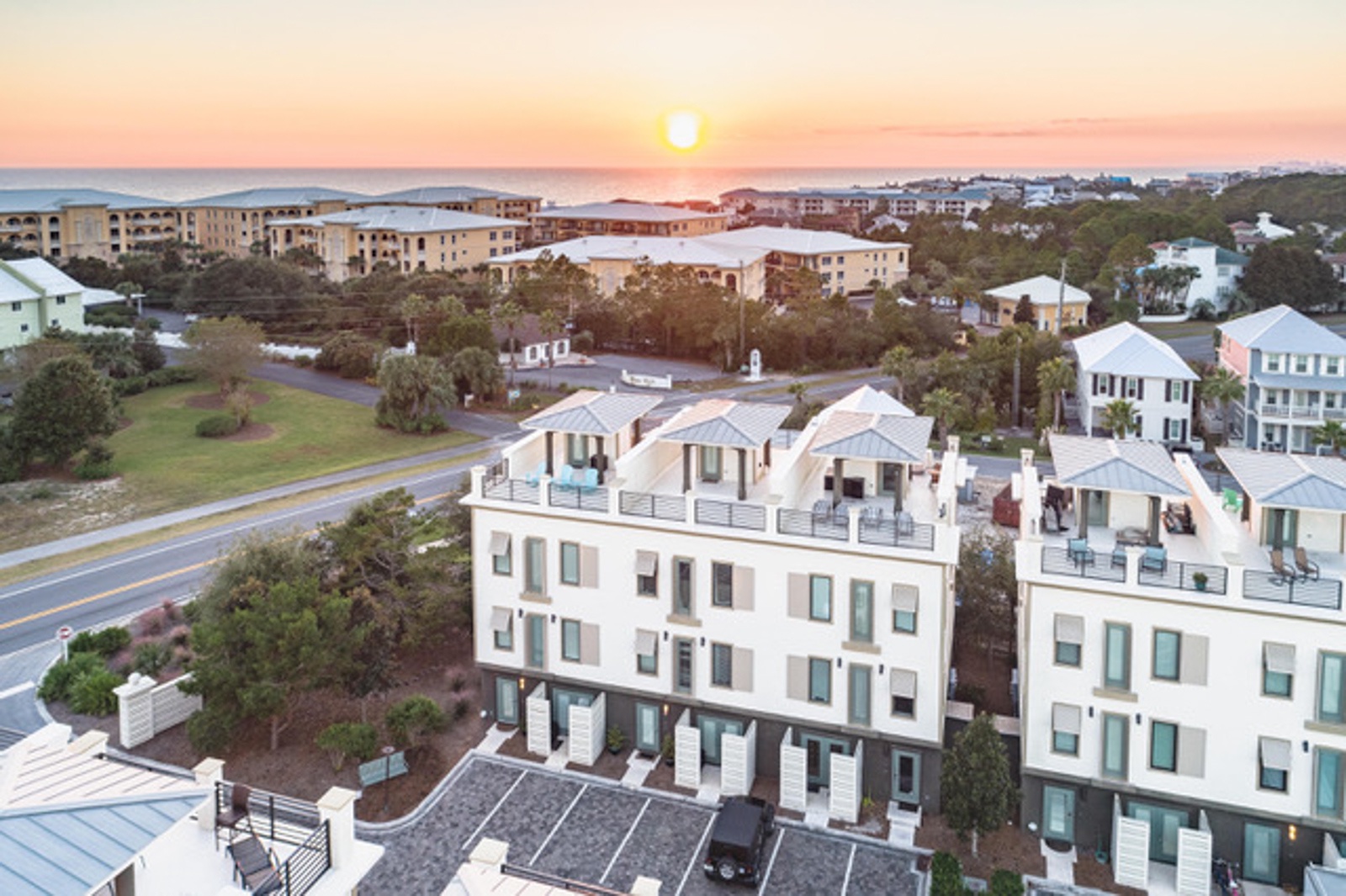 Up the spiral staircase, a private rooftop terrace offers glimpses of the Gulf, and is perfect for sunrises, sunsets, sunbathing and entertaining. The rooftop includes Adirondack seating and an inviting outdoor sectional.